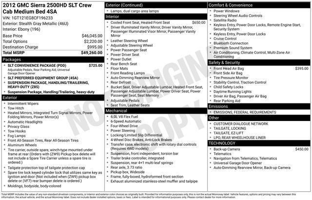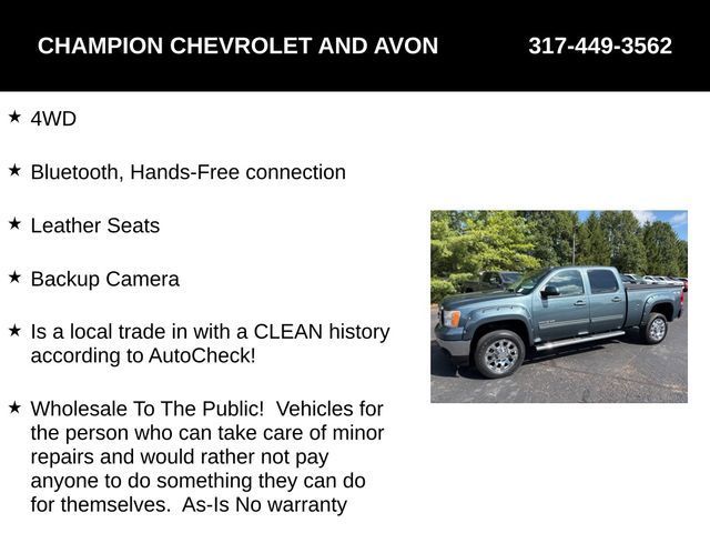 4WD, Bluetooth, Hands-Free connection, Leather Seats, Backup Camera, Is a local trade in with a CLEAN history according to AutoCheck!, Wholesale To The Public! Vehicles for the person who can take care of minor repairs and would rather not pay anyone to do something they can do for themselves. As-Is No warranty, 6-Speed Automatic HD Electronic with Overdrive, 4WD, Ebony Leather, EZ-Lift Tailgate, Heavy-Duty Handling/Trailering Suspension Package, Heavy-Duty Trailering Equipment, Integrated Trailer Brake Controller, Locking Tailgate, Power-Adjustable Pedals For Accelerator & Brake, Rear Wheelhouse Liner, SLT Convenience Package, Ultrasonic Rear Parking Assist w/Audible Warning.Odometer is 22166 miles below market average! Priced below KBB Fair Purchase Price!Tax, title, license and $249.00 document preparation fee are extra. We make every reasonable effort possible to present information and pricing that is true and accurate. Some information provided may come from third party sources. To ensure your complete satisfaction, please verify the accuracy prior to your purchase. It is the responsibility of the consumer to verify the accuracy of information listed.