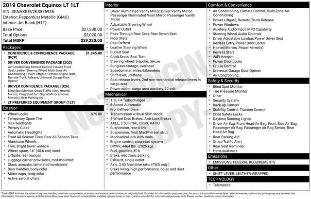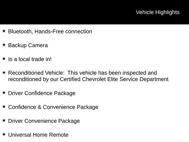 Bluetooth, Hands-Free connection, Backup Camera, Is a local trade in!, Reconditioned Vehicle: This vehicle has been inspected and reconditioned by our Certified Chevrolet Elite Service Department, Confidence & Convenience Package, Driver Confidence Package, Driver Convenience Package, Rear Power Liftgate, Universal Home Remote.Odometer is 16166 miles below market average! 26/32 City/Highway MPGTax, title, license and $249.00 document preparation fee are extra. We make every reasonable effort possible to present information and pricing that is true and accurate. Some information provided may come from third party sources. To ensure your complete satisfaction, please verify the accuracy prior to your purchase. It is the responsibility of the consumer to verify the accuracy of information listed.Awards: * JD Power Initial Quality Study * 2019 KBB.com 10 Best SUVs Under $30,000