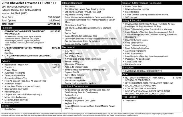 Bluetooth, Hands-Free connection, Backup Camera, Is a one owner vehicle with a CLEAN report according to AutoCheck!, **Lifetime Powertrain Limited Warranty*** This vehicle qualifies for our Lifetime Powertrain Limited warranty 100% Parts coverage 100% Labor coverage.- Unlimited Mileage- Unlimited Time - Just a $100 deductible. Simple and easy Just follow recommended maintenance at selling dealer or at a pre-a, 1st & 2nd Row All-Weather Floor Mats, 3rd Row All-Weather Floor Mats, 4.2" Multi-Color Enhanced Driver Instrument Display, All-Weather Cargo Mat (LPO), Convenience & Driver Confidence Package, Heated Driver & Front Passenger Seats, Heavy-Duty Cooling System, Interior Protection Package (LPO), Radio: Chevrolet Infotainment 3 Plus System, Rear Power Liftgate, Remote Start, Trailering Assist Guidelines, Trailering Equipment, Universal Home Remote.18/27 City/Highway MPGTax, title, license and $249.00 document preparation fee are extra. We make every reasonable effort possible to present information and pricing that is true and accurate. Some information provided may come from third party sources. To ensure your complete satisfaction, please verify the accuracy prior to your purchase. It is the responsibility of the consumer to verify the accuracy of information listed.
