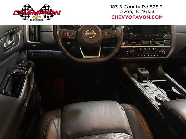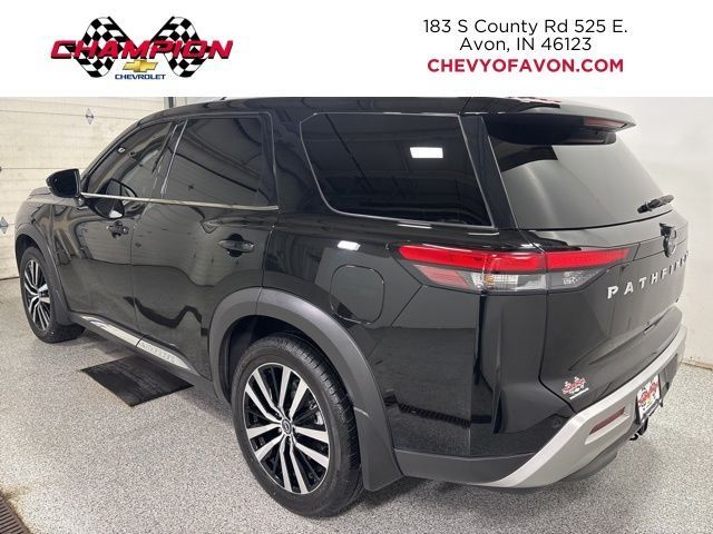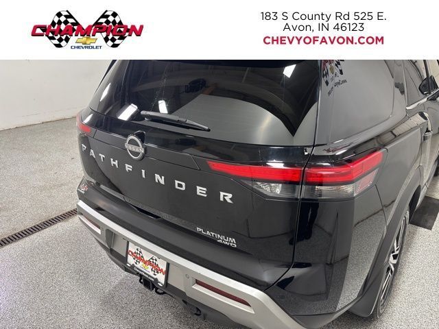 Discover the ultimate family adventure with the 2023 Nissan Pathfinder Platinum. This exceptional SUV combines unparalleled capability, cutting-edge technology, and refined luxury, making it the perfect companion for your next journey.Boasting a powerful V6 engine and 4-wheel drive, the Pathfinder Platinum delivers exceptional performance and confidence on any terrain. Enjoy the convenience of the 9-speed automatic transmission, which seamlessly adapts to your driving needs. With an impressive fuel economy of 20 MPG in the city and 25 MPG on the highway, this SUV strikes the perfect balance between power and efficiency.• Lifetime Powertrain Limited Warranty• One-owner vehicle with a clean AutoCheck report• Bluetooth® hands-free connectivity• Leather seating surfaces• Backup camera• Cargo Package with dividers, protector, and net• Platinum TFT Meter Delete PackageThe Pathfinder Platinum's premium features elevate your driving experience. Indulge in the comfort of heated and ventilated front seats, a power liftgate, and a stunning panoramic moonroof that floods the cabin with natural light. Stay connected with the advanced NissanConnect® Navigation system, featuring a large 12.3-inch touchscreen display.Safety is paramount in the Pathfinder Platinum, with a suite of advanced driver-assistance technologies, including Automatic Emergency Braking, Blind Spot Warning, and Rear Cross-Traffic Alert. You and your loved ones will feel secure and confident behind the wheel.Discover the perfect blend of capability, technology, and luxury in the 2023 Nissan Pathfinder Platinum. This exceptional SUV is ready to take you and your family on unforgettable adventures. Schedule a test drive today and experience the difference for yourself.Tax, title, license and $249.00 document preparation fee are extra. We make every reasonable effort possible to present information and pricing that is true and accurate. Some information provided may come from third party sources. To ensure your complete satisfaction, please verify the accuracy prior to your purchase. It is the responsibility of the consumer to verify the accuracy of information listed.