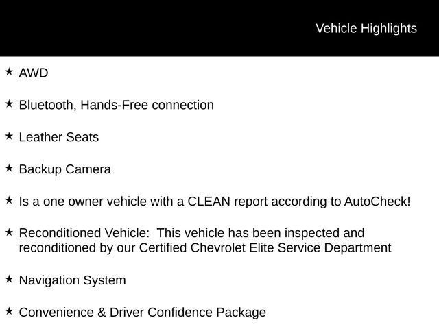 Experience the Exhilaration of the 2024 Chevrolet Blazer EV RSPrepare to be captivated by the remarkable 2024 Chevrolet Blazer EV RS, a true masterpiece of modern automotive engineering. This stunning electric SUV boasts a commanding presence on the road, blending sleek style with uncompromising performance and cutting-edge technology.• AWD• Bluetooth, Hands-Free connection• Leather Seats• Backup Camera• One-owner vehicle with a CLEAN AutoCheck report• Reconditioned by our Certified Chevrolet Elite Service DepartmentThe Blazer EV RS is equipped with the coveted RS Convenience and Driver Confidence Package, elevating your driving experience to new heights. Indulge in the convenience of a Power Liftgate, the safety of Adaptive Cruise Control, and the clarity of the Head-Up Display. Enjoy the seamless integration of the Navigation System and the enhanced protection of features like Intersection Automatic Emergency Braking and Reverse Automatic Braking.Step inside the Blazer EV RS and be captivated by the luxurious Perforated Suede/Evotex Seat Trim, the comfort of Heated and Ventilated Front Seats, and the convenience of the Memory Seat. The 17.7" Diagonal Advanced Color LCD Display and the 6-Speaker Audio System with SiriusXM 360L ensure your entertainment needs are met with unparalleled clarity and precision.Beneath the striking exterior, the Blazer EV RS delivers exceptional performance. With an EPA-estimated 103 MPGe in the city and 88 MPGe on the highway, this electric SUV offers exceptional efficiency, allowing you to explore the open road with confidence and ease. The All-Wheel Drive system provides uncompromising traction and control, ensuring a thrilling and responsive driving experience.Discover the perfect balance of style, technology, and performance with the 2024 Chevrolet Blazer EV RS. Experience the future of electric SUVs and schedule a test drive today. We're confident you'll be impressed by the level of craftsmanship and attention to detail that has gone into creating this remarkable vehicle.Tax, title, license and $249.00 document preparation fee are extra. We make every reasonable effort possible to present information and pricing that is true and accurate. Some information provided may come from third party sources. To ensure your complete satisfaction, please verify the accuracy prior to your purchase. It is the responsibility of the consumer to verify the accuracy of information listed.