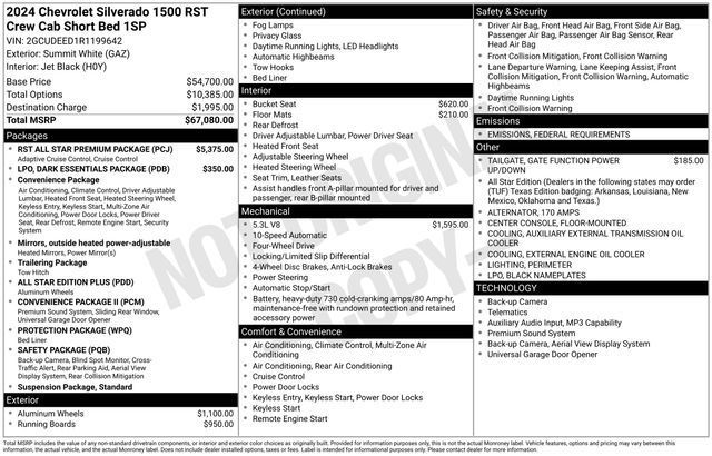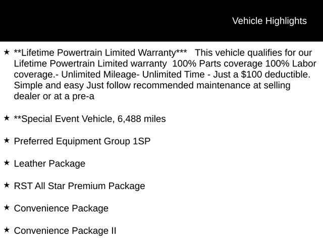 **Lifetime Powertrain Limited Warranty*** This vehicle qualifies for our Lifetime Powertrain Limited warranty 100% Parts coverage 100% Labor coverage.- Unlimited Mileage- Unlimited Time - Just a $100 deductible. Simple and easy Just follow recommended maintenance at selling dealer or at a pre-a, **Special Event Vehicle, 6,488 miles, 10-Speed Automatic, 4WD, Black Leather, 10-Way Power Driver Seat w/Lumbar, 12.3" Multicolor Reconfigurable Digital Display, 120-Volt Bed Mounted Power Outlet, 120-Volt Interior Power Outlet, 6-Speaker Audio System, Adaptive Cruise Control, All Star Edition Plus, All-Star Edition, Auto-Locking Rear Differential, Bluetooth® For Phone, Chevrolet Connected Access Capable, Color-Keyed Carpeting Floor Covering, Convenience Package, Convenience Package II, Deep-Tinted Glass, Dual Rear USB Ports (Charge Only), Dual-Zone Automatic Climate Control, Electric Rear-Window Defogger, Electrical Steering Column Lock, Electronic Cruise Control, EZ Lift Power Lock & Release Tailgate, Front Frame-Mounted Black Recovery Hooks, Front LED Fog Lamps, Front Rubberized Vinyl Floor Mats, HD Rear Vision Camera, HD Surround Vision, Heated Driver & Front Outboard Passenger Seats, Heated Power-Adjustable Outside Mirrors, Heated Steering Wheel, High Gloss Black Mirror Caps, Hitch Guidance, Hitch Guidance w/Hitch View, In-Vehicle Trailering System App, Inside Rear-View Mirror w/Tilt, Integrated Trailer Brake Controller, Keyless Open & Start, Leather Package, Leather-Appointed Front Seat Trim, LED Cargo Area Lighting, OnStar & Chevrolet Connected Services Capable, Perimeter Lighting, Power Front Windows w/Driver Express Up/Down, Power Front Windows w/Passenger Express Down, Power Rear Windows w/Express Down, Power Sliding Rear Window w/Rear Defogger, Power Tailgate, Preferred Equipment Group 1SP, Premium Bose 7-Speaker Sound System, Rear 60/40 Folding Bench Seat (Folds Up), Rear Cross Traffic Braking, Rear Pedestrian Alert, Rear Rubberized-Vinyl Floor Mats, Remote Vehicle Starter System, RST All Star Premium Package, Safety Package, SiriusXM w/360L, Standard Tailgate, Steering Wheel Audio Controls, Theft Deterrent System (Unauthorized Entry), Trailer Camera Provisions, Trailer Side Blind Zone Alert, Trailering Package, Ultrasonic Front & Rear Park Assist, Universal Home Remote, Up-Level Rear Seat w/Storage Package, Wheels: 20" x 9" Painted Aluminum, Wi-Fi Hot Spot Capable, Wrapped Steering Wheel.Tax, title, license and $249.00 document preparation fee are extra. Pricing will not include additional installed accessories. Not available with special finance or lease offers. We make every reasonable effort possible to present information and pricing that is true and accurate. Some information provided may come from third party sources. To ensure your complete satisfaction, please verify the accuracy prior to your purchase. It is the responsibility of the consumer to verify the accuracy of information listed.