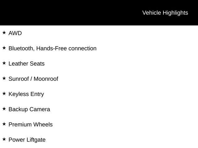 AWD, Bluetooth, Hands-Free connection, Leather Seats, Sunroof / Moonroof, Keyless Entry, Backup Camera, Premium Wheels, Power Liftgate, Heated Rear Seats, Heated Steering Wheel.Tax, title, license and $249.00 document preparation fee are extra. Pricing will not include additional installed accessories. Not available with special finance or lease offers. We make every reasonable effort possible to present information and pricing that is true and accurate. Some information provided may come from third party sources. To ensure your complete satisfaction, please verify the accuracy prior to your purchase. It is the responsibility of the consumer to verify the accuracy of information listed.92/77 City/Highway MPG . See dealer for details. Dealer is not responsible for typographical or other errors in pricing. Price may not include installed accessories. Price includes: *$1000 - GM Consumer Cash Program. Applies To All Consumers Exp. 03/02/2026