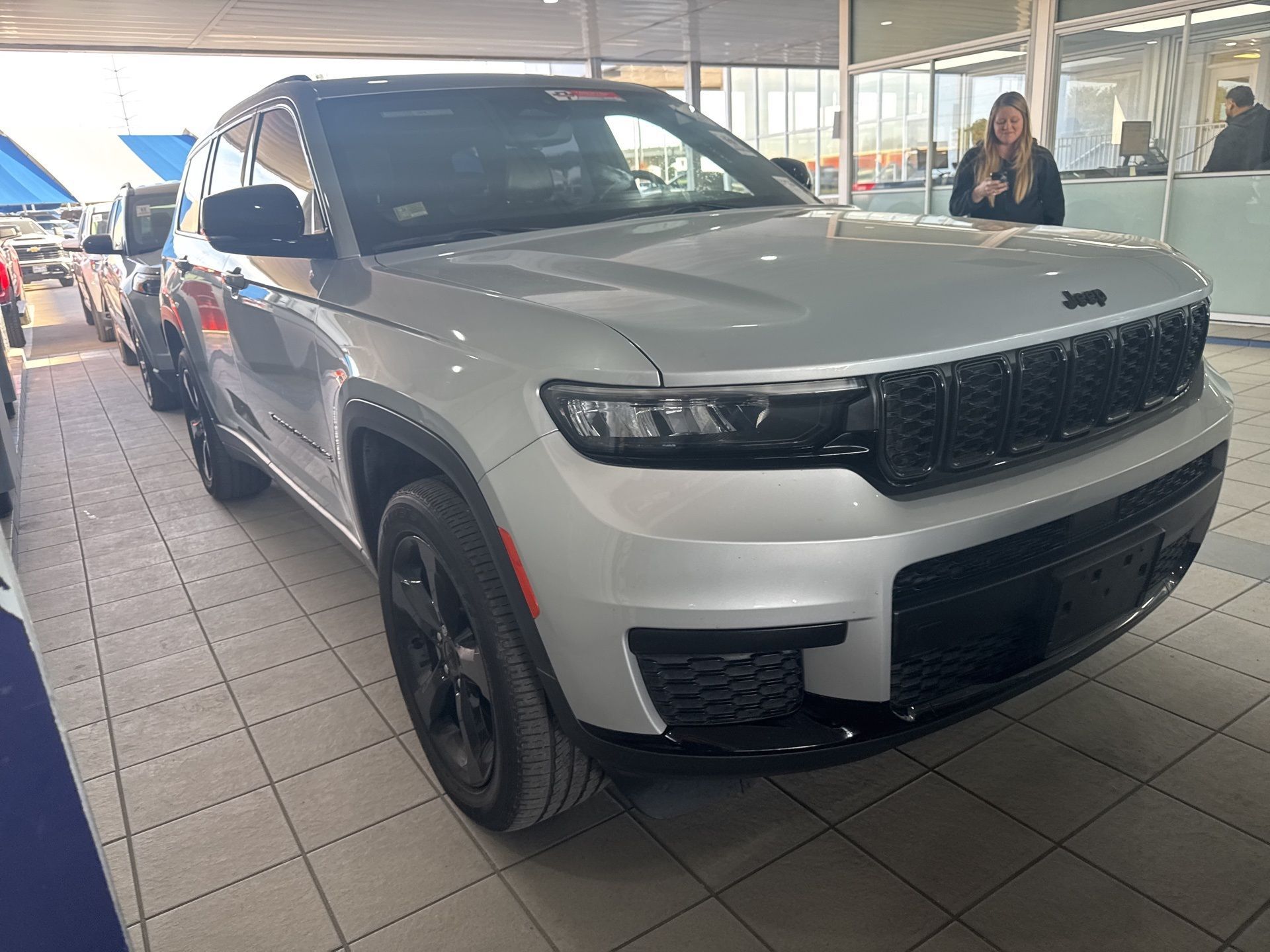 2021 Jeep Grand Cherokee L Altitude Silver Zynith 4WD 3.6L V6 24V VVTRecent Arrival! Clean CARFAX.• Quick Order Package: heated front seats, heated steering wheel, power liftgate, remote start, remote trunk release, rain-sensing wipers, MP3 compatibility • Adaptive cruise control • Blind spot monitoring • Rear parking sensors and backup camera • Silver Zenith exterior paint • Heated mirrors with integrated turn signals • Leather steering wheel • 3rd row seat • Multi-zone climate control • Bluetooth connectivity and WiFi hotspot • Keyless entry and push-button start • 8-speed automatic transmission with 3.6L V6 engine • Full-time four-wheel drive • LED headlights and brake lights • Driver and passenger air bags, knee air bag, side air bags • Lane departure warning and lane keeping assist • Power driver’s seat • Bucket seats with leather trim • 2 LCD monitors in the front • Aluminum wheels with performance tires • Privacy glass and rear spoiler • Floor mats, air filtration, carpeted floor trim