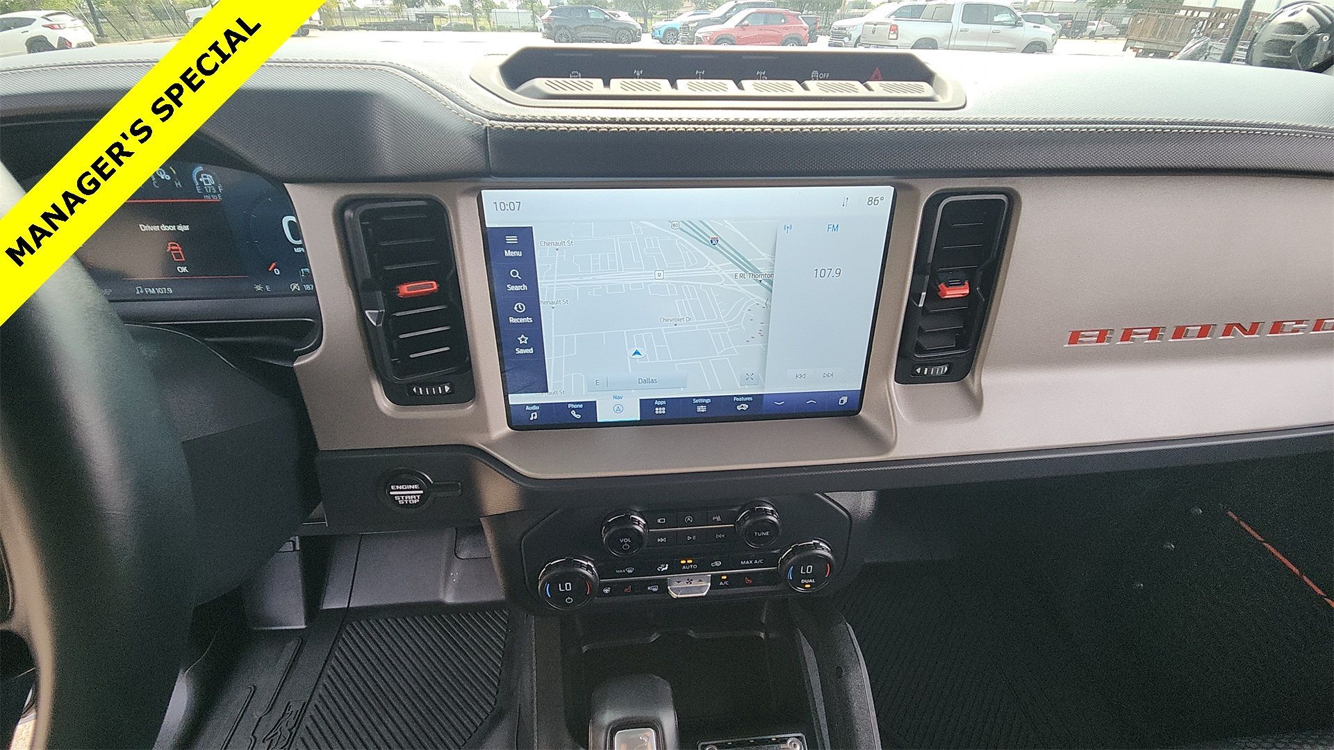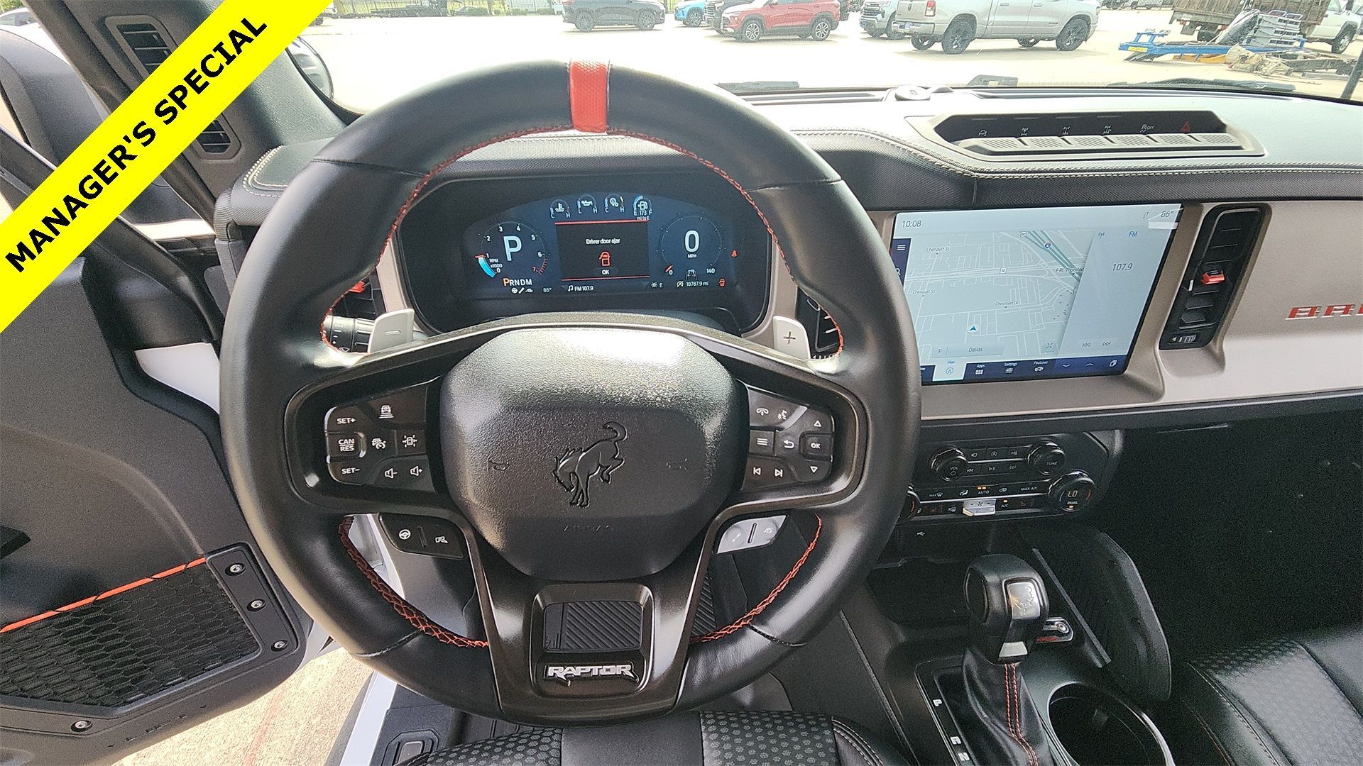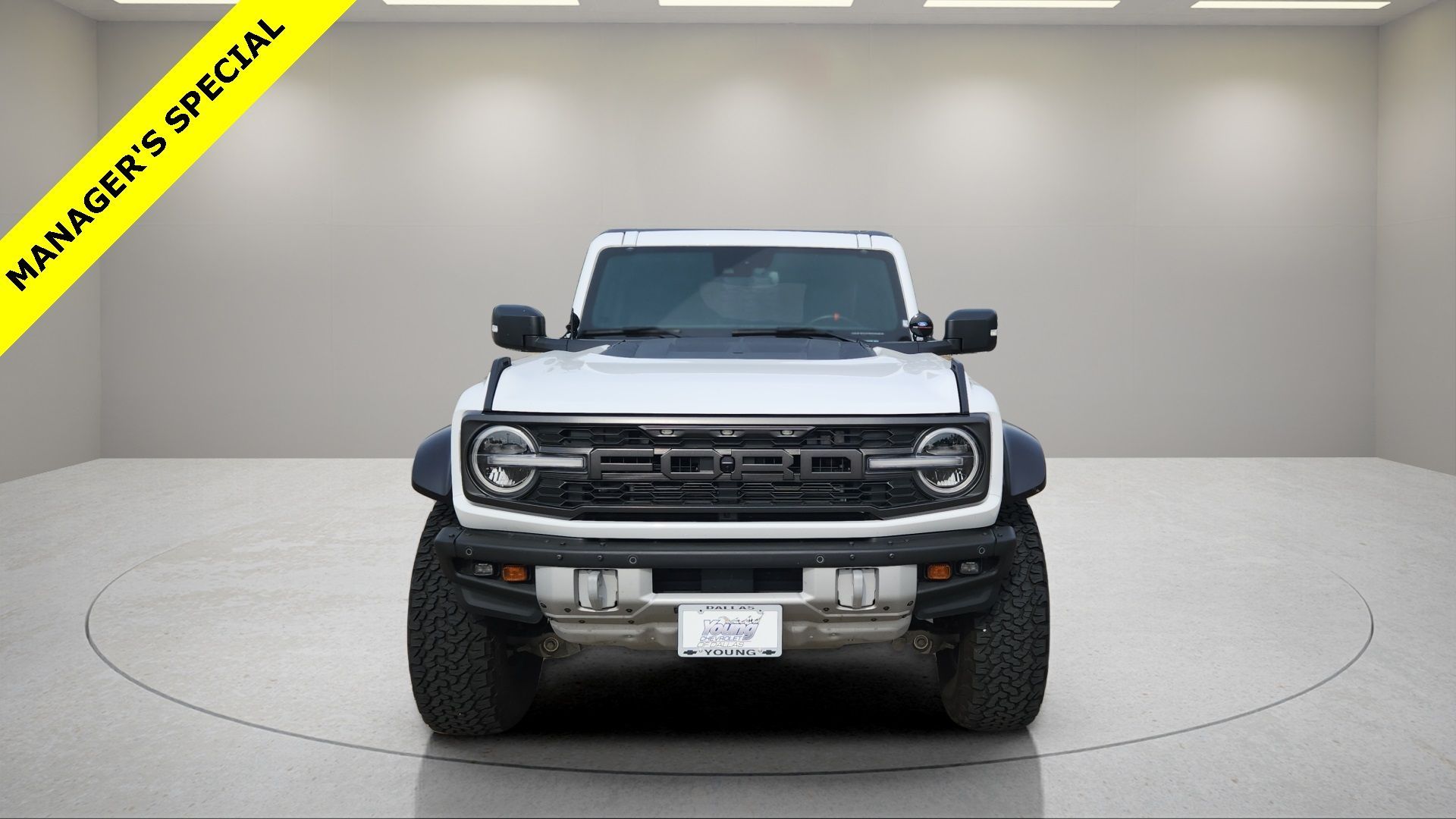 ** Alloy Wheels / Premium Wheels, ** Apple CarPlay / Android Auto, ** Backup Camera / Parking Sensors, ** Blind Spot Monitoring, ** Bluetooth, Hands-Free, ** Brake Assist, ** Cruise Control, ** Heated Seats, ** Heated Steering Wheel, ** Keyless Entry, ** Keyless Start, ** Leather Seats, ** Navigation System, ** Premium Sound System / Premium Audio, ** Satellite Radio Capable, ** Security System, ** Stability Control, ** Steering Wheel Controls, ** USB Port, Navigation system: Connected Navigation. This vehicle comes equipped with Navigation system: Connected Navigation Navigation system: Connected Navigation, 4-Wheel Disc Brakes, 4.7 Axle Ratio, 7 Speakers, ABS brakes, Air Conditioning, Alloy wheels, AM/FM radio: SiriusXM with 360L, AM/FM Stereo, Auto High-beam Headlights, Auto-dimming Rear-View mirror, Automatic temperature control, Brake assist, Compass, Connected Navigation, Convertible HardTop, Convertible roof lining, Delay-off headlights, Driver door bin, Driver vanity mirror, Dual front impact airbags, Dual front side impact airbags, Electronic Stability Control, Emergency communication system: 911 Assist, Exterior Parking Camera Rear, Front anti-roll bar, Front Bucket Seats, Front Center Armrest, Front dual zone A/C, Front fog lights, Front reading lights, Front wheel independent suspension, Fully automatic headlights, Glass rear window, Heated door mirrors, Heated front seats, Illuminated entry, Integrated roll-over protection, Leather Shift Knob, Low tire pressure warning, Marine Grade Vinyl Bucket Seats, Occupant sensing airbag, Outside temperature display, Overhead airbag, Overhead console, Panic alarm, Passenger door bin, Passenger vanity mirror, Power door mirrors, Power steering, Power windows, Radio data system, Rear anti-roll bar, Rear seat center armrest, Rear window defroster, Rear window wiper, Remote keyless entry, Security system, SiriusXM Radio w/360L, Speed control, Split folding rear seat, Steering wheel mounted audio controls, SYNC 4, Tachometer, Telescoping steering wheel, Tilt steering wheel, Traction control, Trip computer, Turn signal indicator mirrors, Variably intermittent wipers, Voltmeter, and Wheels: 17" Black High Gloss-Painted Aluminum.CARFAX One-Owner. Clean CARFAX. Oxford White 2023 Ford Bronco Raptor 3.0L EcoBoost V6 10-Speed AutomaticMany other Cars and Trucks and SUV available, please visit us. 7 Day Vehicle Exchange Program on cars, trucks, and SUV inventory in Dallas. Come see Young Chevrolet Today. www.youngchevrolet.com.
