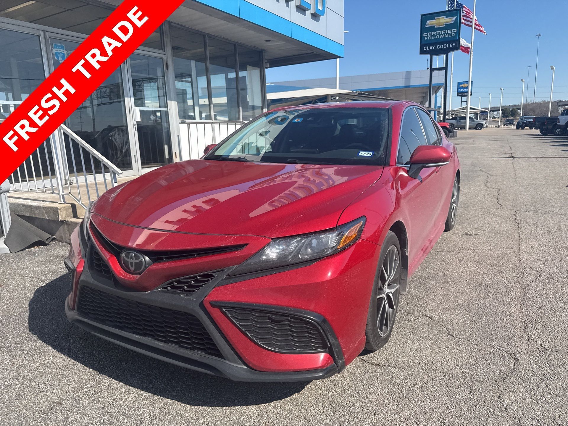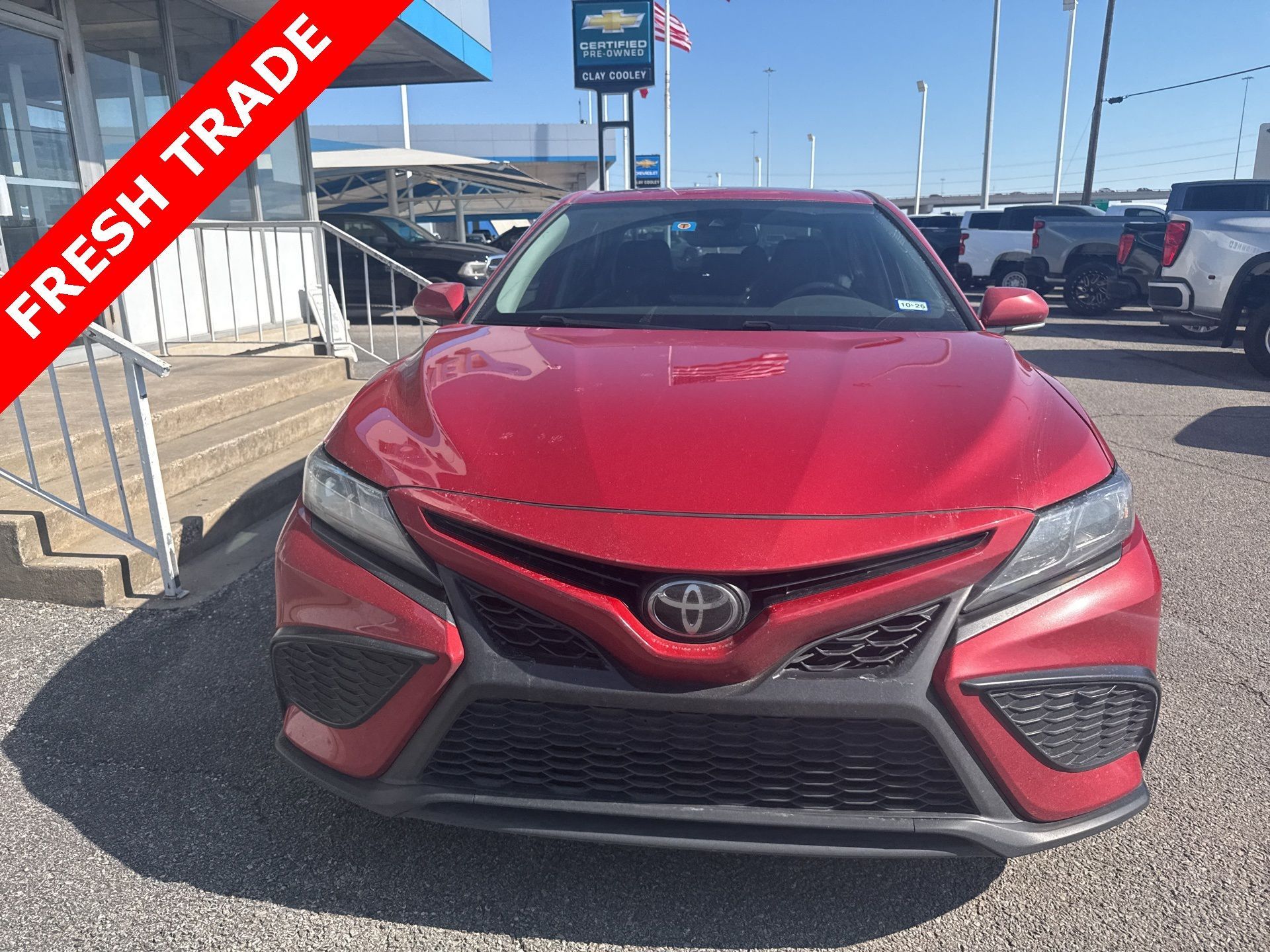 ** Alloy Wheels / Premium Wheels, ** Apple CarPlay / Android Auto, ** Backup Camera / Parking Sensors, ** Bluetooth, Hands-Free, ** Brake Assist, ** Cruise Control, ** Keyless Entry, ** Premium Sound System / Premium Audio, ** Satellite Radio Capable, ** Security System, ** Stability Control, ** Steering Wheel Controls, ** USB Port, Black w/Sport SofTex Seat Trim w/Fabric Inserts. This vehicle comes equipped with Black w/Sport SofTex Seat Trim w/Fabric Inserts Black w/Sport SofTex Seat Trim w/Fabric Inserts, 4-Wheel Disc Brakes, 6 Speakers, 8.0J x 18" Alloy Wheels, ABS brakes, Air Conditioning, Alloy wheels, AM/FM radio: SiriusXM, Apple CarPlay/Android Auto, Auto High-beam Headlights, Automatic temperature control, Brake assist, Bumpers: body-color, Delay-off headlights, Driver door bin, Driver vanity mirror, Dual front impact airbags, Dual front side impact airbags, Electronic Stability Control, Emergency communication system: Safety Connect (1-year trial), Exterior Parking Camera Rear, Four wheel independent suspension, Front anti-roll bar, Front Bucket Seats, Front Center Armrest, Front dual zone A/C, Front reading lights, Fully automatic headlights, Heated door mirrors, Illuminated entry, Knee airbag, Leather steering wheel, Low tire pressure warning, Occupant sensing airbag, Outside temperature display, Overhead airbag, Overhead console, Panic alarm, Passenger door bin, Passenger vanity mirror, Power door mirrors, Power driver seat, Power steering, Power windows, Radio data system, Radio: Audio, Rear anti-roll bar, Rear seat center armrest, Rear side impact airbag, Rear window defroster, Remote keyless entry, Security system, Speed control, Speed-sensing steering, Split folding rear seat, Spoiler, Sport SofTex Seat Trim w/Fabric Inserts, Steering wheel mounted audio controls, Tachometer, Telescoping steering wheel, Tilt steering wheel, Traction control, Trip computer, Turn signal indicator mirrors, and Variably intermittent wipers.Recent Arrival! Clean CARFAX. Supersonic Red 2023 Toyota Camry SE 2.5L I4 DOHC 16V 8-Speed AutomaticMany other Cars and Trucks and SUV available, please visit us. 7 Day Vehicle Exchange Program on cars, trucks, and SUV inventory in Dallas. Come see Young Chevrolet Today. www.youngchevrolet.com.