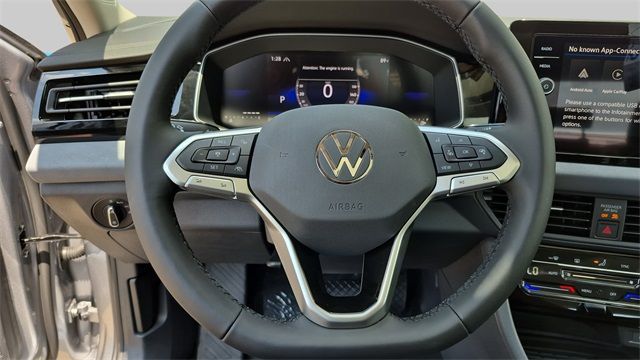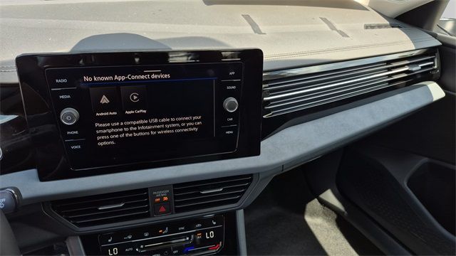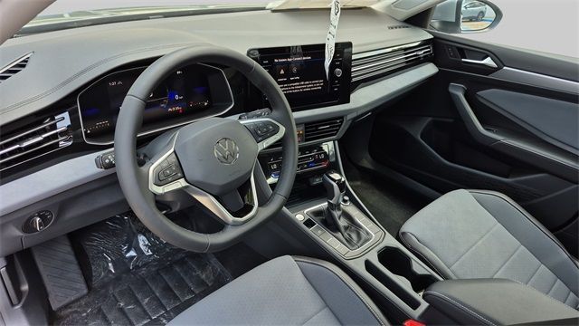 ** Apple CarPlay / Android Auto, ** Backup Camera / Parking Sensors, ** Cruise Control, ** Alloy Wheels / Premium Wheels, ** Brake Assist, ** Keyless Entry, ** Bluetooth, Hands-Free, ** Premium Sound System / Premium Audio, ** Satellite Radio Capable, ** Security System, ** Stability Control, ** Steering Wheel Controls, ** USB Port, Grigio/Titan Black w/CloudTex & V-Tex Leatherette Seat Trim.2025 Volkswagen Jetta 1.5T SE 1.5T SE 4D Sedan Silver 1.5L I-4 DI DOHC Turbocharged FWD 8-Speed Automatic with Tiptronic