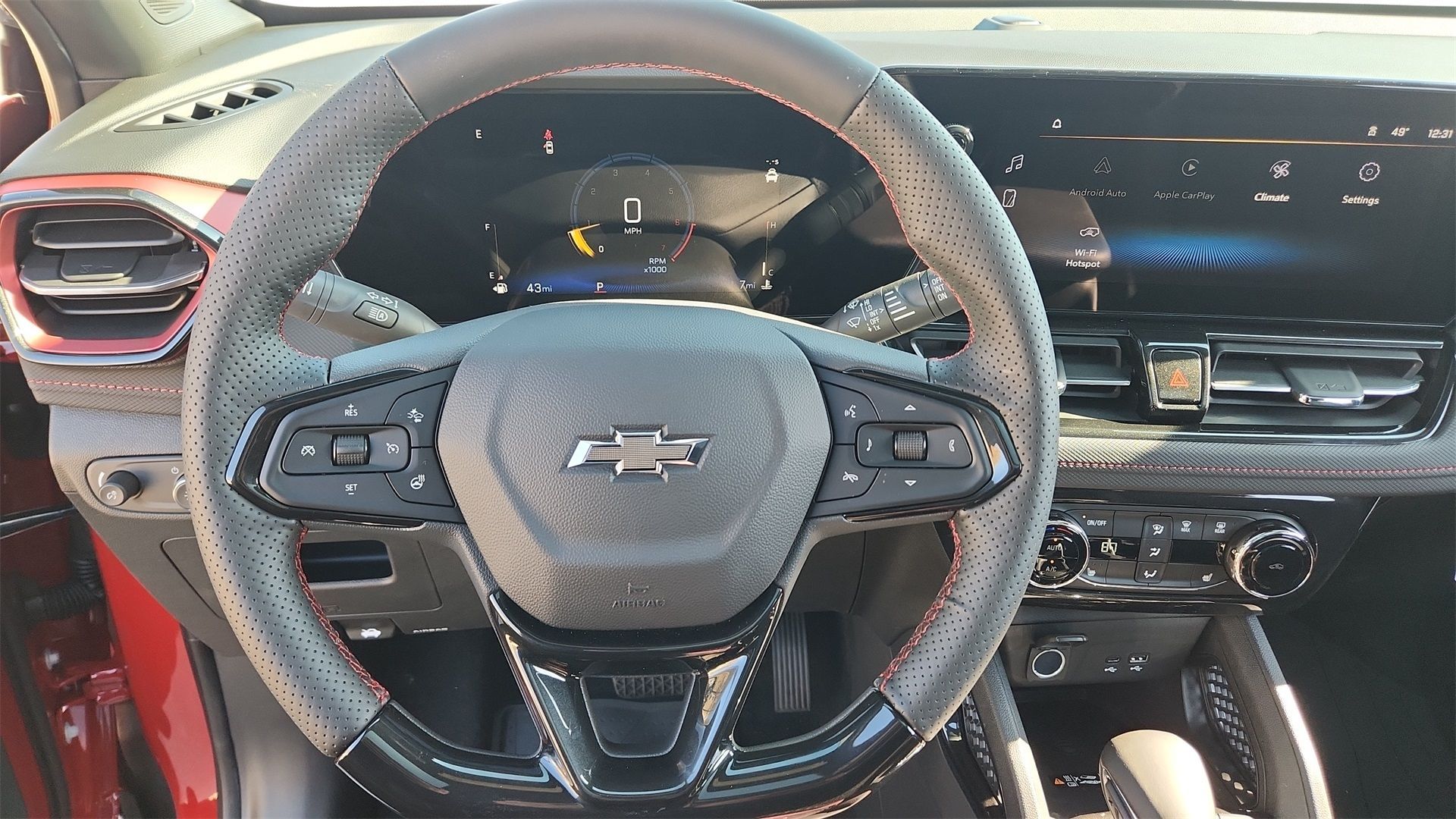** Adaptive Cruise Control, ** Adaptive Suspension, ** Alloy Wheels / Premium Wheels, ** Apple CarPlay / Android Auto, ** Automatic Emergency Braking, ** Backup Camera / Parking Sensors, ** Blind Spot Monitoring, ** Bluetooth, Hands-Free, ** Brake Assist, ** Cruise Control, ** Heated Seats, ** Heated Steering Wheel, ** HomeLink, ** Keyless Entry, ** Keyless Start, ** Lane Departure Warning, ** Leather Seats, ** LED Headlights, ** Multi Zone Climate Control, ** Navigation System, ** Portable Audio Connection, ** Premium Sound System / Premium Audio, ** Rear Cross Traffic Alert, ** Remote Start / Remote Engine Start, ** Satellite Radio Capable, ** Security System, ** Stability Control, ** Steering Wheel Controls, ** Sunroof / Moonroof, ** Trailer Hitch / Tow Hitch, ** USB Port, ** WiFi Hotspot, TrailBlazer RS, 4D Sport Utility, 1.3L I3 Turbocharged DOHC 12V LEV3-SULEV30 155hp, CVT, FWD, Apex Red, Jet Black With Red Accents, 120-Volt Power Outlet, 2-Way Power Driver Lumbar Seat Adjuster, 4-Way Manual Front Passenger Seat Adjuster, 8-Way Power Driver Seat Adjuster, ABS brakes, Brake assist, Cabin Humidity Sensor, Compass, Convenience Package, Delay-off headlights, Driver Confidence Package, Driver vanity mirror, Dual-Pane Panoramic Power Sunroof, Electronic Stability Control, Emergency communication system: OnStar and Chevrolet connected services capable, Enhanced Performance 6-Speaker Audio System, Evotex Seat Trim, Exterior Parking Camera Rear, Fully automatic headlights, Hands Free Power Programmable Liftgate, Heated door mirrors, Heated front seats, Heated steering wheel, Inside Rear-View Auto-Dimming Mirror, Low tire pressure warning, Occupant sensing airbag, Overhead airbag, Overhead console, Passenger door bin, Power door mirrors, Power driver seat, Preferred Equipment Group 1RS, Radio data system, Radio: AM/FM Stereo Audio System, Rear Cross Traffic Alert, Rear Park Assist, Rear window defroster, Rear window wiper, Remote keyless entry, Security system, Single-Zone Automatic Climate Control, SiriusXM Trial Subscription, Steering wheel mounted audio controls, Tachometer, Telescoping steering wheel, Tilt steering wheel, Variably intermittent wipers, Wheels: 19" High Gloss Black Machined Aluminum, Wireless Apple CarPlay/Android Auto, Wireless Charging.$3,500 off MSRP! Factory MSRP: $33,140 Apex Red 2026 Chevrolet TrailBlazer RS 4D Sport Utility 1.3L I3 Turbocharged DOHC 12V LEV3-SULEV30 155hp CVT FWD