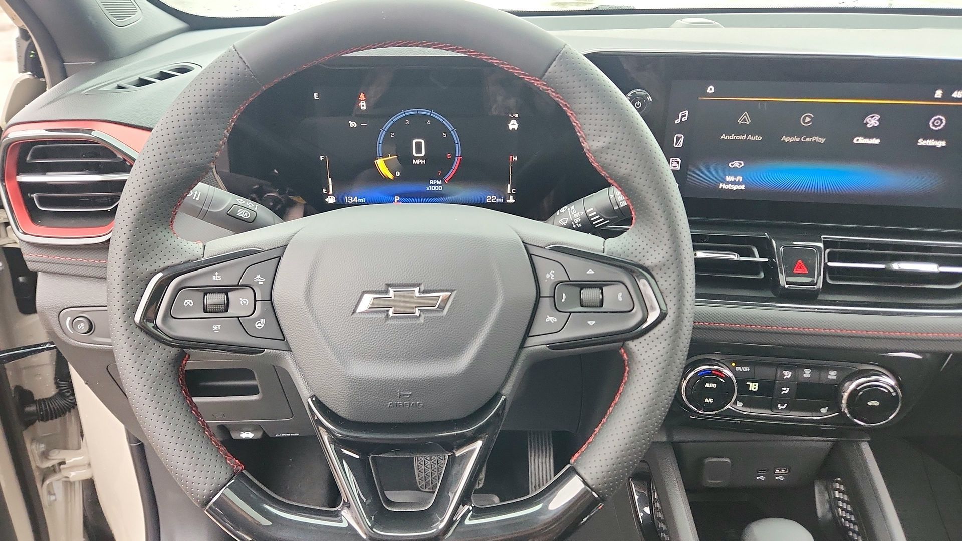 ** Adaptive Cruise Control, ** Adaptive Suspension, ** Alloy Wheels / Premium Wheels, ** Apple CarPlay / Android Auto, ** Backup Camera / Parking Sensors, ** Bluetooth, Hands-Free, ** Brake Assist, ** Cruise Control, ** Heated Seats, ** Heated Steering Wheel, ** HomeLink, ** Keyless Entry, ** Multi Zone Climate Control, ** Navigation System, ** Premium Sound System / Premium Audio, ** Rear Cross Traffic Alert, ** Remote Start / Remote Engine Start, ** Satellite Radio Capable, ** Security System, ** Stability Control, ** Steering Wheel Controls, ** Sunroof / Moonroof, ** Trailer Hitch / Tow Hitch, ** USB Port, ** WiFi Hotspot, ** Power Liftgate, TrailBlazer RS, 4D Sport Utility, 1.3L I3 Turbocharged DOHC 12V LEV3-SULEV30 155hp, CVT, FWD, White Sands, Jet Black With Red Accents, 1 Type-A and 1 Type-C USB Charging-Only Ports, 1 Type-A and 1 Type-C USB Ports, 120-Volt Power Outlet, 2-Way Power Driver Lumbar Seat Adjuster, 8-Way Power Driver Seat Adjuster, ABS brakes, Cabin Humidity Sensor, Convenience Package, Delay-off headlights, Driver and Front Passenger Illuminated Vanity Mirrors, Driver Confidence Package, Dual front impact airbags, Dual-Pane Panoramic Power Sunroof, Electronic Stability Control, Enhanced Performance 6-Speaker Audio System, Exterior Parking Camera Rear, Flat-Folding Front Passenger Seatback, Front anti-roll bar, Fully automatic headlights, Hands Free Power Programmable Liftgate, Heated door mirrors, Inside Rear-View Auto-Dimming Mirror, Lane Change Alert with Side Blind Zone Alert, Low tire pressure warning, Occupant sensing airbag, Power door mirrors, Power windows, Preferred Equipment Group 1RS, Radio: AM/FM Stereo Audio System, Rear Cross Traffic Alert, Rear Park Assist, Rear window wiper, Ride and Handling Suspension, Single-Zone Automatic Climate Control, SiriusXM Trial Subscription, Speed control, Steering wheel mounted audio controls, Tachometer, Telescoping steering wheel, Traction control, Variably intermittent wipers, Wheels: 19" High Gloss Black Machined Aluminum, Wireless Apple CarPlay/Android Auto, Wireless Charging.$2,204 off MSRP! Factory MSRP: $33,045 White Sands 2026 Chevrolet TrailBlazer RS 4D Sport Utility 1.3L I3 Turbocharged DOHC 12V LEV3-SULEV30 155hp CVT FWD