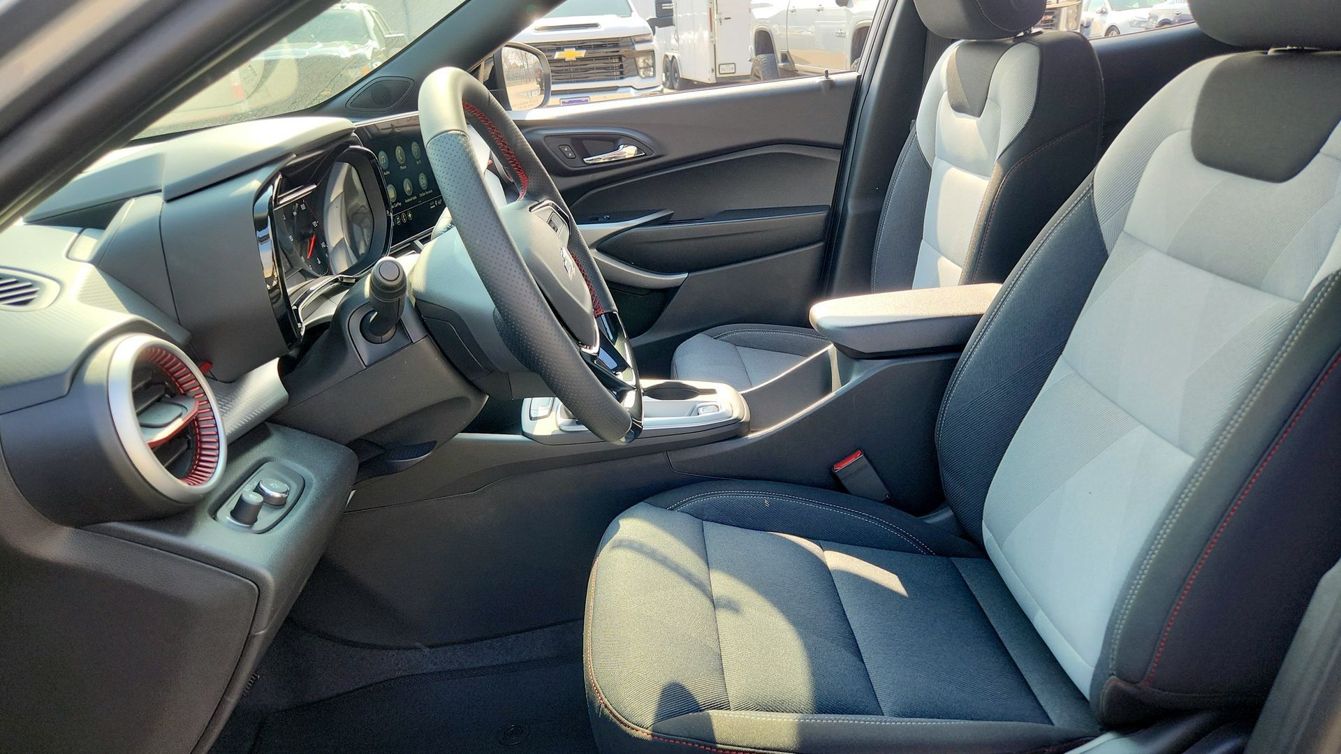 ** Adaptive Cruise Control, ** Adaptive Suspension, ** Alloy Wheels / Premium Wheels, ** Apple CarPlay / Android Auto, ** Automatic Emergency Braking, ** Backup Camera / Parking Sensors, ** Bluetooth, Hands-Free, ** Brake Assist, ** Cruise Control, ** Heated Seats, ** Heated Steering Wheel, ** Keyless Entry, ** Keyless Start, ** LED Headlights, ** Navigation System, ** Premium Sound System / Premium Audio, ** Satellite Radio Capable, ** Security System, ** Stability Control, ** Steering Wheel Controls, ** Sunroof / Moonroof, ** USB Port, ** WiFi Hotspot, Trax 1RS, 4D Sport Utility, ECOTEC 1.2L Turbo, 6-Speed Automatic, FWD, Sterling Gray Metallic, Jet Black/Gray With Red Accents Cloth, 2-Way Adjustable Front Head Restraints, 4-Speaker Audio System Feature, 6-Way Manual Driver Seat Adjuster, Air Conditioning, Compass, Driver Confidence Package, Electronic Stability Control, Exterior Parking Camera Rear, Fully automatic headlights, Heated door mirrors, Heated Driver and Front Passenger Seats, Heated steering wheel, Lane Change Alert with Side Blind Zone Alert, Leather steering wheel, Low tire pressure warning, Outside temperature display, Power door mirrors, Power Sliding Glass Sunroof with Manual Shade, Power steering, Power windows, Preferred Equipment Group 1RS, Premium audio system: Chevrolet Infotainment 3, Radio: Chevrolet Infotainment 3 System with AM/FM, Rear Cross Traffic Alert, Rear Park Assist, Rear window defroster, Rear window wiper, SiriusXM Trial Subscription, Speed control, Steering wheel mounted audio controls, Sunroof Package, Tachometer, Tilt steering wheel, Trip computer, Variably intermittent wipers, Wheels: 18" Black-Painted Machined Aluminum, Wireless Apple CarPlay/Wireless Android Auto.$955 off MSRP! Factory MSRP: $26,185 Sterling Gray Metallic 2026 Chevrolet Trax 1RS 4D Sport Utility ECOTEC 1.2L Turbo 6-Speed Automatic FWD