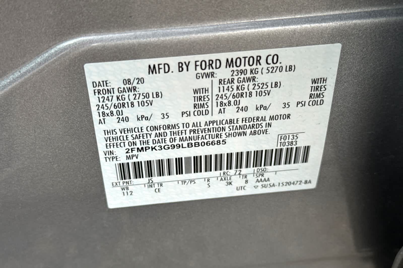 ENGINE: TWIN-SCROLL 2.0L ECOBOOST auto start-stop technology (STD).
