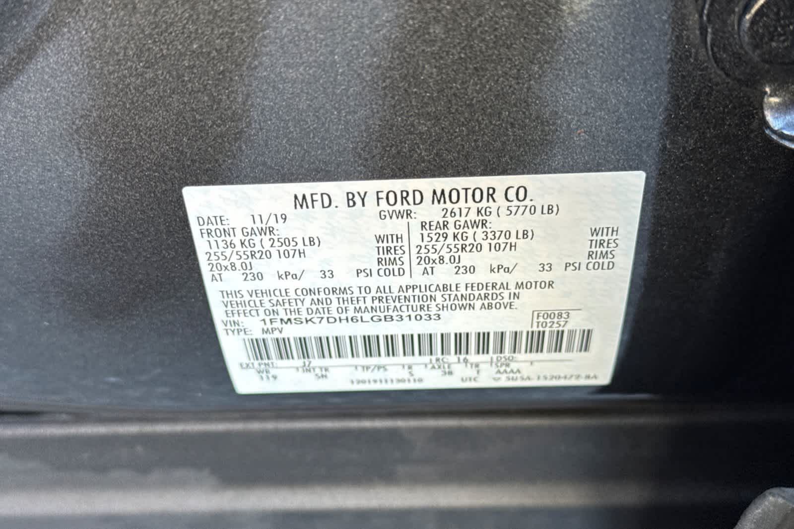 EQUIPMENT GROUP 202A LED Fog Lamps, silver-painted front skid plate elements, Remote Start System, WHEELS: 20 PREMIUM PAINTED ALUMINUM Tires: P255/55R20 AS BSW, FORD CO-PILOT360 ASSIST+ Voice-Activated Touchscreen Navigation System, pinch-to-zoom capability, SiriusXM Traffic and Travel Link, Note: SiriusXM Traffic and Travel Link includes a, SiriusXM Traffic and Travel Link service is not available in Alaska or Hawaii, Note: SiriusXM audio and data services each require a subscription sold separately, or as a package, by SiriusXM radio inc, If you decide to continue service after your trial, the subscription plan you choose will automatically renew thereafter and you will be charged according to your chosen payment method at then-current rates, Fees and taxes apply, To cancel you must call SiriusXM at 1-866-635-2349, See SiriusXM customer agreement for complete terms at www.siriusxm.com, All fees and programming subject, TRANSMISSION: 10-SPEED AUTOMATIC W/SELECTSHIFT Active Transmission Warm-Up (ATWU) (STD).