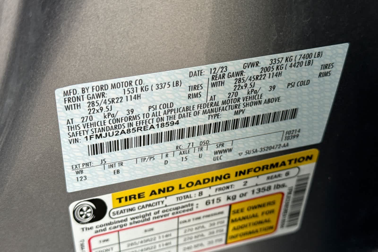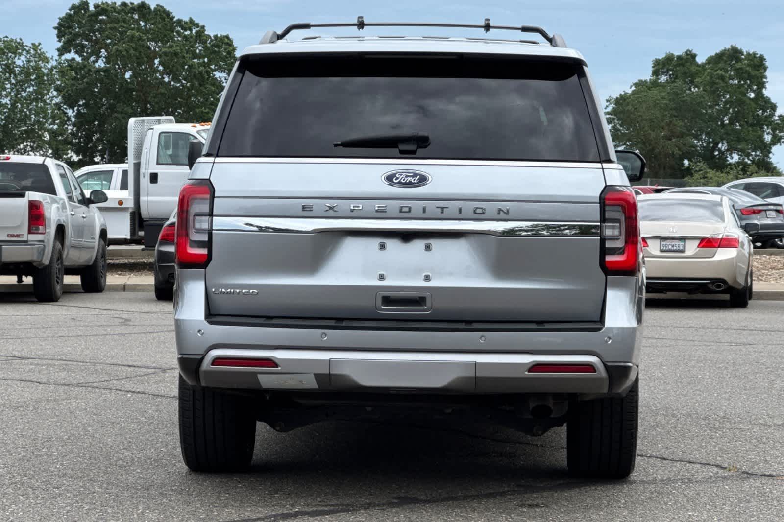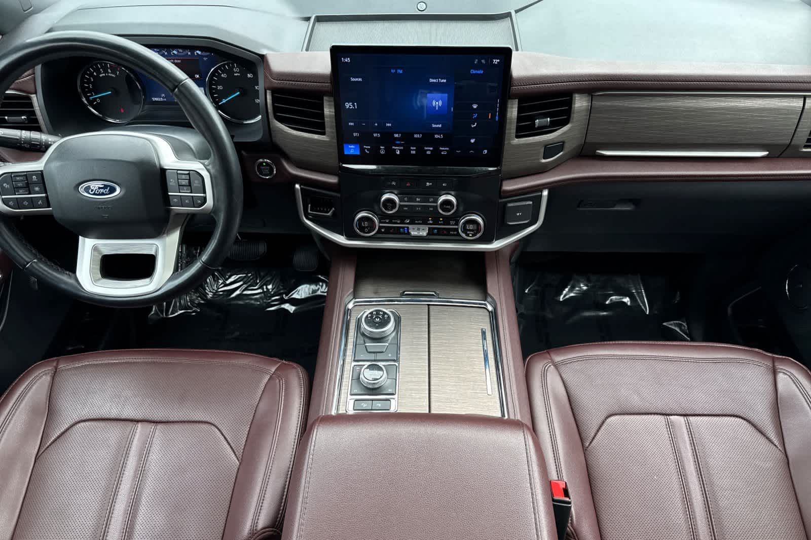 EQUIPMENT GROUP 302A HIGH PACKAGE Wheels: 22 12-Spoke Polished Aluminum, Ebony Black Mesh Grille, bright chrome bars and chrome inserts, Power-Folding Sideview Mirrors w/Autofold, power and heated glass, turn signal indicators, security approach lamps, driver/passenger side memory and body-color caps, Ford Co-Pilot360 Assist 2.0, Connected Navigation, 1 year of connectivity, pinch-to-zoom capability, live traffic, predictive destinations and route guidance, Reverse Brake Assist, 360-Degree Camera w/Split View, front/rear washer, Magnetic-Painted Power Deployable Running Boards, polished stainless accent, Panoramic Vista Roof, power open/close w/power shade, Heavy-Duty Independent Suspension, Tires: P285/45R22 110H AS BSW, 2ND ROW POWER-FOLDING 40/20/40 LEATHER BENCH SEAT 8-passenger seating, tip-and-slide feature, ADVANCED CARGO MANAGER black roof-rail crossbars, TRANSMISSION: 10-SPEED AUTOMATIC W/SELECTSHIFT (STD).