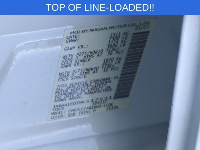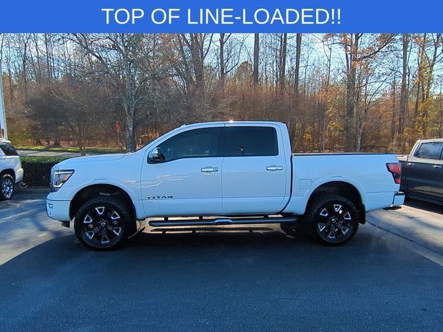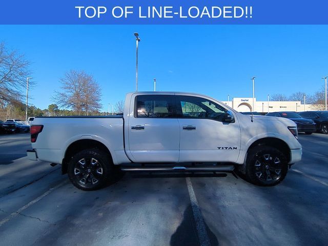 Capital Chrysler Jeep Dodge - NC is proud to offer this beautiful 2021 Nissan Titan Pearl White Metallic Platinum Reserve.CARFAX CERTIFIED **, EXTENDED SERVICE CONTRACT AVAILABLE **, RECENT LOCAL TRADE **, REMAINDER OF FACTORY WARRANTY **, ALL BOOKS AND KEYS, 4WD, 12 Speakers, All Season Floor Mats, AM/FM radio: SiriusXM, Auto High-beam Headlights, Auto tilt-away steering wheel, Auto-dimming door mirrors, Auto-dimming Rear-View mirror, Automatic temperature control, Bed Assist Grip, Blind Spot Warning, Body Color Front Bumper, Body Color Overfenders, Body Color Rear Bumper, Brake assist, Delay-off headlights, Dual Panel Panoramic Moonroof w/Tilt & Slide, Electronic Locking Tailgate, Electronic Stability Control, Exterior Parking Camera Rear, Front dual zone A/C, Front fog lights, Fully automatic headlights, Garage door transmitter: HomeLink, Heated & Cooled Front Captain's Seats, Heated door mirrors, Heated rear seats, Heated steering wheel, Lighted Running Boards, Logo Light & Radiant Grille Emblem, Memory seat, Monotone Paint Package, Moonroof Package, Navigation system: NissanConnect Navigation, NissanConnect featuring Apple CarPlay and Android Auto, NissanConnect Services Powered By SiriusXM, Off Road Protection Package, Panic alarm, Passenger door bin, Platinum Reserve Mud Flaps, Platinum Reserve Utility Package, Platinum Utility Package, Power door mirrors, Power passenger seat, Power windows, Premium Leather-Appointed Seat Trim, Radio data system, Radio: NissanConnect w/Navigation, Rear Utility Bed Step, Rear window defroster, Remote keyless entry, Security system, Speed control, Speed-sensing steering, Split folding rear seat, Steering wheel memory, Steering wheel mounted audio controls, Telescoping steering wheel, Tilt steering wheel, TITAN Box, Traction control, Wheels: 20" x 8" Dark Painted & Machined Clad.Clean CARFAX. Odometer is 20069 miles below market average!