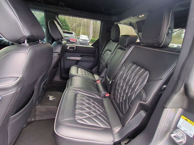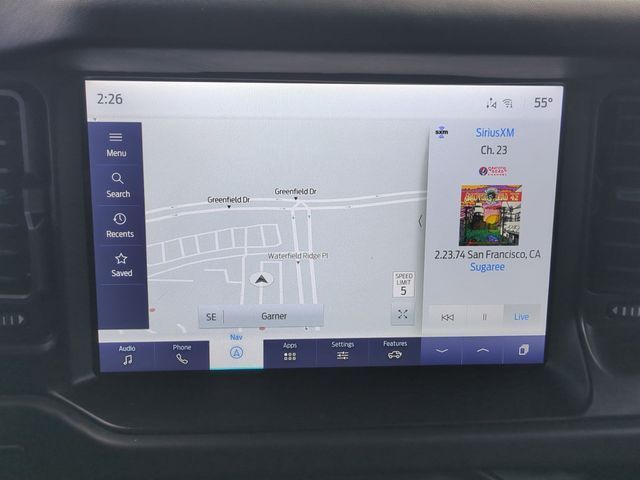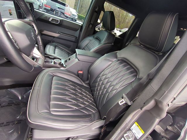 Recent Arrival! Capital Chrysler Jeep Dodge - NC is pumped up to offer this beautiful 2023 Ford Bronco Carbonized Gray Metallic Wildtrak.CARFAX CERTIFIED **, EXTENDED SERVICE CONTRACT AVAILABLE **, ONE OWNER **, RECENT LOCAL TRADE **, REMAINDER OF FACTORY WARRANTY **, ALL BOOKS AND KEYS, NUMEROUS CUSTOM FEATURES!!, 12" LCD Capacitive Touchscreen w/Swipe Capability, 2 Smart Charging USB Ports In Dashboard, 360-Degree Camera, 7 Speakers, ABS brakes, Adaptive Cruise Control, Additional Sound Deadening, Air Conditioning, AM/FM radio: SiriusXM with 360L, AM/FM Stereo, Auto High-beam Headlights, Brake assist, Compass, Connected Built-In Navigation, Delay-off headlights, Electronic Stability Control, Equipment Group 354A Lux Package, Evasive Steering Assist, Exterior Parking Camera Rear, Front Parking Sensors, Fully automatic headlights, Heated door mirrors, Heated Steering Wheel, Illuminated entry, Information on Demand Panel, Low tire pressure warning, Navigation system: Connected Navigation, Panic alarm, Power windows, Radio data system, Radio: B&O Sound System by Bang & Olufsen, Remote keyless entry, Security system, Sideview Mirrors, SiriusXM Radio w/360L, Split folding rear seat, Steering wheel mounted audio controls, SYNC 4, Telescoping steering wheel, Tilt steering wheel, Traction control, Universal Garage Door Opener, Wireless Charging Pad.CARFAX One-Owner.