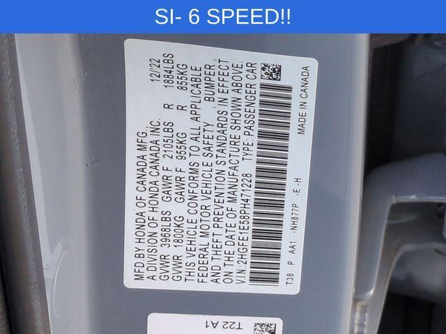 Recent Arrival! Capital Chrysler Jeep Dodge - NC is very proud to offer this good-looking 2023 Honda Civic Aegean Blue Metallic Si.CARFAX CERTIFIED **, EXTENDED SERVICE CONTRACT AVAILABLE **, ONE OWNER **, RECENT LOCAL TRADE **, REMAINDER OF FACTORY WARRANTY **, ALL BOOKS AND KEYS, Black/Red Cloth, 12 Speakers, AM/FM radio: SiriusXM, Apple CarPlay/Android Auto, Auto High-beam Headlights, Automatic temperature control, Bose Premium Sound System, Brake assist, Delay-off headlights, Electronic Stability Control, Exterior Parking Camera Rear, Fabric Seat Trim, Four wheel independent suspension, Front dual zone A/C, Fully automatic headlights, Heated door mirrors, Panic alarm, Power door mirrors, Power moonroof, Power steering, Power windows, Radio data system, Rear window defroster, Remote keyless entry, Security system, Speed control, Speed-sensing steering, Split folding rear seat, Spoiler, Steering wheel mounted audio controls, Telescoping steering wheel, Tilt steering wheel, Traction control, Wheels: 18" Matte Black Alloy.Clean CARFAX. CARFAX One-Owner. 27/37 City/Highway MPG Odometer is 13170 miles below market average!