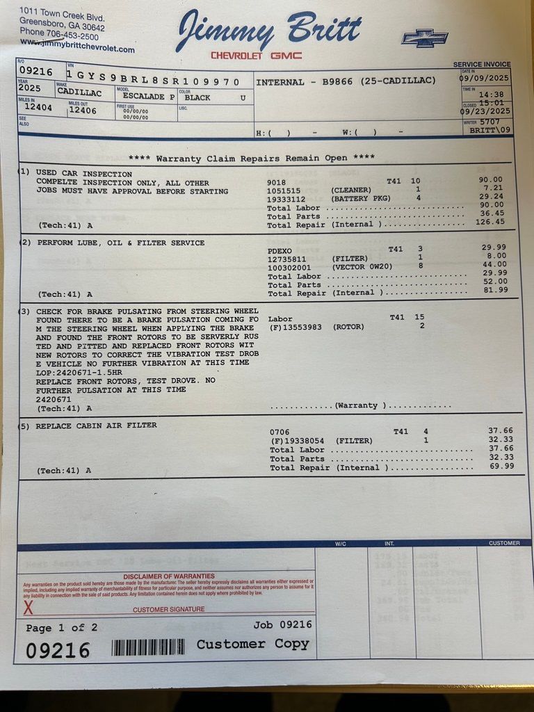 *The Jimmy Britt Premium Delivery Program lets you buy this vehicle right from the comfort of your couch. We frequently deliver vehicles nationwide, and even arrange test drives at home, if you are nearby. We will send you a personal video on any vehicle you are interested in. Call, email, or text us for details.* (Plus, you get our low-price guarantee and 2 free oil changes and tire rotations!) Ask for the vehicle history report! Priced below KBB Fair Purchase Price!iPhone/ Android Navigation compatible, Automatic Headlights, Rearview Camera, Bluetooth, Leather, 1 Owner, Sunroof / Moonroof, Running Boards, Heated and Vented Front Seats, Heated 2nd Row, Heated Steering Wheel, Remote Starter System, Mutli-function Steering Wheel, 4X4, Includes the Remainder of the Factory Warranty, Extended Warranty Available, Apple Carplay, ONSTAR, 3rd Row Seats, Push Button Start, Remote Keyless Entry, Andoid Auto, Premium Delivery Service Available, TINT, Escalade Premium Luxury, 4D Sport Utility, 6.2L V8, 10-Speed Automatic, 4WD, Black Raven, Jet Black w/Leather Seating Surfaces w/Precision Perf Inserts, 2-Speed Active Transfer Case, 3.23 Axle Ratio, AKG Studio 19-Speaker Audio System, Apple CarPlay/Android Auto, Automatic temperature control, Blind Zone Steering Assist w/Trailering, Door Lock & Latch Shields, Electronic Limited-Slip Differential, Exterior Parking Camera Rear, Front dual zone A/C, Heads-Up Display, Heated & Ventilated Driver & Front Passenger Seats, Heated Driver & Front Passenger Seats, Heated front seats, Heated rear seats, Heated steering wheel, Hitch Guidance w/Hitch View, Illuminating Front & Rear Sill Plates, Integrated Trailer Brake Controller, Lane Departure Warning System, Leather Seating Surfaces w/Precision Perf Inserts, Low tire pressure warning, Magnetic Ride Control Suspension, Navigation System, Power Liftgate, Power moonroof, Power Panoramic Tilt-Sliding Sunroof, Power passenger seat, Preferred Equipment Group 1SB, Rain sensing wipers, Rear air conditioning, Rear anti-roll bar, Reconfigurable Full-Color Head-Up Display, Remote keyless entry, Running Board Assist Steps, SiriusXM w/360L Trial Subscription, Smart Trailer Integration Indicator, Theft-Deterrent Alarm System, Trailering App, Trailering Assist Guidelines, Vehicle Inclination Sensor, Vehicle Interior Movement Sensor, Ventilated front seats, Wheel Locks, Wheels: 22" 9-Spoke Alloy w/Polished Finish, Wireless Apple CarPlay/Wireless Android Auto.Black Raven 2025 Cadillac Escalade Premium Luxury 6.2L V8 4WDThe Jimmy Britt Automotive Family has received multiple Dealer of the Year awards in the state of Georgia. We've also been awarded the Customer Satisfaction Award through DealerRater! Price does not include State/County/Local Tax, Tag, GA Lemon Law or Registration fees. Dealer administrative fee is included in the price. We offer electronic tag and title as an option for an additional fee (this fee is based on what your state/county charge to participate as well as a fee to the company we select to process). A fee may be charged to customers wishing to have the vehicle delivered. Preowned Vehicles - All preowned inventory is “As Is” unless GM Certified or otherwise stated in writing. While we make every effort to ensure the data listed here is correct, there may be instances where some of the factory rebates, incentives, options, or vehicle features may be listed incorrectly as we get data from multiple data sources.