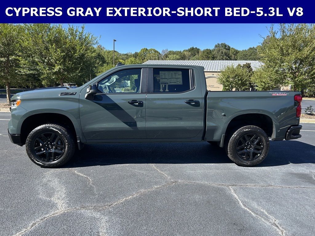 *The Jimmy Britt Premium Delivery Program lets you buy this vehicle right from the comfort of your couch. We frequently deliver vehicles nationwide, and even arrange test drives at home, if you are nearby. We will send you a personal video on any brand new vehicle you are interested in. Call, email, or text us for details.* (Plus, you get our low-price guarantee and two free oil changes and tire rotations!) Factory MSRP: $67,930iPhone/ Android Navigation compatible, Automatic Headlights, Rearview Camera, Bluetooth, Towing Package / Hitch, Bedliner, Heated Front Seats, Heated Steering Wheel, Remote Starter System, LED Cargo Box Lighting, Bose Premium Speaker System, Mutli-function Steering Wheel, 4X4, Apple Carplay, ONSTAR, Push Button Start, Remote Keyless Entry, Andoid Auto, Premium Delivery Service Available, Silverado 1500 LT Trail Boss, 4D Crew Cab, EcoTec3 5.3L V8, 10-Speed Automatic, 4WD, Cypress Gray, Jet Black w/Cloth Seat Trim, 10-Way Power Driver Seat w/Lumbar, 12.3" Multicolor Reconfigurable Digital Display, 120-Volt Bed Mounted Power Outlet, 120-Volt Interior Power Outlet, 170 Amp Alternator, 3.23 Rear Axle Ratio, Apple CarPlay/Android Auto, Auto-Locking Rear Differential, Automatic temperature control, Black Name Plates (LPO), Bluetooth® For Phone, Chevytec Spray-On Black Bedliner, Cloth Seat Trim, Convenience Package, Convenience Package II, Dark Essentials Package (LPO), Deep-Tinted Glass, Dual Rear USB Ports (Charge Only), Dual-Zone Automatic Climate Control, Electric Rear-Window Defogger, Electronic Cruise Control, Emergency communication system: OnStar, EZ Lift Power Lock & Release Tailgate, Following Distance Indicator, Forward Collision Alert, Front dual zone A/C, Front LED Fog Lamps, Front Pedestrian Braking, HD Rear Vision Camera, Heated Driver & Front Outboard Passenger Seats, Heated front seats, Heated Power-Adjustable Outside Mirrors, Heated Steering Wheel, Heavy-Duty Air Filter, High Gloss Black Mirror Caps, Hill Descent Control, Hitch Guidance, Hitch Guidance w/Hitch View, In-Vehicle Trailering System App, Inside Rear-View Mirror w/Tilt, Integrated Trailer Brake Controller, Keyless Open & Start, Lane Keep Assist w/Lane Departure Warning, LED Cargo Area Lighting, Low tire pressure warning, Manual Tilt Price does not include State/County/Local Tax, Tag, GA Lemon Law or Registration fees. Dealer administrative fee of $489 is included in the price. We offer electronic tag and title as an option for additional fee (this fee is based on what your state/county charge to participate as well as a fee to the company we select to process). A fee may be charged to customers wishing to have vehicle delivered. While we make every effort to ensure the data listed here is correct, there may be instances where some of the factory rebates, incentives, options or vehicle features may be listed incorrectly as we get data from multiple data sources. PLEASE MAKE SURE to confirm the details of this vehicle (such as what factory rebates you may or may not qualify for based on your residence/employment/financing) with the dealer to ensure its accuracy. Dealer can not be held liable for data that is listed incorrectly. You may also qualify for $1000 - GM Bonus Cash. Exp. 11/03/2025 $1250 - Chevrolet Trade Assistance Bonus Cash Program. Exp. 11/03/2025 $2000 - Chevrolet Consumer Cash Program. Exp. 11/03/2025 $500 - GM Rewards Card Sales Sign Up and Spend Offer. Exp. 01/02/2026 Savings applied to everyone. Offer includes up to $1500 finance assistance. Not available with special financing, lease and select other offers. Must take new retail delivery by 10/31/2025 Savings applied to everyone. $1500.00 Retail Trade Incentive for current owners trading in 2011 or newer motor vehicle with less than 150,000 miles. Trade must run and drive with valid registration. Not available with special financing, lease and some other offers. Must take new retail delivery by 10/31/2025. Ask Dealer representative for details on qualification