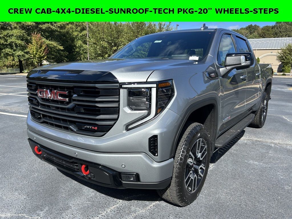 *The Jimmy Britt Premium Delivery Program lets you buy this vehicle right from the comfort of your couch. We frequently deliver vehicles nationwide, and even arrange test drives at home, if you are nearby. We will send you a personal video on any brand new vehicle you are interested in. Call, email, or text us for details.* (Plus, you get our low-price guarantee and two free oil changes and tire rotations!) Factory MSRP: $73,455 Priced below KBB Fair Purchase Price!iPhone/ Android Navigation compatible, Automatic Headlights, Rearview Camera, Bluetooth, Leather, Sunroof / Moonroof, Towing Package / Hitch, Bedliner, Running Boards, Heated and Vented Front Seats, Heated 2nd Row, Heated Steering Wheel, Remote Starter System, LED Cargo Box Lighting, Bose Premium Speaker System, Mutli-function Steering Wheel, 4X4, Apple Carplay, ONSTAR, Push Button Start, Remote Keyless Entry, Andoid Auto, Premium Delivery Service Available, Sierra 1500 AT4, 4D Crew Cab, 3.0L I6, 10-Speed Automatic, 4WD, Sterling Metallic, Jet Black With Kalahari Accents Leather, 120-Volt Bed Mounted Power Outlet, 120-Volt Interior Power Outlet, 2 Charge/Data USB Ports Inside Center Console, 2 Type-C Charge-Only Rear USB Ports, 2 USB Ports, 220 Amp Alternator, 3.23 Rear Axle Ratio, Apple CarPlay/Android Auto, AT4 Preferred Package, AT4 Premium Package, Auto-Locking Rear Differential, Automatic temperature control, Bed View Camera, Black Chrome Grille Insert Bars, Deep-Tinted Glass, Electric Rear-Window Defogger, Emergency communication system: OnStar, Floor-Mounted Center Console, Following Distance Indicator, Forward Collision Alert, Front dual zone A/C, Front Pedestrian Braking, Front Rain-Sensing Wipers, HD Surround Vision, Heated 2nd Row Outboard Seats, Heated Driver & Front Outboard Passenger Seating, Heated front seats, Heated rear seats, Heated steering wheel, Heavy-Duty Air Filter, Hill Descent Control, Hitch Guidance, Hitch View, In-Vehicle Trailering System App, Integrated Trailer Brake Controller, Keyless Open & Start, Lane Keep Assist w/Lane Departure Warning, LED Cargo Area Lighting, Low tire pressure warning, Multicolor 15" Diagonal Head-Up Display, Navigation System, Off-Road High Clearance Step (LPO), OnStar Services Capable, Perforated Front Leather Seat Trim, Perimeter Lighting, Power Door Locks, Power driver seat, Power Front Passenger Windows w/Express Price does not include State/County/Local Tax, Tag, GA Lemon Law or Registration fees. Dealer administrative fee of $489 is included in the price. We offer electronic tag and title as an option for additional fee (this fee is based on what your state/county charge to participate as well as a fee to the company we select to process). A fee may be charged to customers wishing to have vehicle delivered. While we make every effort to ensure the data listed here is correct, there may be instances where some of the factory rebates, incentives, options or vehicle features may be listed incorrectly as we get data from multiple data sources. PLEASE MAKE SURE to confirm the details of this vehicle (such as what factory rebates you may or may not qualify for based on your residence/employment/financing) with the dealer to ensure its accuracy. Dealer can not be held liable for data that is listed incorrectly. You may also qualify for $1750 - Buick & GMC Consumer Cash Program. Exp. 11/03/2025 $500 - GM Rewards Card Sales Sign Up and Spend Offer. Exp. 01/02/2026 Savings applied to everyone. Offer includes up to $1500 finance assistance. Not available with special financing, lease and select other offers. Must take new retail delivery by 10/31/2025 Savings applied to everyone. $1500.00 Retail Trade Incentive for current owners trading in 2011 or newer motor vehicle with less than 150,000 miles. Trade must run and drive with valid registration. Not available with special financing, lease and some other offers. Must take new retail delivery by 10/31/2025. Ask Dealer representative for details on qualification