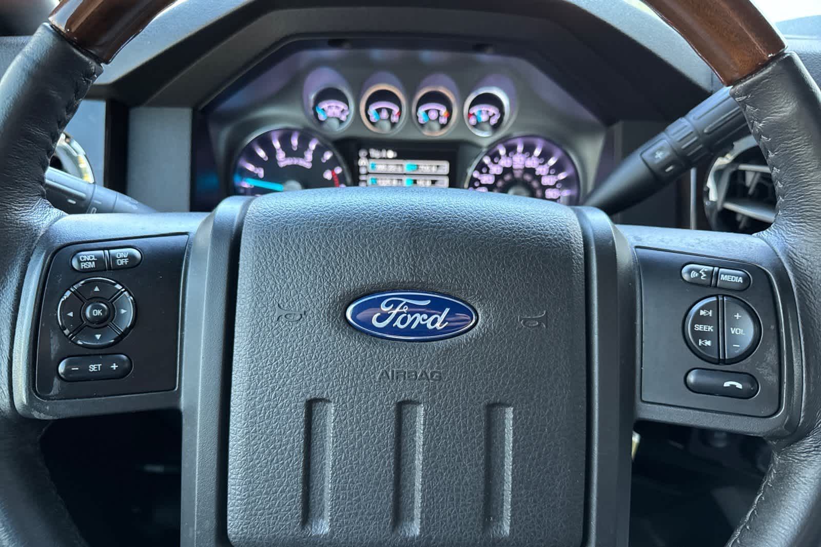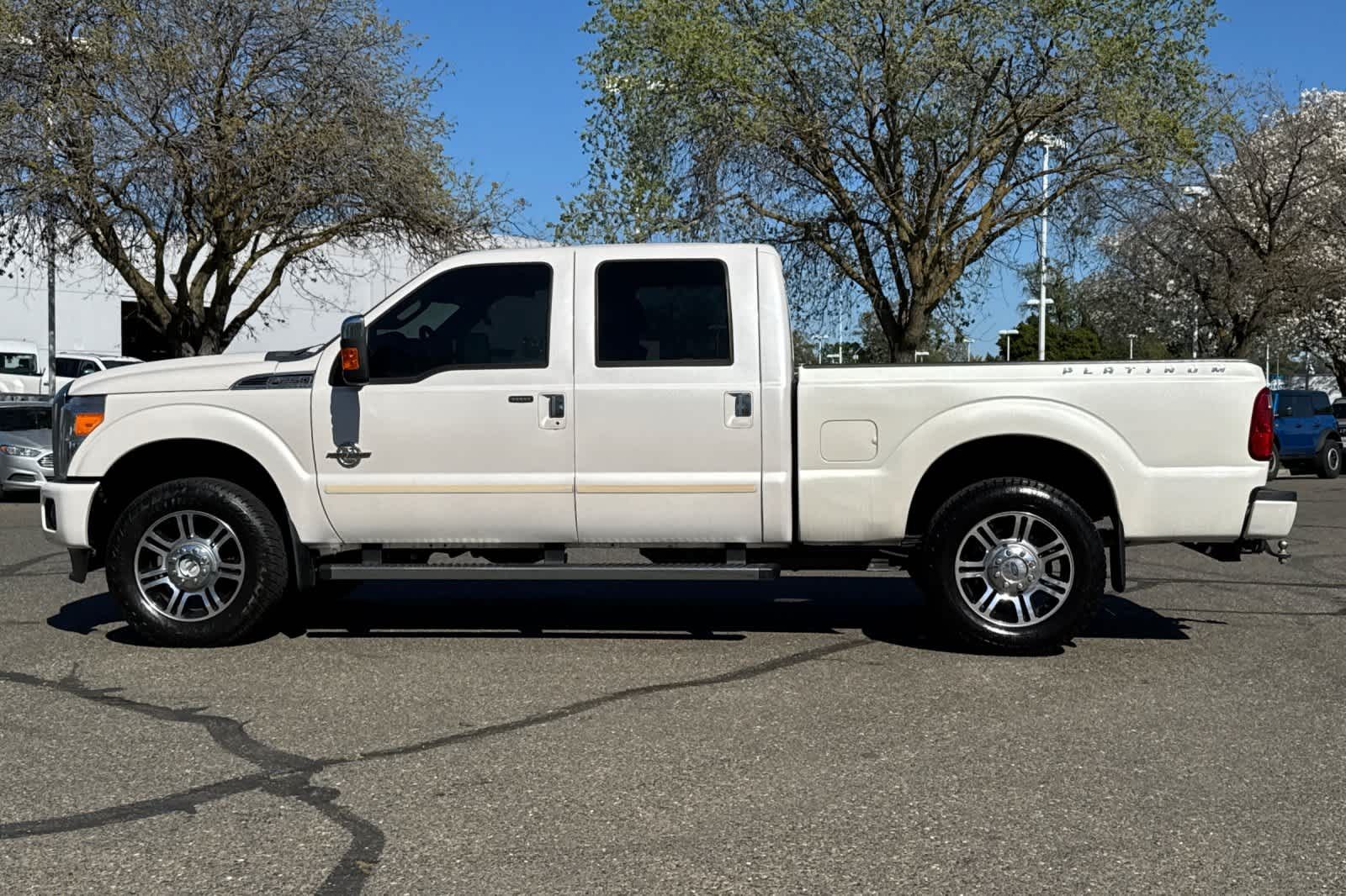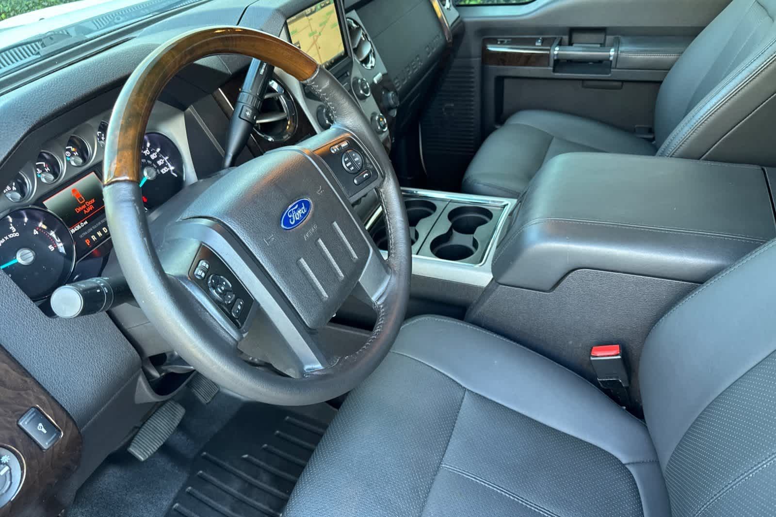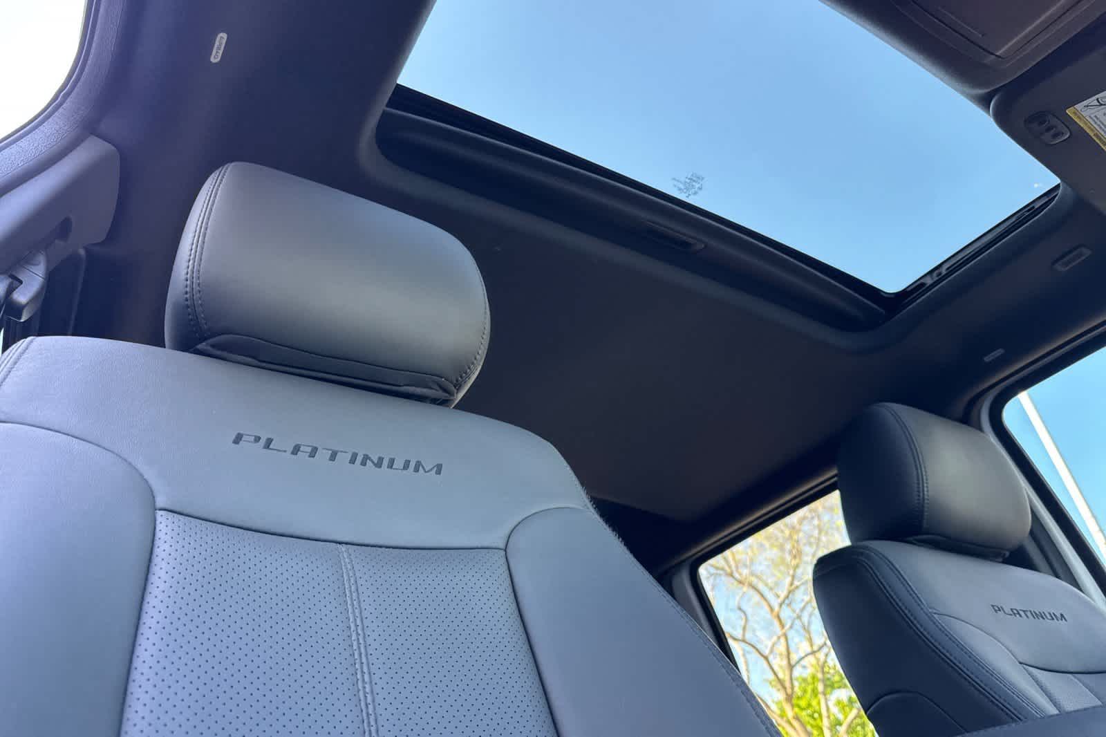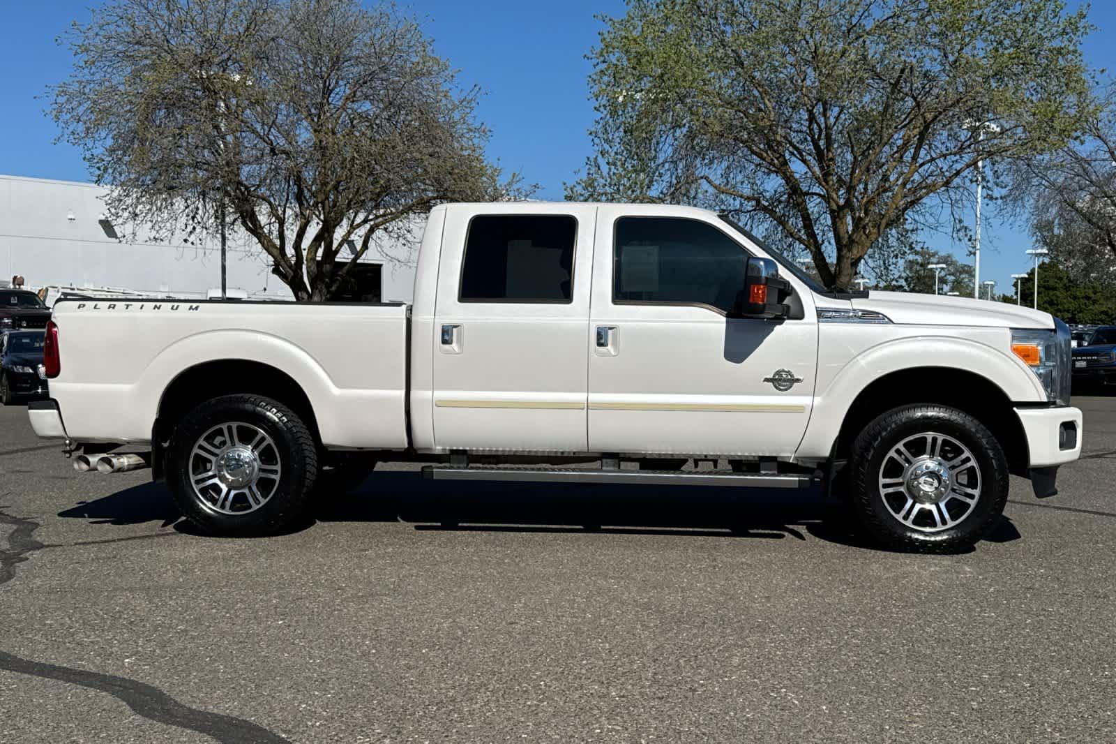 ENGINE: 6.7L POWER STROKE V8 TURBO DIESEL B20 4 valve OHV, manual push-button engine-exhaust braking, 26 Gallon Fuel Tank, 3.31 Axle Ratio, Dual 78-AH 750 CCA Batteries, POWER MOONROOF map lights and moonroof switches, ELECTRONIC LOCKING W/3.55 AXLE RATIO, HEATED REAR SEATS, PLATINUM PACKAGE satin chrome tailgate applique, Platinum raised chrome lettering on boxside, chrome bed tie downs (replaced w/black tie hooks when ordered w/85S ToughBed Spray-In Bedliner) and 2 front chrome tow hooks, Bright Chrome Door & Tailgate Handles, body-color surround, Chrome Skull Caps on PowerScope Mirrors, PowerScope Trailer-Tow Mirrors, power telescoping, power folding w/power heated glass, memory, heated convex spotter mirror and integrated clearance lights/turn signals, Door Trim, soft armrest/grab handle, upper applique, upper and lower map pockets and reflector, Memory Power Adjustable Pedals, Unique Satin Chrome Grille, bright chrome c-clamps, 6 Angular Chrome Step Bars, Body-Color Front & Rear Bumpers, Premium Leather-Wrapped/Wood Steering Wheel, Heated w/audio, TRANSMISSION: TORQSHIFT 6-SPEED AUTO W/OD (6.7L) SelectShift.