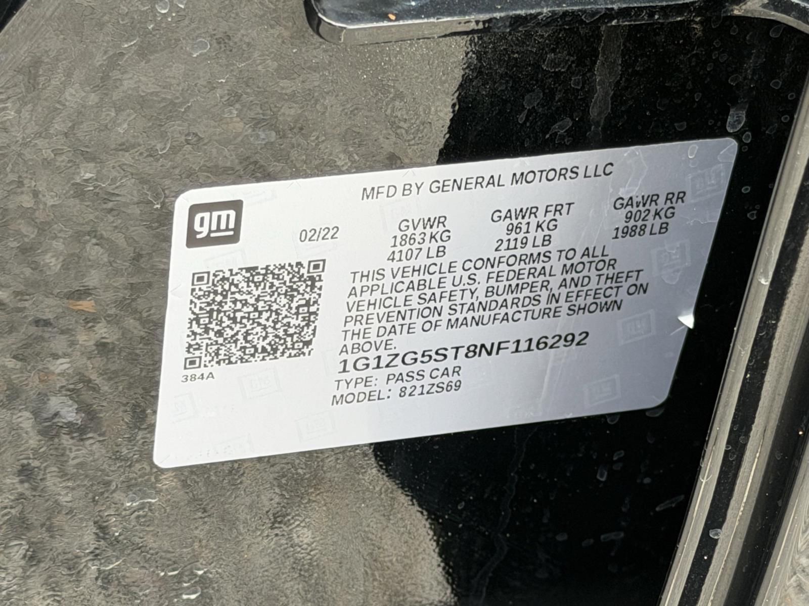 Vin: 1G1ZG5ST8NF116292
