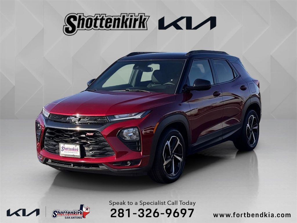 Clean CARFAX. TrailBlazer RS, 4D Sport Utility, 1.3L Ecotec Turbo DOHC SIDI w/VVT, CVT, FWD, Crimson Metallic, Jet Black With Red Accents Cloth, 4-Wheel Disc Brakes, AM/FM radio: SiriusXM, Driver vanity mirror, Heated Steering Wheel, Illuminated entry, Mosaic Black Metallic Two-Tone Roof, Passenger vanity mirror, Preferred Equipment Group 1RS, Ride & Handling Suspension, Security system, SiriusXM Radio, Wireless Apple CarPlay/Android Auto.Crimson Metallic 2022 Chevrolet TrailBlazer RS 1.3L Ecotec Turbo DOHC SIDI w/VVT FWDAwards: * 2022 IIHS Top Safety Pick+