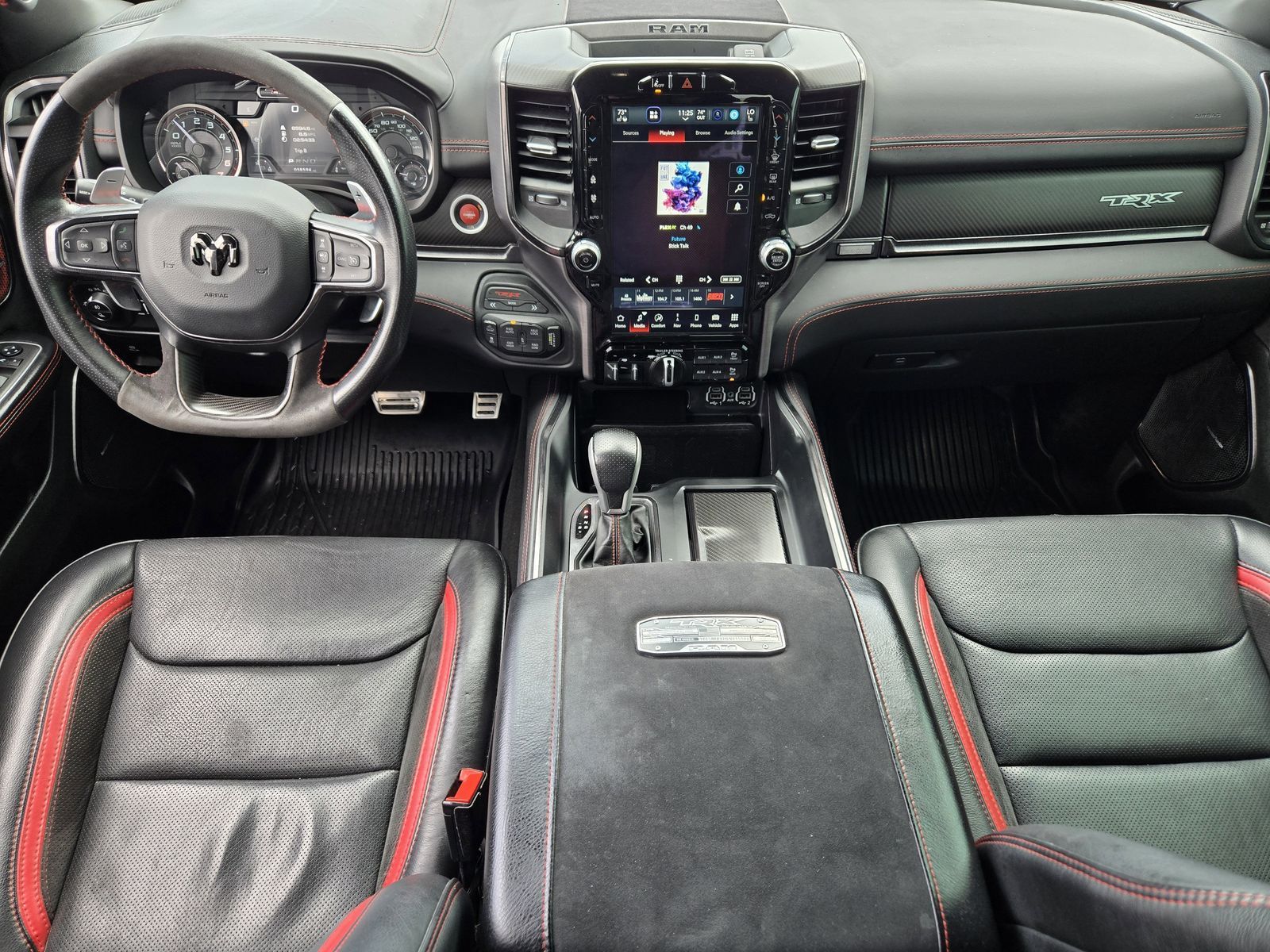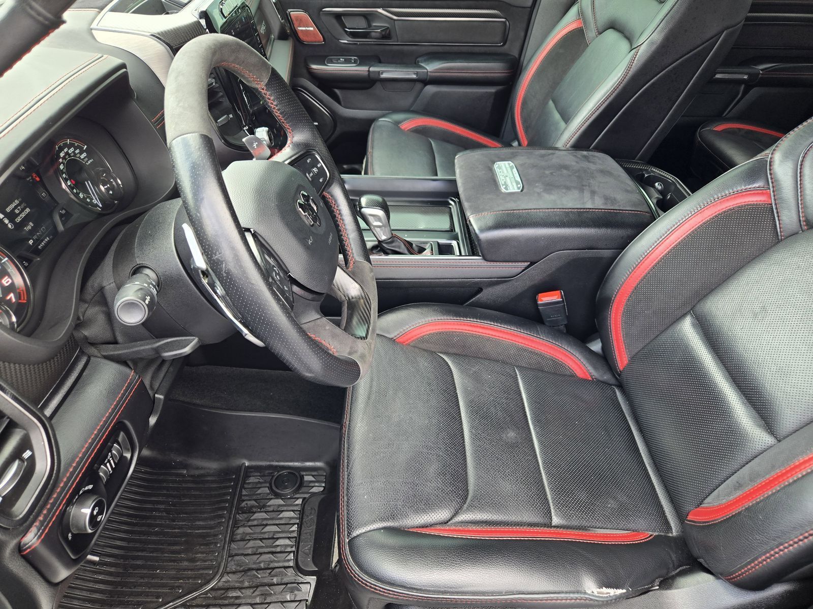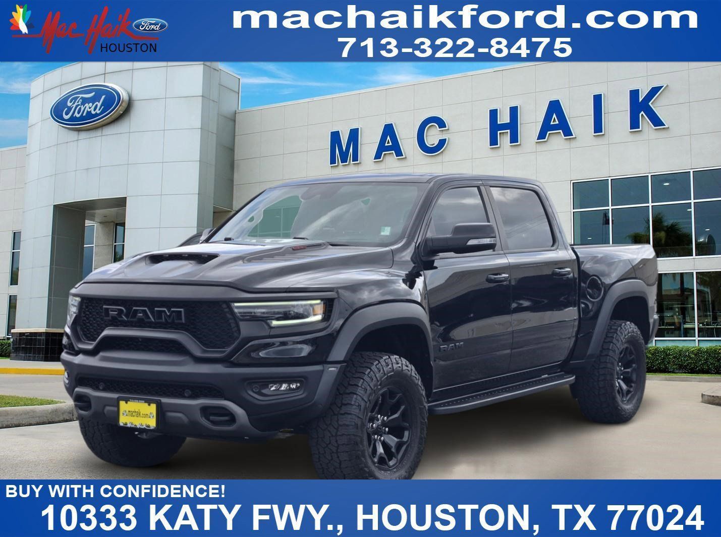 Advanced Safety Group (Adaptive Cruise Control w/Stop & Go, Lane Keep Assist, Pedestrian Emergency Braking, and Tailgate Ajar Warning Lamp), Bed Utility Group (MOPAR 4 Adjustable Cargo Tie-Down Hooks, MOPAR Deployable Bed Step, and MOPAR Spray In Bedliner), Quick Order Package 29Y, Trailer Tow Group (Trailer Brake Control, Trailer Light Check, and Trailer Tire Pressure Monitoring System), TRX Carbon Fiber Package (Leather/Carbon Flat-Bottom Steering Wheel and Real Carbon Fiber Interior Accents), TRX Level 2 Equipment Group (2-Door Passive Entry, Front Door Locks, Blind Spot & Cross Path Detection, Body Color Door Handles, Digital Rearview Mirror, Driver Seat Memory, Driver/Passenger Wrapped Assist Handles, Exterior Mirrors w/Memory, Front Door Accent Lighting, Full Length Premium Upgraded Floor Console, harman/kardon 19 Speaker Premium Sound, Heads-Up Display, Heated Second Row Seats, Heated Steering Wheel, IP LED Ambient Light Pipe, Leather Trimmed Bucket Seats, Leather/Suede Flat-Bottom Steering Wheel, LED CHMSL Lamp, Luxury Front Door Trim Panel, MOPAR Bright Pedal Kit, ParkSense Front/Rear Park Assist w/Stop, Pick-Up Box Lighting, Power 8-Way Driver & Passenger Seats, Power Adjustable Pedals w/Memory, Premium Wrapped IP Bezel, Radio/Driver Seat/Mirrors/Pedals Memory, Rain Sensitive Windshield Wipers, Rear 60/40 Folding Split Recline Seat, Rear Door Accent Lighting, Rear Underseat Compartment Storage, Rear Window Defroster, Remote Tailgate Release, Sun Visors w/Illuminated Vanity Mirrors, Surround View Camera System, Universal Garage Door Opener, Ventilated Front Seats, Ventilated Rear Seats, Wireless Charging Pad, #2 Seat Foam Cushion, 4 Way Front Headrests, Bucket Seats, Center Console Parts Module, Front Seat Back Map Pockets, Heated Front Seats, Power 4-Way Driver Lumbar Adjust, Power 4-Way Passenger Lumbar Adjust, and Rear 60/40 Folding Seat), 1500 TRX, Ford Blue Certification Certified, 4D Crew Cab, 6.2L Supercharged HEMI V8 SRT, 8-Speed Automatic, 4WD, Diamond Black Crystal Pearlcoat, Black w/Premium Leather Trimmed Bucket Seats, Dome Dual LED Reading Lamp, Dual-Pane Panoramic Sunroof, 10 Speakers, 3.55 Rear Axle Ratio, 4-Wheel Disc Brakes, ABS brakes, Adaptive suspension, Air Conditioning, Alloy wheels, AM/FM radio: SiriusXM with 360L, Apple CarPlay/Android Auto, Auto High-beam Headlights, Auto-dimming door mirrors, Auto-dimming Rear-View mirror, Automatic temperature control, Black Exterior Mirrors, Brake assist, Cloth/Vinyl Bucket Seats, Compass, Delay-off headlights, Driver door bin, Dual front impact airbags, Dual front side impact airbags, Electronic Stability Control, Exterior Mirrors Courtesy Lamps, Exterior Mirrors w/Heating Element, Exterior Mirrors w/Supplemental Signals, Front anti-roll bar, Front Bucket Seats, Front Center Armrest w/Storage, Front dual zone A/C, Front fog lights, Front License Plate Bracket, Front reading lights, Front wheel independent suspension, Fully automatic headlights, Heated door mirrors, Illuminated entry, Leather Shift Knob, Leather steering wheel, Low tire pressure warning, Navigation System, Occupant sensing airbag, Outside temperature display, Overhead airbag, Overhead console, Panic alarm, ParkView Rear Back-Up Camera, Passenger door bin, Passenger vanity mirror, Power door mirrors, Power driver seat, Power steering, Power windows, Power-Folding Mirrors, Radio data system, Radio: Uconnect 5 Nav w/12.0" Display, Rear seat center armrest, Rear step bumper, Remote keyless entry, Security system, Speed control, Split folding rear seat, Sport steering wheel, Steering wheel mounted audio controls, Tachometer, Telescoping steering wheel, Tilt steering wheel, Traction control, Trailer Reverse Steering Control, Trip computer, TRX Red Interior Accents, Turn signal indicator mirrors, Variably intermittent wipers, Voltmeter, and Wheels: 18" x 9" Black Paint/Polish Aluminum.Why Buy From Mac Haik Ford Houston At Mac Haik Ford Houston, a family-owned and operated dealership proudly serv
