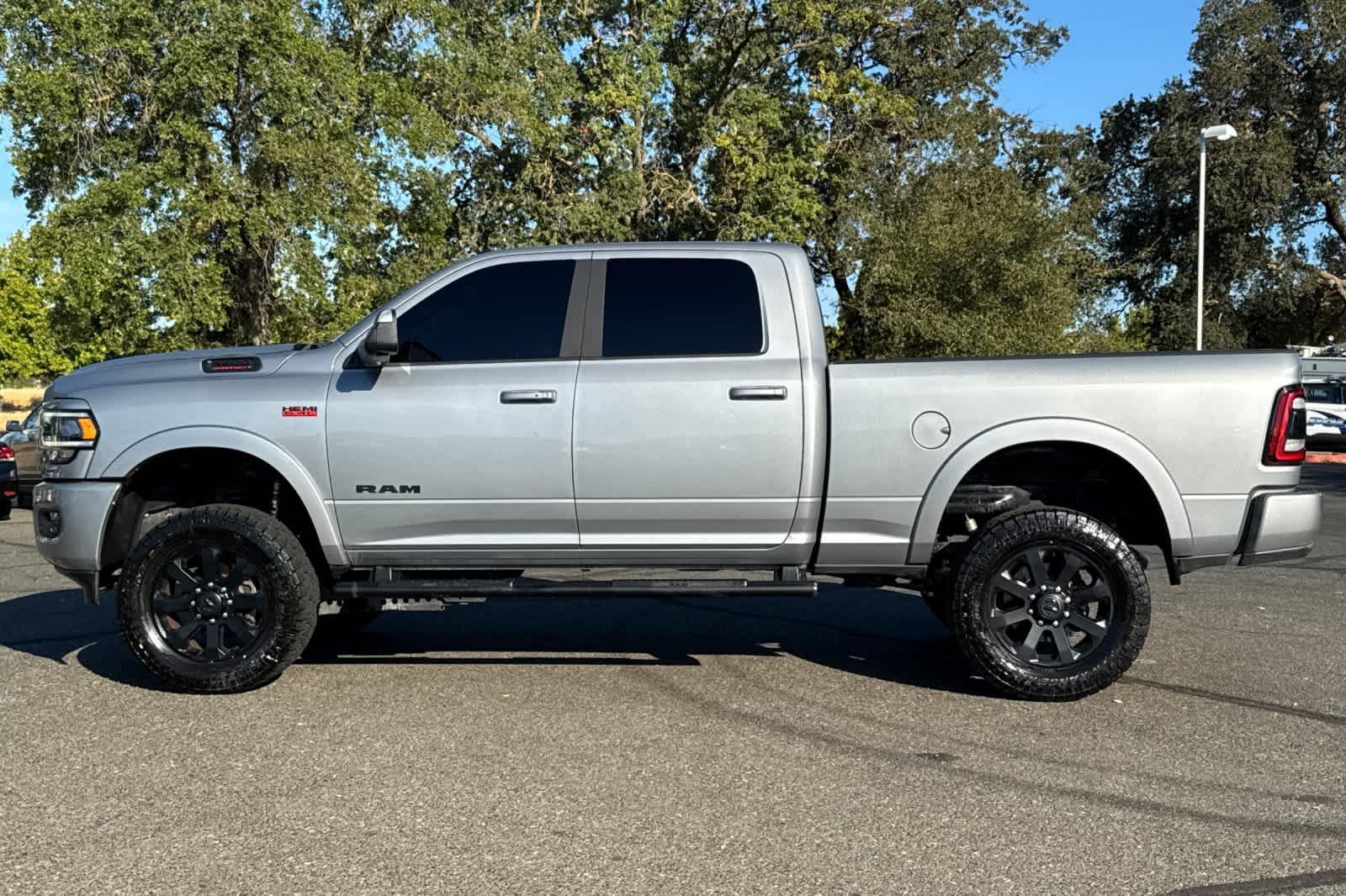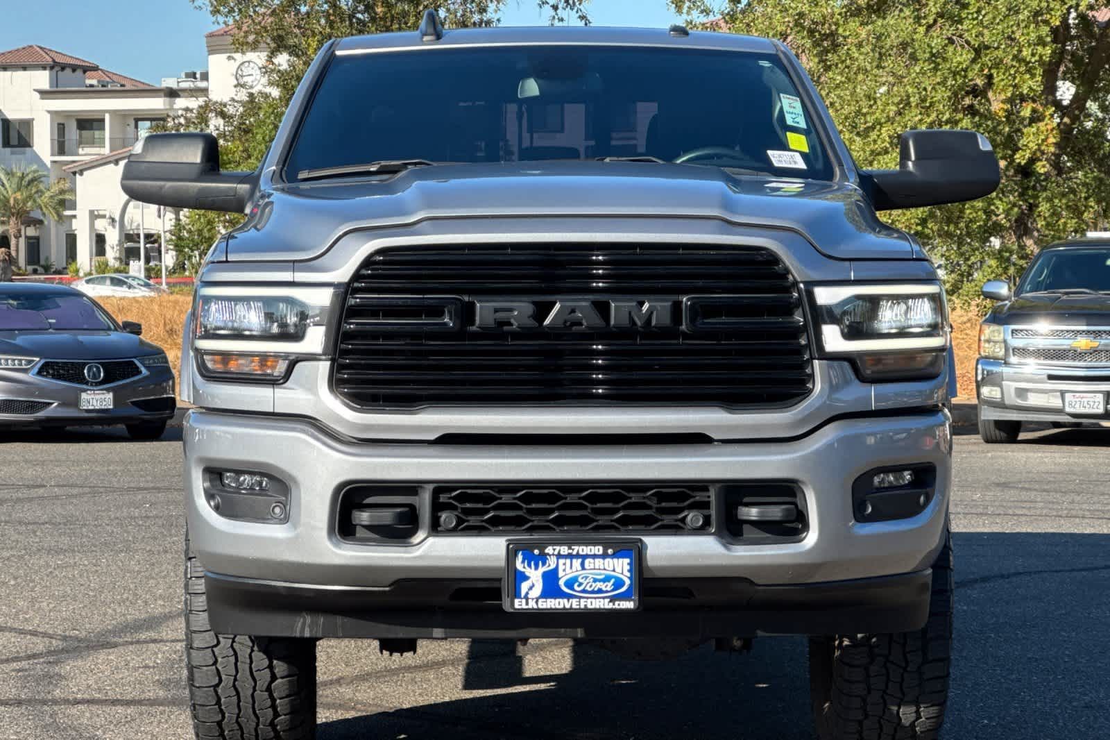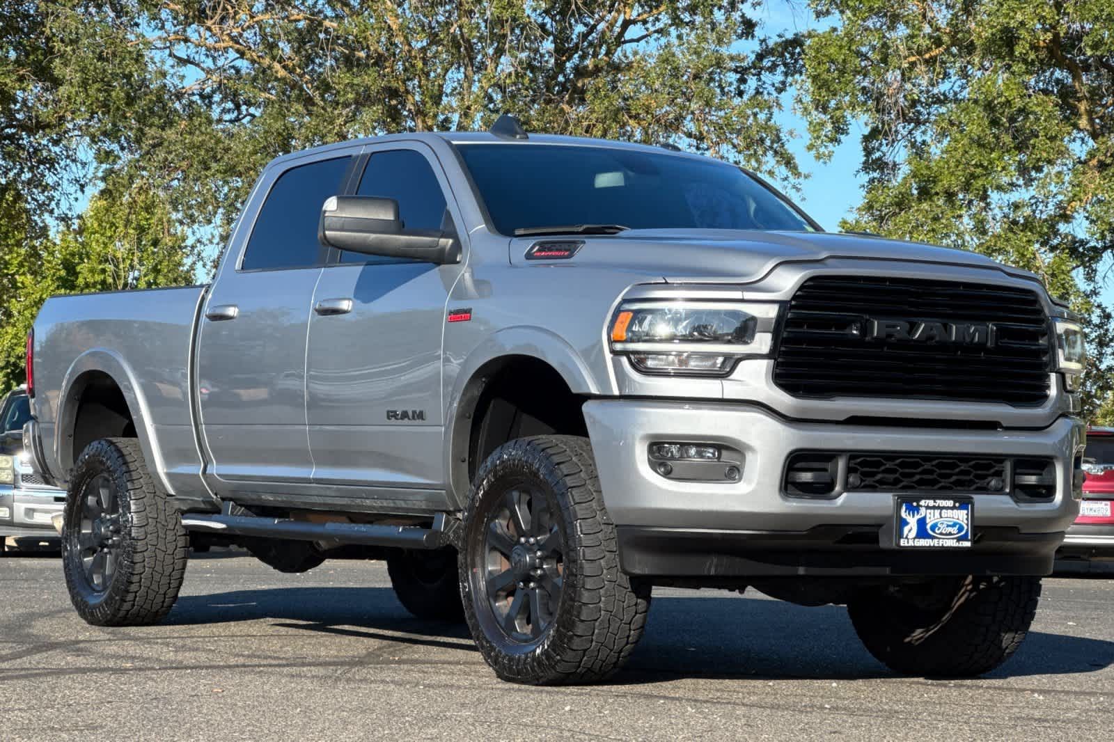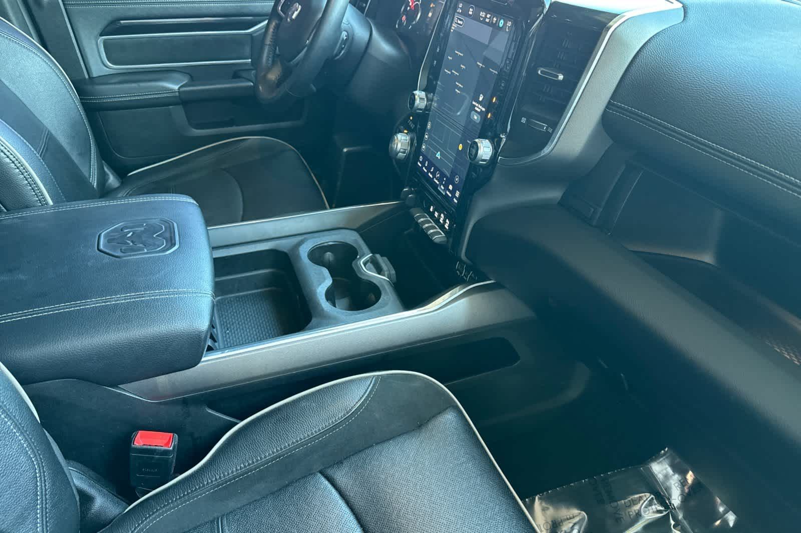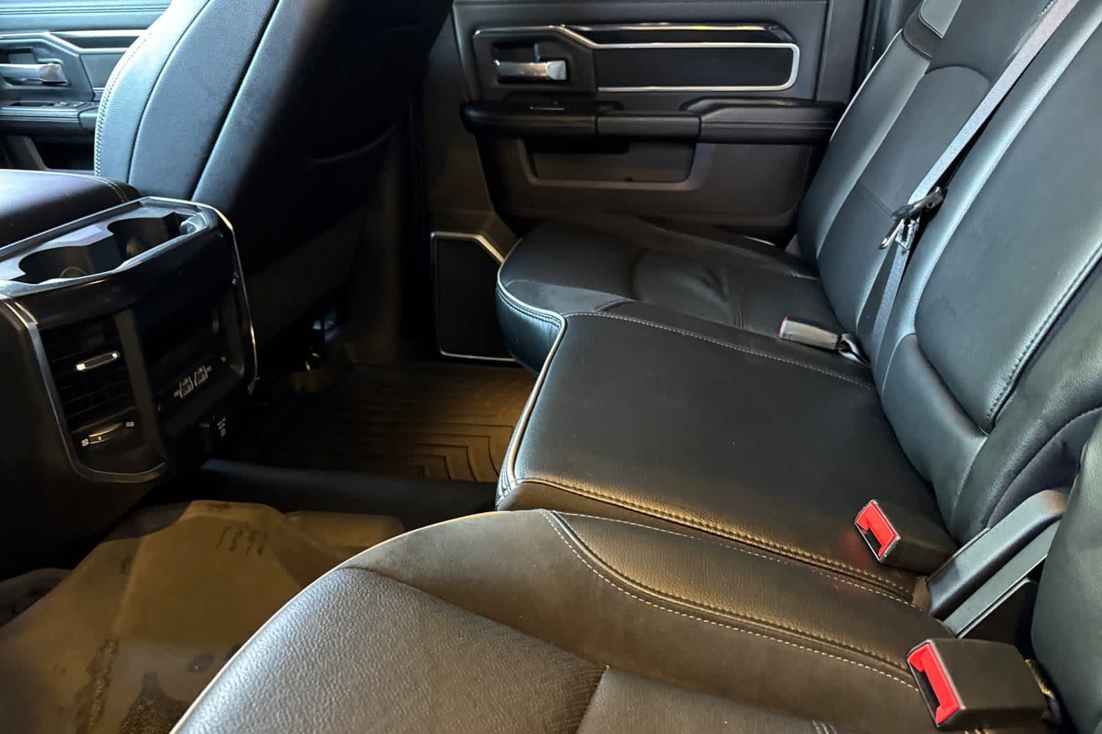 LARAMIE LEVEL B EQUIPMENT GROUP Mirror-Mounted Aux Reverse Lamps, Rain Sensitive Windshield Wipers, Power Adjustable Pedals w/Memory, Power Chrome Tow Mirrors w/Convex Spotter & Memory, Remote Tailgate Release, 17 Speaker harman/kardon Premium Sound, Auto High Beam Headlamp Control, Exterior Mirrors w/Memory, Heated Second Row Seats, Foam Bottle Insert (Door Trim Panel), 2nd Row In Floor Storage Bins, Radio/Driver Seat/Mirrors/Pedals Memory, Radio: Uconnect 5 Nav w/8.4 Display, Off-Road Information Pages, Disassociated Touchscreen Display, HD Radio, For Details, Visit DriveUconnect.com, For More Info, Call 800-643-2112, GPS Navigation, SiriusXM w/360L, All Radio Equipped Vehicles, Connected Travel & Traffic Services, All R1 High Radios, Alexa Built-In, Power Adjustable Convex Aux Mirrors, NIGHT EDITION Mirror-Mounted Aux Reverse Lamps, Black Ram Head Tailgate Badge, Wheels: 20 x 8.0 Black Painted Aluminum, Black Wheel Center Hub, Black Headlamp Bezels, Body Color Door Handles, Painted Front Bumper, Painted Rear Bumper, Tires: LT285/60R20E OWL On/Off Road, Black Exterior Truck Badging, Exterior Mirrors w/Memory, Gloss Black Grille Billets/Accents, Body Color Grille Surround, Black Interior Accents, Black Exterior Mirrors, Black Tail Lamp Bezels, Power Black Tow Mirrors w/Convex Spotter & Memory, Power Adjustable Convex Aux Mirrors, POWER SUNROOF, BLACK, LEATHER TRIMMED BUCKET SEATS Bucket Seats, High Back Seats, #1 Seat Foam Cushion, Folding Flat Load Floor Storage, Full Length Upgraded Floor Console, TRANSMISSION: 8-SPEED AUTO (8HP75-LCV) (STD), ENGINE: 6.4L V8 HEAVY DUTY HEMI MDS (STD).