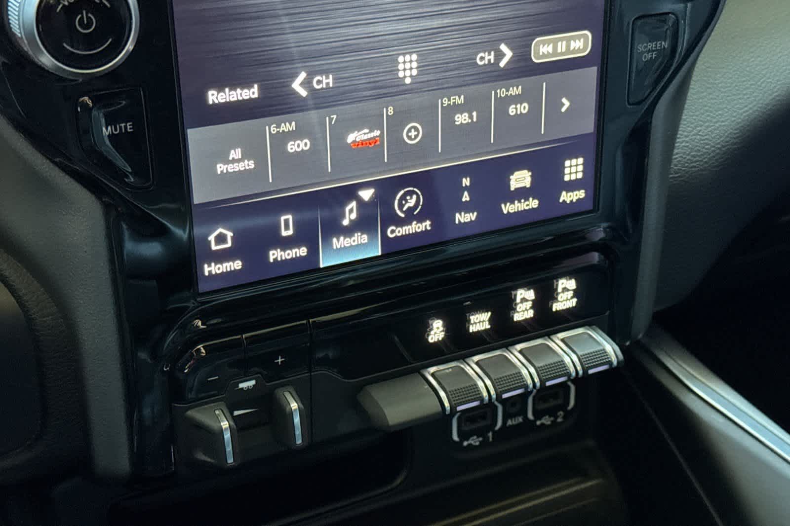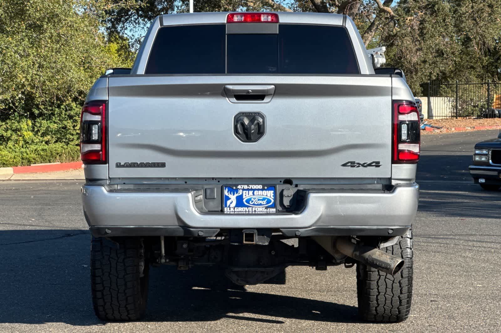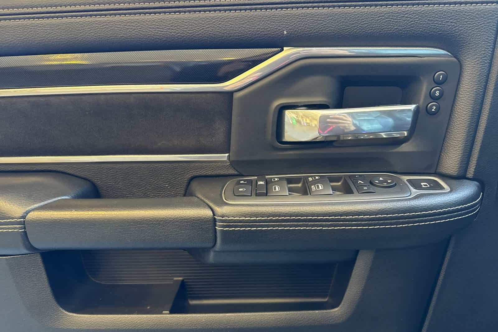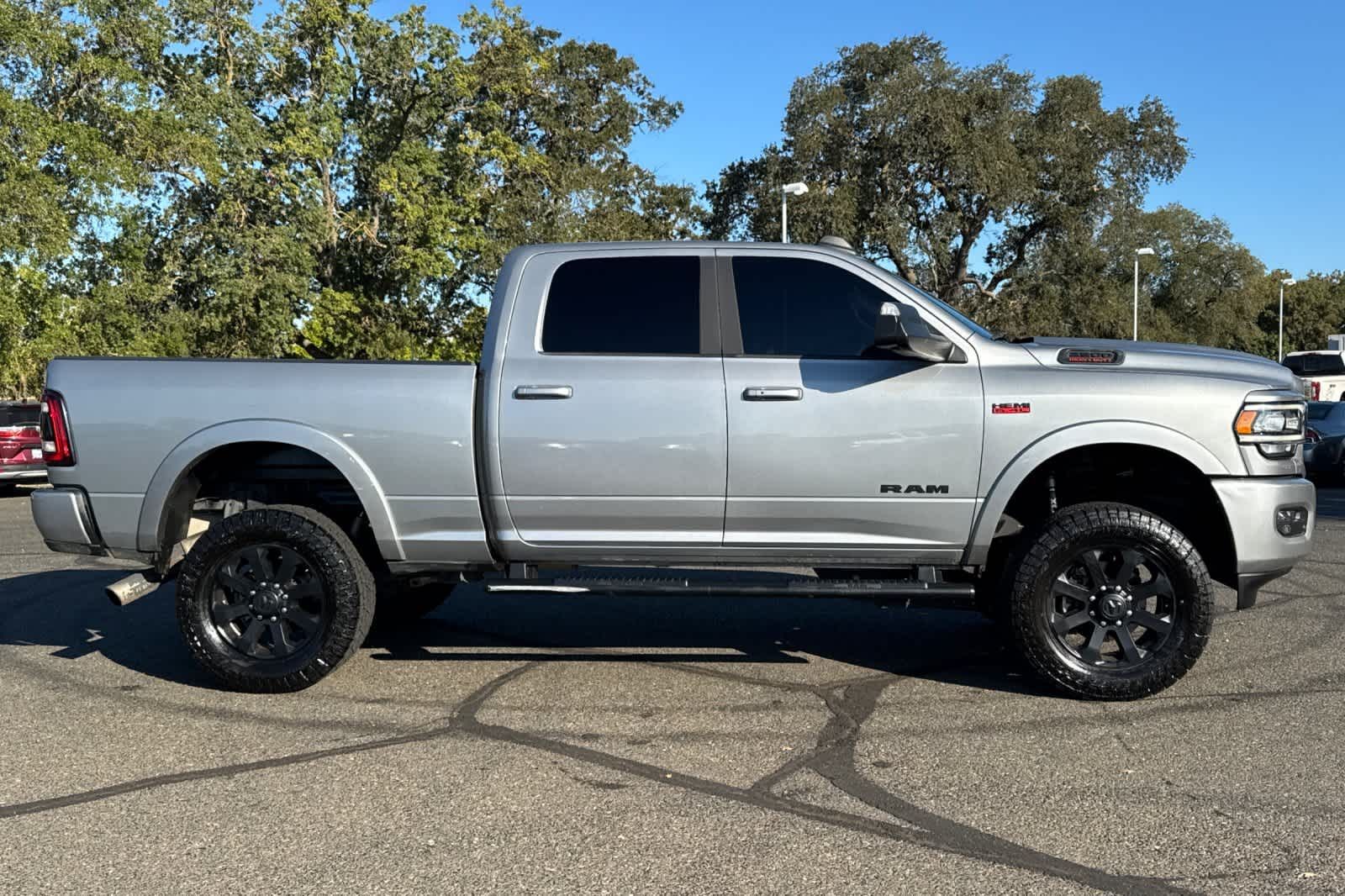 LARAMIE LEVEL B EQUIPMENT GROUP Mirror-Mounted Aux Reverse Lamps, Rain Sensitive Windshield Wipers, Power Adjustable Pedals w/Memory, Power Chrome Tow Mirrors w/Convex Spotter & Memory, Remote Tailgate Release, 17 Speaker harman/kardon Premium Sound, Auto High Beam Headlamp Control, Exterior Mirrors w/Memory, Heated Second Row Seats, Foam Bottle Insert (Door Trim Panel), 2nd Row In Floor Storage Bins, Radio/Driver Seat/Mirrors/Pedals Memory, Radio: Uconnect 5 Nav w/8.4 Display, Off-Road Information Pages, Disassociated Touchscreen Display, HD Radio, For Details, Visit DriveUconnect.com, For More Info, Call 800-643-2112, GPS Navigation, SiriusXM w/360L, All Radio Equipped Vehicles, Connected Travel & Traffic Services, All R1 High Radios, Alexa Built-In, Power Adjustable Convex Aux Mirrors, NIGHT EDITION Mirror-Mounted Aux Reverse Lamps, Black Ram Head Tailgate Badge, Wheels: 20 x 8.0 Black Painted Aluminum, Black Wheel Center Hub, Black Headlamp Bezels, Body Color Door Handles, Painted Front Bumper, Painted Rear Bumper, Tires: LT285/60R20E OWL On/Off Road, Black Exterior Truck Badging, Exterior Mirrors w/Memory, Gloss Black Grille Billets/Accents, Body Color Grille Surround, Black Interior Accents, Black Exterior Mirrors, Black Tail Lamp Bezels, Power Black Tow Mirrors w/Convex Spotter & Memory, Power Adjustable Convex Aux Mirrors, POWER SUNROOF, BLACK, LEATHER TRIMMED BUCKET SEATS Bucket Seats, High Back Seats, #1 Seat Foam Cushion, Folding Flat Load Floor Storage, Full Length Upgraded Floor Console, TRANSMISSION: 8-SPEED AUTO (8HP75-LCV) (STD), ENGINE: 6.4L V8 HEAVY DUTY HEMI MDS (STD).