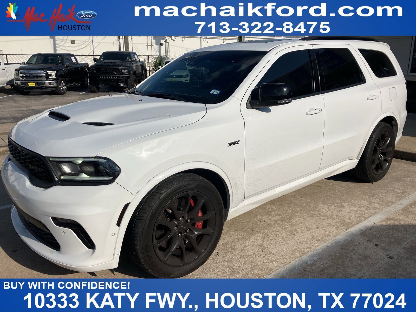 Thanks for Looking. White Knuckle Clearcoat 2023 Dodge Durango SRT 392 AWD 8-Speed Automatic SRT HEMI 6.4L V8 MDS One Owner Carfax, Durango SRT 392, 4D Sport Utility, SRT HEMI 6.4L V8 MDS, 8-Speed Automatic, AWD, White Knuckle Clearcoat, Demonic Red/Black w/High Performance Laguna Leather Seats, 1 USB Charging Port in Console, 12V Auxiliary Power Outlet In Console, 19 harman/kardon Amplified Speakers w/Subwoofer, 2 Pc Red Brembo Front Rotor Brakes, 2nd Row Console w/Armrest & Storage, 3rd Row Floor Mat & Full Console, 7 & 4 Pin Wiring Harness, 825 Watt Amplifier, Adaptive Cruise Control w/Stop, Advanced Brake Assist, Black Package, Black Roof Rails, Class IV Receiver Hitch, Eclipse Black Exhaust Tip, Forged Carbon Fiber Interior Accents, Full Speed Forward Collision Warning Plus, Gray Metallic Badges, High Performance Laguna Leather Seats, Illuminated Rear Cupholders, Integrated Roof Rail Crossbars, Lane Departure Warning Plus, Power Sunroof, Premium Instrument Panel, Quick Order Package 29N SRT 392 Premium, Red Seat Belts, Satin Black Dodge Tail Lamp Badge, Trailer Brake Control, Wheels: 20" x 10" Lights Out Aluminum.Recent Arrival!