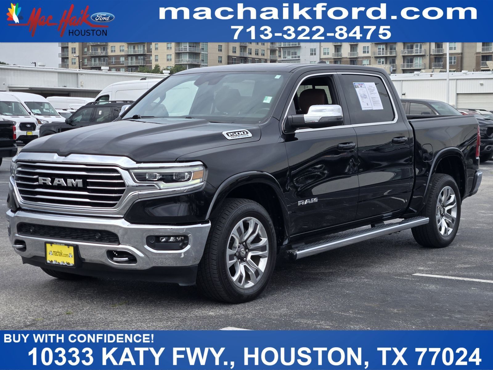 Quick Order Package 27K Longhorn, Trailer Tow Group (Trailer Brake Control, Trailer Light Check, Trailer Reverse Steering Control, and Trailer Tire Pressure Monitoring System), 1500 Limited, 4D Crew Cab, HEMI 5.7L V8 Multi Displacement VVT eTorque, 8-Speed Automatic, 4WD, Diamond Black Crystal Pearlcoat, Black/New Saddle w/Leather Trimmed Bucket Seats, Dome Dual LED Reading Lamp, Dual-Pane Panoramic Sunroof, LED Dome/Reading Lamp, #1 Seat Foam Cushion, 10 Speakers, 3 Rear Seat Head Restraints, 3.21 Rear Axle Ratio, 4 Way Front Headrests, 4-Wheel Disc Brakes, 48V Belt Starter Generator, ABS brakes, Adjustable pedals, Air Conditioning, Alloy wheels, AM/FM radio: SiriusXM with 360L, Anti-Spin Differential Rear Axle, Apple CarPlay/Android Auto, Audio memory, Auto High-beam Headlights, Auto-dimming door mirrors, Auto-dimming Rear-View mirror, Automatic temperature control, Brake assist, Bucket Seats, Bumpers: chrome, Chrome Exterior Mirrors, Compass, Delay-off headlights, Delete Spray In Bedliner, Driver door bin, Driver Seat Memory, Driver vanity mirror, Dual front impact airbags, Dual front side impact airbags, Electronic Stability Control, Exterior Mirrors Courtesy Lamps, Exterior Mirrors w/Heating Element, Exterior Mirrors w/Memory, Exterior Mirrors w/Supplemental Signals, Front anti-roll bar, Front Bucket Seats, Front Center Armrest w/Storage, Front dual zone A/C, Front fog lights, Front License Plate Bracket, Front reading lights, Front Seat Back Map Pockets, Front wheel independent suspension, Full Length Premium Floor Console, Fully automatic headlights, Garage door transmitter, Genuine wood console insert, Genuine wood dashboard insert, Genuine wood door panel insert, Heated door mirrors, Heated Front Seats, Heated front seats, Heated rear seats, Heated Second Row Seats, Heated Steering Wheel, Heated steering wheel, Illuminated entry, Leather steering wheel, Leather Trimmed Bucket Seats, Low tire pressure warning, Manufacturer's Statement of Origin, Memory seat, Navigation System, Occupant sensing airbag, Outside temperature display, Overhead airbag, Overhead console, Panic alarm, ParkView Rear Back-Up Camera, Passenger door bin, Passenger vanity mirror, Pedal memory, Power 4-Way Driver Lumbar Adjust, Power 4-Way Passenger Lumbar Adjust, Power 8-Way Driver & Passenger Seats, Power door mirrors, Power driver seat, Power passenger seat, Power steering, Power windows, Power-Folding Mirrors, Radio data system, Radio: Uconnect 5 Nav w/12.0" Display, Rain sensing wipers, Rear 60/40 Folding Split Recline Seat, Rear anti-roll bar, Rear seat center armrest, Rear step bumper, Rear window defroster, Remote keyless entry, Security system, Speed control, Split folding rear seat, Steering wheel mounted audio controls, Tachometer, Telescoping steering wheel, Tilt steering wheel, Traction control, Trip computer, Turn signal indicator mirrors, Variably intermittent wipers, Ventilated Front Seats, Ventilated front seats, Ventilated Rear Seats, Ventilated rear seats, Voltmeter, and Wheels: 20" x 9" Aluminum Painted/Polished.Why Buy From Mac Haik Ford Houston At Mac Haik Ford Houston, a family-owned and operated dealership proudly serving Houston for over 40 years, we make cars buy simple, transparent, and stress-free. Transparent Pricing, No hidden fees, just honest, upfront pricing Competitive Deals, Priced to compete with the best in the Texas market Easy Buying Process, Shop, get pre-approved, and value your trade online Huge Selection, New and Pre-owned and Certified vehicles ready to go Customer First, Friendly, no-pressure experience Service You Can Count On, We’re here long after the sale. Dealer charges a $225 Document Preparation Fee for processing paperwork related to the sale. This is not a government fee. Tax, title, license, and registration fees are additional.Diamond Black Crystal Pearlcoat2023Ram1500Limited4WD8-Speed AutomaticHEMI 5.7L V8 Multi Displacement VVT eTorqueClean Carfax, One Owner Carfax, 1500 Limit