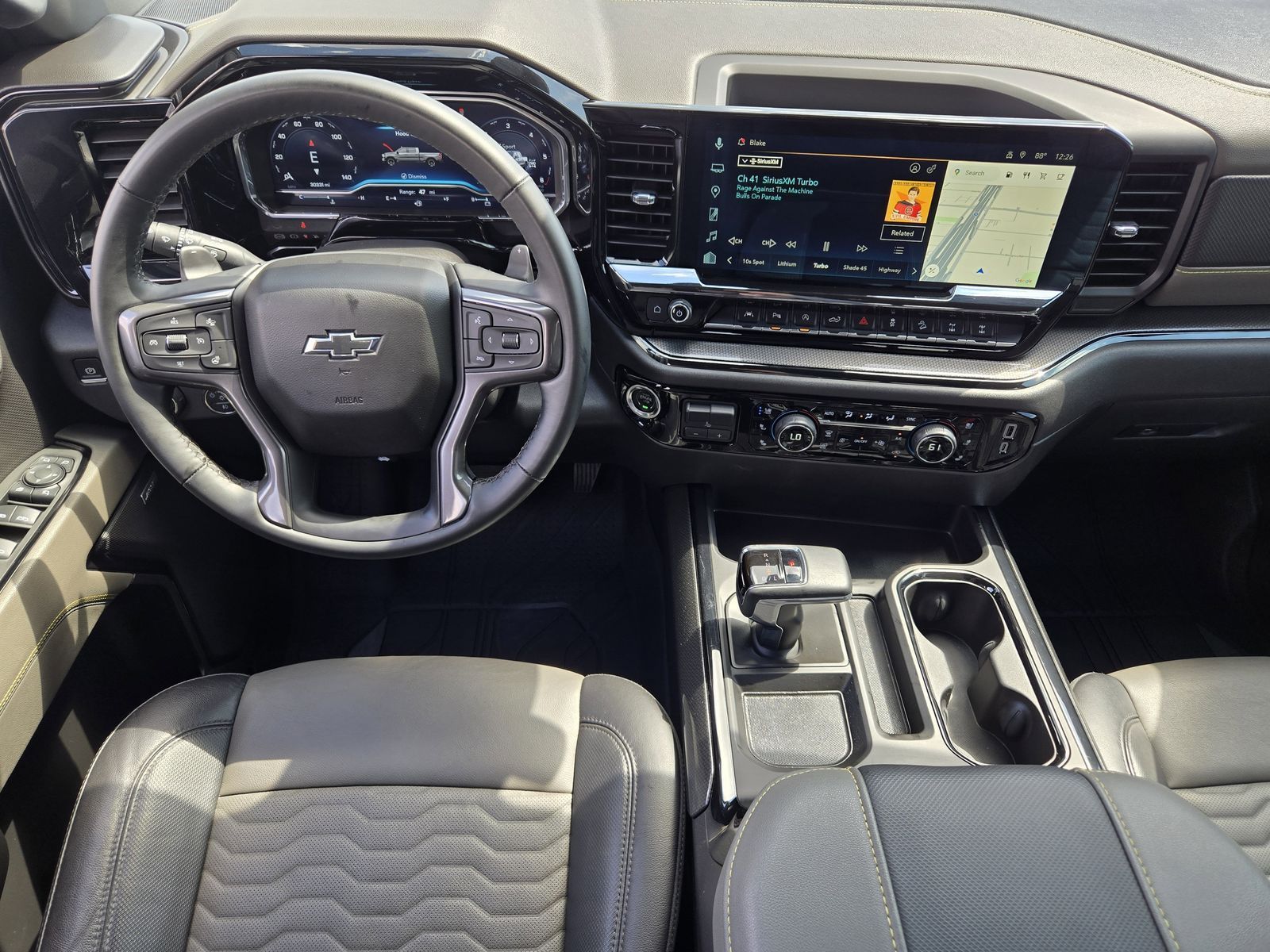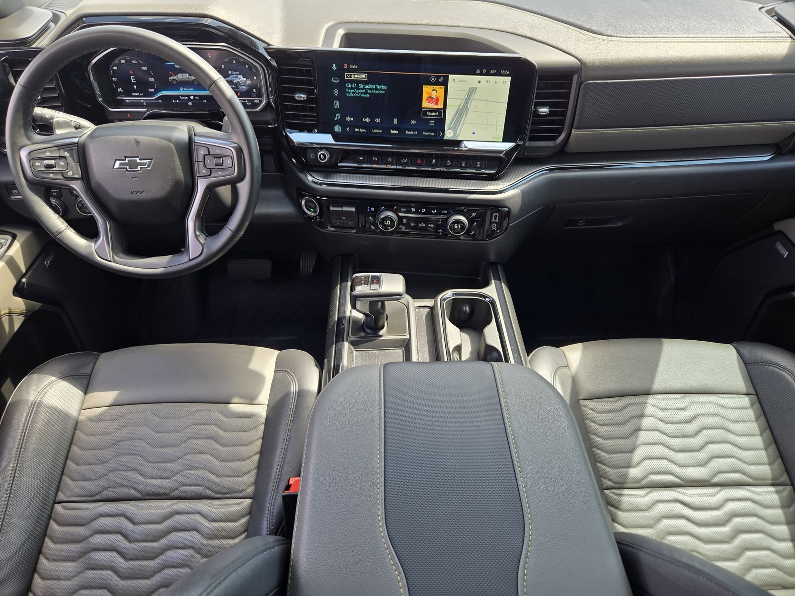 Preferred Equipment Group 3LT (10-Way Power Driver Seat w/Lumbar, 10-Way Power Passenger Seat Adjuster w/Lumbar, 12.3" Multicolor Reconfigurable Digital Display, 120-Volt Interior Power Outlet, 2 USB Data Ports, 2nd Row Heated Outboard Seats, All-Weather Floor Liner (LPO), Auto-Dimming Inside Rear-View Mirror, Bed View Camera, Bluetooth® For Phone, Chevytec Spray-On Black Bedliner, Color-Keyed Carpeting Floor Covering, Deep-Tinted Glass, Driver Memory, Dual Rear USB Ports (Charge Only), Electric Rear-Window Defogger, Electrical Steering Column Lock, Electronic Cruise Control, EZ Lift Power Lock & Release Tailgate, Floor Mounted Center Console, Front LED Fog Lamps, Front Rain-Sensing Wipers, HD Surround Vision, Heated Driver & Front Outboard Passenger Seats, Heated Steering Wheel, Heavy-Duty Air Filter, High Gloss Black Mirror Caps, Hill Descent Control, Hitch Guidance w/Hitch View, In-Vehicle Trailering System App, Integrated Trailer Brake Controller, Keyless Open & Start, LED Cargo Area Lighting, Manual Tilt/Telescoping Steering Column, OnStar & Chevrolet Connected Services Capable, Outside Heated Power-Adjustable Mirrors, Performance Red Recovery Hooks, Perimeter Lighting, Power Front Passenger Windows w/Express Up/Down, Power Front Windows w/Driver Express Up/Down, Power Rear Windows w/Express Down, Power Sliding Rear Window w/Rear Defogger, Rear Cross Traffic Braking, Rear Park Assist, Rear Pedestrian Alert, Rear Wheelhouse Liners, Remote Vehicle Starter System, Safety Alert Seat, SiriusXM w/360L, Standard Tailgate, Steering Wheel Audio Controls, Theft Deterrent System (Unauthorized Entry), Trailer Camera Provisions, Trailer Side Blind Zone Alert, Universal Home Remote, Ventilated Driver & Front Passenger Seats, Wrapped Steering Wheel, 120-Volt Bed Mounted Power Outlet, Chevrolet Connected Access Capable, and Wi-Fi Hot Spot Capable), Technology Package (15" Diagonal Multicolor Head-Up Display, Adaptive Cruise Control, Power Tilt & Telescoping Steering Column, and Rear Camera Mirror), Trailering Package (Hitch Guidance), Up-Level Rear Seat w/Storage Package, ZR2 Suspension Package, Silverado 1500 ZR2, 4D Crew Cab, EcoTec3 6.2L V8, 10-Speed Automatic, 4WD, Summit White, Jet Black/Graystone Leather, Multi-Flex Tailgate, Power Sunroof, Premium Bose 7-Speaker Sound System, Wheels: 18" x 8.5" Gloss Black, 170 Amp Alternator, 220 Amp Alternator, 3.23 Rear Axle Ratio, 4-Wheel Disc Brakes, 7 Speakers, 850 Cold-Cranking Amps Heavy-Duty Battery, ABS brakes, Air Conditioning, Alloy wheels, AM/FM radio: SiriusXM with 360L, Auto High-beam Headlights, Auto-dimming door mirrors, Auto-dimming Rear-View mirror, Automatic Emergency Braking, Automatic temperature control, Auxiliary External Transmission Oil Cooler, Block heater, Brake assist, Compass, Delay-off headlights, Driver door bin, Driver vanity mirror, Dual Active Exhaust, Dual Exhaust, Dual front impact airbags, Dual front side impact airbags, Electronic Stability Control, Electronic Transmission Range Selector Shifter, Engine Block Heater, External Engine Oil Cooler, Following Distance Indicator, Forward Collision Alert, Front anti-roll bar, Front Bucket Seats, Front Center Armrest, Front dual zone A/C, Front fog lights, Front License Plate Kit, Front Pedestrian Braking, Front reading lights, Front wheel independent suspension, Fully automatic headlights, Garage door transmitter, Heated door mirrors, Heated front seats, Heated rear seats, Heated steering wheel, Illuminated entry, IntelliBeam Automatic High Beam On/Off, Lane Keep Assist w/Lane Departure Warning, Low tire pressure warning, Memory seat, Occupant sensing airbag, Off-Road High Clearance Steps (LPO), Outside temperature display, Overhead airbag, Overhead console, Panic alarm, Passenger door bin, Passenger vanity mirror, Perforated Leather Seat Trim, Power door mirrors, Power driver seat, Power passenger seat, Power steering, Power windows, Premium audio system: Chevrolet Infotainment 3 Premium, Radio data system, Radio: