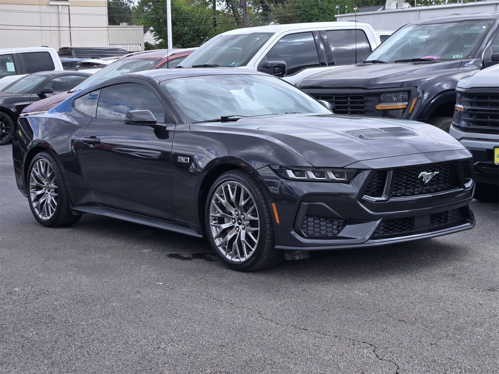 Thanks for Looking. Dark Matter Gray Metallic 2024 Ford Mustang GT Premium RWD 10-Speed Automatic 5.0L V8 Ti-VCT Mustang GT Premium, 2D Coupe, 5.0L V8 Ti-VCT, RWD, Dark Matter Gray Metallic, Black Onyx w/Leather-Trimmed Bucket Seats w/Color Accents or Leather-Trimmed Bucket Seats, 20" Wheels, B&O Sound System by Bang & Olufsen, Equipment Group 401A High Package, Ford Co-Pilot360 Assist+, Illuminated Door-Sill Scuff Plates, Leather-Trimmed Bucket Seats w/Color Accents, Memory Driver Seat & Mirrors, Security Package, Wheels: 20" x 9" Premium-Painted Aluminum.Recent Arrival! Odometer is 6769 miles below market average!