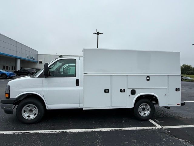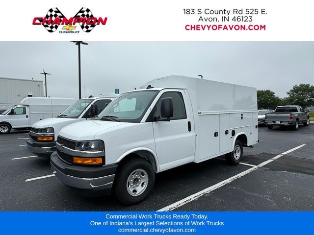 2025 Chevrolet Express 3500 Regular Cab RWD Knapheide Service Utility Van for Sale in Avon, INPut a job-ready KUV into your fleet with this new 2025 Chevrolet Express 3500 Regular Cab RWD Knapheide Service Utility Van from Champion Chevrolet of Avon. Built for contractors, service technicians, municipal departments, utility crews, maintenance teams, and commercial fleet operators, this Chevrolet Express 3500 combines the familiar drivability of a van front end with the secure exterior storage and enclosed cargo capability of a Knapheide utility body. Powered by a proven 6.6L gas V8 and paired with an automatic transmission, this rear-wheel drive service utility van is designed for dependable commercial use, straightforward maintenance, and practical day-to-day operation. With a 9,900-lb GVWR, 139" wheelbase, 80" cab-to-axle, hydraulic brakes, and Work Van trim, it gives your business a strong foundation for field service, repair work, parts delivery, and contractor use.This unit is equipped with a Knapheide KUV129SL steel Service Utility Van body built for secure storage, exterior compartment access, and organized mobile work capability. Body specs include 129.25" body length, 83" body width, 78" body height, 63.8" inside body height, 14.5" compartment depth, steel floor, and a body weight of 1,906 lbs. The KUV layout provides flat-panel advertising space on both sides, making it a strong fit for businesses that want rolling brand visibility while keeping tools, equipment, and parts organized. It also includes an ABS cab partition with sliding door and window, double-panel galvanneal rear doors with rivetless latch, master locking system, and standard adjustable divider shelving with standard shelves and dividers. Two rear access conduit-storage doors with master locks help carry longer materials without cluttering the main cargo area.This Knapheide KUV is built for real worksite functionality. It includes two LED interior dome lights, surface-mounted exterior lights with rear strobe light activation, a Class V receiver hitch with 2.5" to 2" receiver sleeve, and electric brake control for added towing support. That combination makes this Express 3500 service utility van a strong fit for electricians, plumbers, HVAC companies, telecom crews, locksmiths, general maintenance teams, municipal service departments, and field technicians who need a more organized and accessible alternative to a standard empty cargo van. A true KUV helps crews access tools and parts from exterior compartments instead of crawling through the back of a cargo van, which can save time and make the truck more productive throughout the day.The Regular Cab layout keeps this 2025 Chevrolet Express 3500 straightforward and efficient while still providing seating for three. Inside the cab, this truck includes air conditioning, power windows, remote keyless entry, cruise control, outside temperature display, power steering, exterior parking camera, inside rearview mirror with rear vision camera display, theft alarm notification, tilt steering wheel, trip computer, voltmeter, reclining high-back bucket seats with inboard armrests, engine cover console with swing-out storage bin, and AM/FM stereo with MP3 player and digital clock. Additional features include electronic stability control, traction control, ABS brakes, heavy-duty locking rear differential, chrome appearance package, chrome grille, front chrome bumper with step pad, full-size 16" painted steel wheels, and trailering wire harness.If you have been searching for a Chevrolet Express 3500 KUV for sale in Indiana, a Knapheide service utility van near Indianapolis, an enclosed utility body truck in Avon, or a gas-powered commercial service van ready for work, this unit deserves a serious look. Contact Champion Chevrolet of Avon for avai