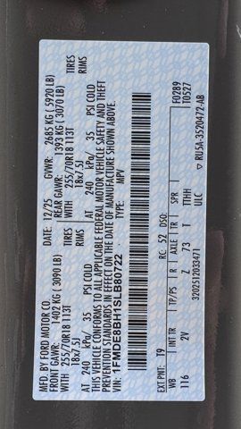 Vin: 1FMDE8BH1SLB80722