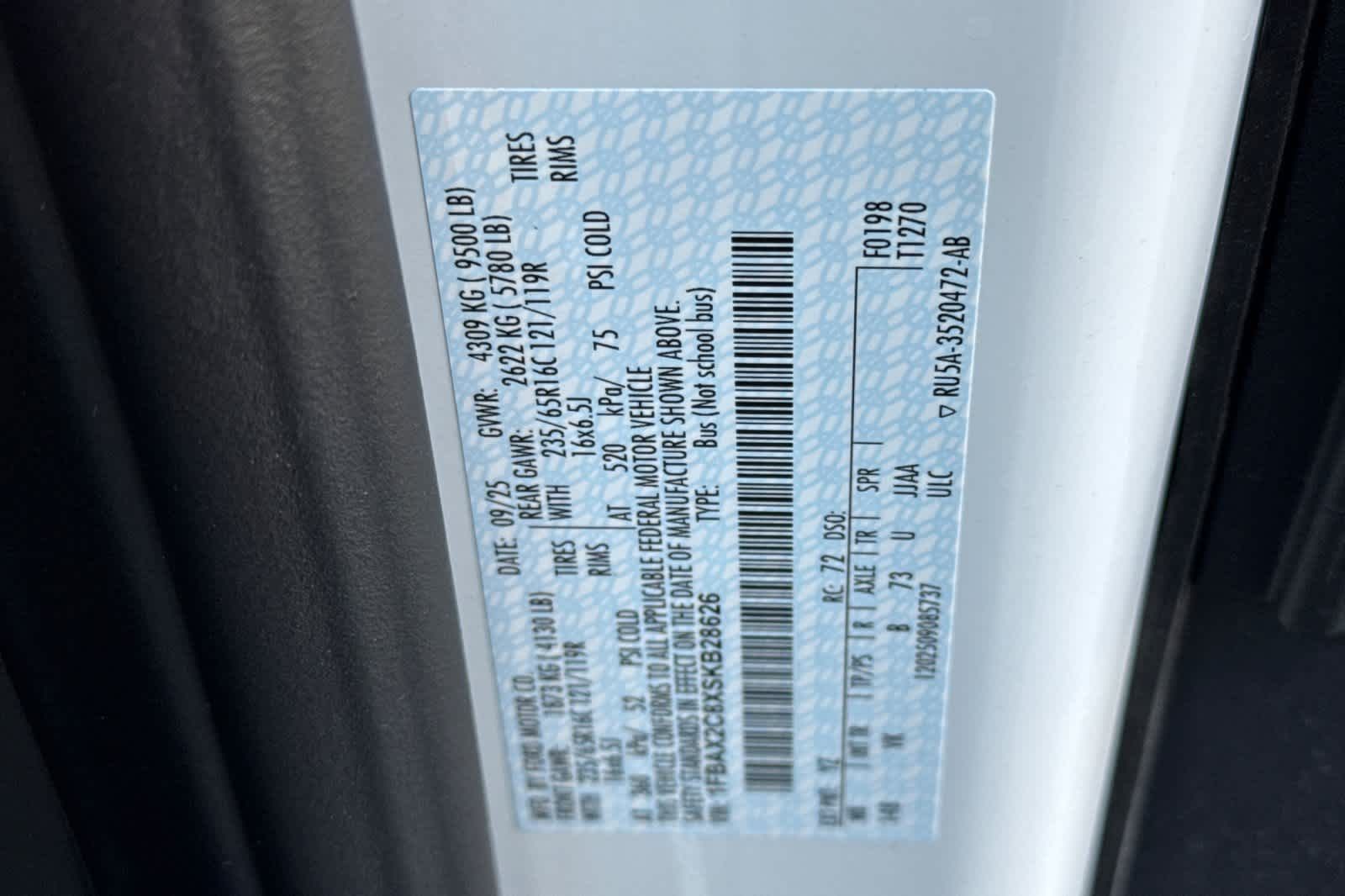 Vin: 1FBAX2C8XSKB28626