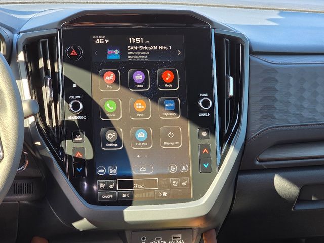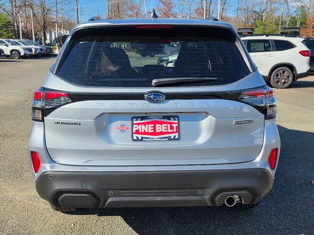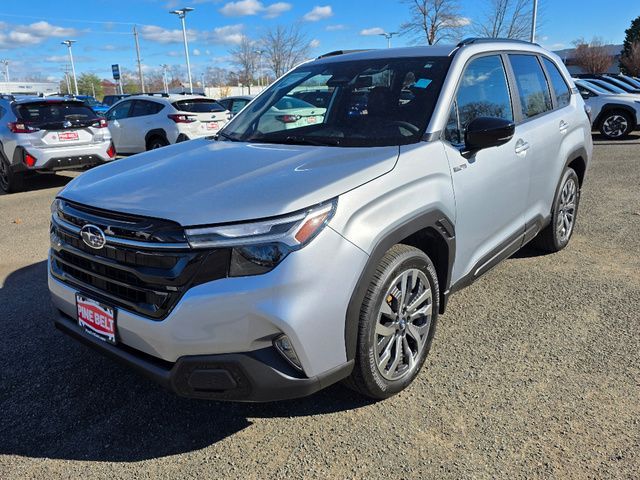 Stock Number: 25S0015, VIN Number: JF2SLSTD7SH434562, Style Name: AWD Touring Hybrid 4Dr Crossover, Make: Subaru, Model: Forester, Model Year: 2025, Type: Wagon, Vehicle Trim: Touring, Exterior Color: Silver, Body Type: Wagon, MPG Automatic City: 35, MPG Automatic Highway: 34, Engine Description: 2.5L 4-Cylinder DOHC 16V, Fuel Type: Hybrid-Electric, Fuel Induction: DI, Valves Per Cylinder: 4, Aspiration: Naturally Aspirated, 4WD Type: Full Time, Transmission: Lineartronic CVT, Wheels Rims: Painted Aluminum Alloy, Drive Train Type: AWD, Independent Suspension: Four-Wheel, Stabilizer Bar: Front And Rear, Clock, Compass, External Temp, Heads up Display, Low Fuel Level, Tachometer, Front Wipers: Variable Intermittent, Rain Sensing, Privacy Glass, Rear Defogger, Rear Wiper: Intermittent, Auto-On In Reverse, With Washer, Sunroof: One-Touch Open/Close, Sliding Sunshade, Anti-Trapping, Power Panoramic, Antenna Type: Diversity, Mast, Audio System: AM/FM, HD Radio, Voice Operated, Touch Screen Display, Premium Brand: Harman/Kardon, Speakers: 10, Drivers: Heated, Drivers Height: Power, Drivers Lumbar: Power, Drivers Power: 10, Drivers Ventilated, Passenger: Heated, Passenger Height: Power, Passenger Power: 8, Passenger Ventilated, Seating Capacity: 5, Front Seat Type: Bucket, Upholstery: Leather-Trimmed, Center Armrest, Folding: Split, One-Touch Fold Flat, Heated, Center Console: Front Console With Armrest And Storage, Illuminated, Organizer Tray, Cupholders: Front, Rear, Overhead Console: Front, Power Outlets: 12V Cargo Area, 12V Front, USB Front, USB-C Front, USB Rear, USB-C Rear, Seatback Storage, Steering Adjustment: Tilt And Telescopic, Steering Power: Variable/Speed-Proportional, Steering Wheel Control: Audio, Cruise Control, Phone, Multi-Function, Paddle Shifter, Voice Control, Auto Dimming Mirrors, Power Mirrors, Reverse Tilt Mirror, Power Door Locks: Anti-Lockout, Auto-Locking, Windows: Power Windows, Navigation System: Touch Screen Display, Voice Operated, Memory Card, Satellite Communication: Voice Guided Directions, Memory Features Exterior Mirrors, Memory Features Number of Drivers: 2 Driver, Air Conditioning: Automatic Climate Control, Air Filtration, Trunk Lights, Center Console Trim: Leatherette, Dash Trim: Leatherette, Door Trim: Leatherette, Mats: Rear, Front, Reading Lights: Front, Rear, Shift Knob: Leather, Steering Wheel Trim: Leatherette, Vanity Mirrors: Dual Illuminating, Bumpers: Body-Color, NHTSA Passenger Grade: Excellent, NHTSA Driver Grade: Excellent, NHTSA Side Impact Front Grade: Excellent, NHTSA Side Impact Back Grade: Excellent, NHTSA Roll Over Resistance Rating: Good, ABS: 4-Wheel, Anti Theft System: Alarm, Vehicle Immobilizer, Brake Assist, Safety Locks, Cornering Lights, Daytime Running Light, Fog Lights: LED, Headlights Auto Delay, Front Headrests: 2, Adjustable, Rear Headrests: 3, Adjustable, Safety Signal Mirrors, Safety Stability Control, Driver and Passenger Airbag, Side Airbag, Stability Control, Front Head Room: 40.0 Inches, Front Hip Room: 54.7 Inches, Front Shoulder Room: 57.7 Inches, Front Leg Room: 43.3 Inches, Rear Head Room: 37.7 Inches, Rear Hip Room: 53.7 Inches, Rear Leg Room: 39.4 Inches, Rear Shoulder Room: 56.7 Inches, Luggage Capacity: 27.5 Cu.Ft., Maximum Seating: 5, Length: 183.3 Inches, Width: 81.2 Inches, Height: 68.1 Inches, Wheelbase: 105.1 Inches, Ground Clearance: 8.7 Inches, Curb Weight: 3946 Lbs., Interior Color: Touring Brown