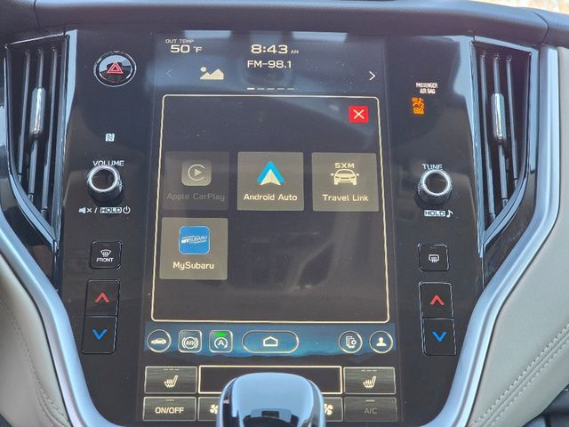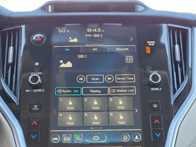 Stock Number: R277914, VIN Number: 4S4BTGND2S3277914, Style Name: AWD Limited XT 4Dr Crossover, Make: Subaru, Model: Outback, Model Year: 2025, Type: Wagon, Vehicle Trim: Limited XT, Exterior Color: Black, Body Type: Wagon, Interior Color: Ivory, MPG Automatic City: 22, MPG Automatic Highway: 29, Engine Description: 2.4L DOHC, Fuel Type: Gasoline, Fuel Induction: DI, Valves Per Cylinder: 4, Aspiration: Turbocharged, 4WD Type: Full Time, Transmission: CVT Lineartronic, Wheels Rims: Aluminum Alloy, Wheels Spare Rim Type: Steel, Drive Train Type: AWD, Independent Suspension: Four-Wheel, Stabilizer Bar: Front And Rear, Clock, Compass, External Temp, Low Fuel Level, Tachometer, Front Wipers: Variable Intermittent, Privacy Glass, Rear Defogger, Rear Wiper: Intermittent, Auto-On In Reverse, With Washer, Sunroof: One-Touch Open/Close, Sliding Sunshade, Anti-Trapping, Power Glass, Tilt/Slide, Antenna Type: Diversity, Mast, Audio System: AM/FM, HD Radio, Voice Operated, Touch Screen Display, Premium Brand: Harman/Kardon, Speakers: 11, Drivers: Heated, Drivers Height: Power, Drivers Lumbar: Power, Drivers Power: 12, Passenger: Heated, Passenger Height: Power, Passenger Power: 8, Seating Capacity: 5, Front Seat Type: Bucket, Upholstery: Leather-Trimmed, Center Armrest, Folding: Split, One-Touch Fold Flat, Heated, Center Console: Front Console With Armrest And Storage, Illuminated, Cupholders: Front, Rear, Overhead Console: Front, Power Outlets: 12V Cargo Area, 12V Rear, 12V Front, USB Front, USB-C Front, USB Rear, USB-C Rear, Seatback Storage, Steering Adjustment: Tilt And Telescopic, Steering Power: Variable/Speed-Proportional, Steering Wheel Control: Audio, Cruise Control, Phone, Multi-Function, Paddle Shifter, Voice Control, Universal Remote Transmitter: Homelink - Garage Door Opener, Auto Dimming Mirrors, Power Mirrors, Reverse Tilt Mirror, Power Door Locks: Anti-Lockout, Auto-Locking, Windows: Power Windows, Navigation System: Hard Drive, Touch Screen Display, Voice Operated, Memory Card, Satellite Communication: Voice Guided Directions, Memory Features Number Of Drivers: 2 Driver, Air Conditioning: Automatic Climate Control, Air Filtration, Trunk Lights, Center Console Trim: Leatherette, Dash Trim: Leatherette, Door Trim: Leatherette, Metallic, Mats: Rear, Front, Reading Lights: Front, Rear, Shift Knob: Leather, Steering Wheel Trim: Leather, Vanity Mirrors: Dual Illuminating, Bumpers: Silver, NHTSA Passenger Grade: Good, NHTSA Driver Grade: Excellent, NHTSA Side Impact Front Grade: Excellent, NHTSA Side Impact Back Grade: Excellent, NHTSA Roll Over Resistance Rating: Good, ABS: 4-Wheel, Anti Theft System: Alarm, Vehicle Immobilizer, Brake Assist, Safety Locks, Cornering Lights, Daytime Running Light: LED, Fog Lights: LED, Headlights Auto Delay, Front Headrests: 2, Adjustable, Rear Headrests: 3, Adjustable, Safety Signal Mirrors, Safety Stability Control, Driver And Passenger Airbag, Side Airbag, Stability Control, Front Head Room: 39.1 Inches, Front Hip Room: 55.5 Inches, Front Shoulder Room: 58.1 Inches, Front Leg Room: 42.8 Inches, Rear Head Room: 39.1 Inches, Rear Hip Room: 54.8 Inches, Rear Leg Room: 39.5 Inches, Rear Shoulder Room: 57.4 Inches, Luggage Capacity: 32.6 Cu.Ft., Maximum Seating: 5, Length: 191.1 Inches, Width: 82.0 Inches, Height: 66.4 Inches, Wheelbase: 108.1 Inches, Ground Clearance: 8.7 Inches, Curb Weight: 3931 Lbs.