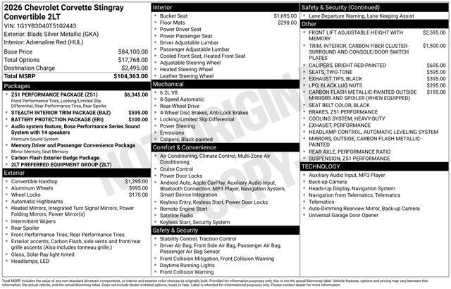 Bluetooth, Hands-Free connection, Leather Seats, Keyless Entry, Backup Camera, Heated and Cooled Seats, Premium Wheels, High Performance Tires.Tax, title, license and $249.00 document preparation fee are extra. Pricing will not include additional installed accessories. Not available with special finance or lease offers. We make every reasonable effort possible to present information and pricing that is true and accurate. Some information provided may come from third party sources. To ensure your complete satisfaction, please verify the accuracy prior to your purchase. It is the responsibility of the consumer to verify the accuracy of information listed.