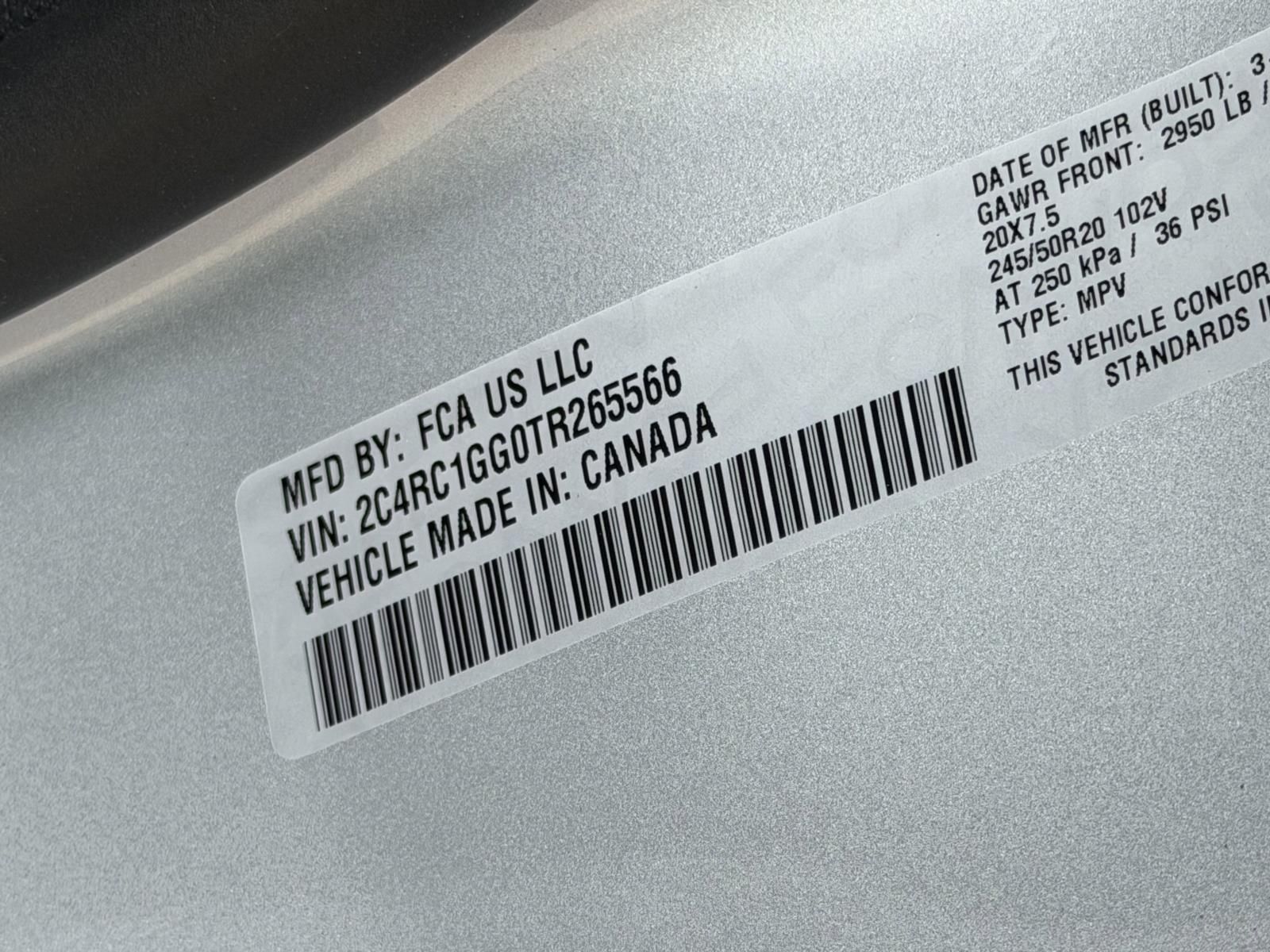 Vin: 2C4RC1GG0TR265566
