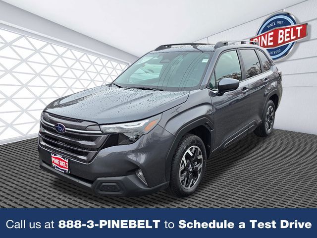Stock Number: 007933, VIN Number: 4S4SLDD61T3007933, Style Name: AWD Premium 4Dr Crossover, Make: Subaru, Model: Forester, Model Year: 2026, Type: Wagon, Vehicle Trim: Premium, Body Type: Wagon, MPG Automatic City: 26, MPG Automatic Highway: 33, Engine Description: 2.5L 4-Cylinder DOHC 16V, Fuel Type: Gasoline, Fuel Induction: DI, Valves Per Cylinder: 4, Aspiration: Naturally Aspirated, 4WD Type: Full Time, Transmission: Lineartronic CVT, Wheels Rims: Painted Aluminum Alloy, Wheels Spare Rim Type: Steel, Drive Train Type: AWD, Independent Suspension: Four-Wheel, Stabilizer Bar: Front And Rear, Clock, External Temp, Low Fuel Level, Tachometer, Front Wipers: Variable Intermittent, Privacy Glass, Rear Defogger, Rear Wiper: Intermittent, Auto-On In Reverse, With Washer, Sunroof: One-Touch Open/Close, Sliding Sunshade, Anti-Trapping, Power Panoramic, Antenna Type: Diversity, Mast, Audio System: AM/FM, HD Radio, Voice Operated, Touch Screen Display, Speakers: 6, Drivers: Heated, Drivers Height: Power, Drivers Lumbar: Power, Drivers Power: 10, Passenger: Heated, Seating Capacity: 5, Front Seat Type: Bucket, Upholstery: Premium Cloth, Center Armrest, Folding: Split, Flat, Center Console: Front Console With Armrest And Storage, Illuminated, Organizer Tray, Cupholders: Front, Rear, Overhead Console: Front, Power Outlets: 12V Cargo Area, 12V Front, USB Front, USB-C Front, USB Rear, USB-C Rear, Seatback Storage, Steering Adjustment: Tilt And Telescopic, Steering Power: Variable/Speed-Proportional, Steering Wheel Control: Audio, Cruise Control, Phone, Multi-Function, Voice Control, Power Mirrors, Power Door Locks: Anti-Lockout, Auto-Locking, Windows: Power Windows, Air Conditioning: Automatic Climate Control, Air Filtration, Trunk Lights, Center Console Trim: Leatherette, Metallic, Dash Trim: Leatherette, Door Trim: Cloth, Leatherette, Mats: Rear, Front, Reading Lights: Front, Rear, Shift Knob: Urethane, Steering Wheel Trim: Leather, Vanity Mirrors: Dual Illuminating, Bumpers: Body-Color, ABS: 4-Wheel, Anti Theft System: Alarm, Vehicle Immobilizer, Brake Assist, Safety Locks, Cornering Lights, Daytime Running Light, Fog Lights: LED, Headlights Auto Delay, Front Headrests: 2, Adjustable, Rear Headrests: 3, Adjustable, Safety Stability Control, Driver and Passenger Airbag, Side Airbag, Stability Control, Front Head Room: 40.0 Inches, Front Hip Room: 54.7 Inches, Front Shoulder Room: 57.7 Inches, Front Leg Room: 43.3 Inches, Rear Head Room: 37.7 Inches, Rear Hip Room: 53.7 Inches, Rear Leg Room: 39.4 Inches, Rear Shoulder Room: 56.7 Inches, Luggage Capacity: 27.5 Cu.Ft., Maximum Seating: 5, Length: 183.3 Inches, Width: 81.2 Inches, Height: 68.1 Inches, Wheelbase: 105.1 Inches, Ground Clearance: 8.7 Inches, Curb Weight: 3569 Lbs., Interior Color: Gray, Exterior Color: Gray