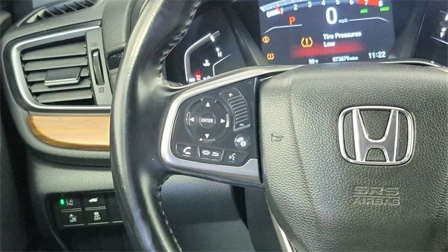 ** Alloy Wheels / Premium Wheels, ** Apple CarPlay / Android Auto, ** Backup Camera / Parking Sensors, ** Bluetooth, Hands-Free, ** Brake Assist, ** Cruise Control, ** Keyless Entry, ** Premium Sound System / Premium Audio, ** Satellite Radio Capable, ** Security System, ** Stability Control, ** Steering Wheel Controls, ** USB Port, AWD, 18" Alloy Wheels, 4-Wheel Disc Brakes, 5.64 Axle Ratio, 9 Speakers, ABS brakes, Air Conditioning, Alloy wheels, AM/FM radio: SiriusXM, Apple CarPlay/Android Auto, Auto High-beam Headlights, Auto-dimming Rear-View mirror, Automatic temperature control, Blind Spot Information (BSI) System warning, Brake assist, Bumpers: body-color, Compass, Delay-off headlights, Driver door bin, Driver vanity mirror, Dual front impact airbags, Dual front side impact airbags, Electronic Stability Control, Exterior Parking Camera Rear, Four wheel independent suspension, Front anti-roll bar, Front Bucket Seats, Front Center Armrest, Front dual zone A/C, Front fog lights, Front reading lights, Fully automatic headlights, Garage door transmitter: HomeLink, Heated door mirrors, Heated Front Bucket Seats, Heated front seats, Illuminated entry, Leather Seat Trim, Leather Shift Knob, Low tire pressure warning, Memory seat, Navigation System, Occupant sensing airbag, Outside temperature display, Overhead airbag, Overhead console, Panic alarm, Passenger door bin, Passenger vanity mirror, Power door mirrors, Power driver seat, Power Liftgate, Power moonroof, Power passenger seat, Power steering, Power windows, Radio data system, Radio: AM/FM/HD/SiriusXM Audio System, Rain sensing wipers, Rear anti-roll bar, Rear seat center armrest, Rear window defroster, Rear window wiper, Remote keyless entry, Roof rack: rails only, Security system, Speed control, Speed-sensing steering, Speed-Sensitive Wipers, Split folding rear seat, Spoiler, Steering wheel mounted audio controls, Tachometer, Telescoping steering wheel, Tilt steering wheel, Traction control, Trip computer, Turn signal indicator mirrors, Variably intermittent wipers, AWD.Recent Arrival!2018 Honda CR-V Touring 4D Sport Utility 1.5L I4 DOHC 16V AWD CVTClay Cooley Auto Group proudly serves pre-owned car and truck buyers from Dallas, Fort Worth, Arlington, Richardson, Mesquite, Lewisville, Plano, Irving, Park Cities, Rockwall, and all surrounding areas throughout the Metroplex! . Clay Cooley Auto Group is the home of the "Clay Cooley Family Guarantee" and offers a 3-DAY MONEY BACK GUARANTEE which means you can return the brand new vehicle to us within 3-DAYS or up to 150 miles and Clay Cooley gives you all your money back, guaranteed. "Clay Cooley Family Guarantee Program" also offers a 7-DAY VEHICLE EXCHANGE, where you can exchange the vehicle for up to 7-DAYS or up to 250 miles.