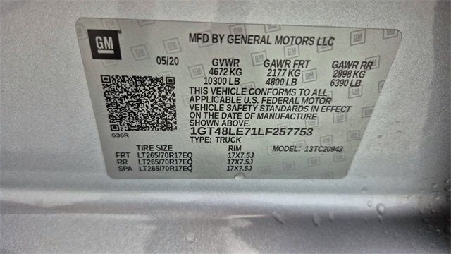 ** Adaptive Cruise Control, ** Alloy Wheels / Premium Wheels, ** Apple CarPlay / Android Auto, ** Automatic Emergency Braking, ** Backup Camera / Parking Sensors, ** Bluetooth, Hands-Free, ** Brake Assist, ** Cruise Control, ** Keyless Entry, ** Lane Departure Warning, ** Leather Seats, ** Multi Zone Climate Control, ** Navigation System, ** Premium Sound System / Premium Audio, ** Satellite Radio Capable, ** Security System, ** Stability Control, ** Steering Wheel Controls, ** Trailer Hitch / Tow Hitch, ** USB Port, 6-Speed Automatic, Jet Black Vinyl, 120-Volt Bed Mounted Power Outlet, 120-Volt Instrument Panel Power Outlet, 17" Steel Wheels, 3.73 Rear Axle Ratio, 4-Way Manual Driver Seat Adjuster, 4-Way Manual Passenger Seat Adjuster, 4-Wheel Disc Brakes, 4" Round Chromed Tubular Assist Steps (LPO), 6 Speakers, 6-Speaker Audio System Feature, ABS brakes, Air Conditioning, AM/FM radio, Apple CarPlay/Android Auto, Auto-Dimming Inside Rear-View Mirror, Brake assist, Bumpers: chrome, Chrome Surround Grille w/Black Mesh, Color-Keyed Carpeting Floor Covering, Deep-Tinted Glass, Delay-off headlights, Driver door bin, Dual front impact airbags, Dual front side impact airbags, Electric Rear-Window Defogger, Electronic Stability Control, Exterior Parking Camera Rear, EZ Lift Power Lock & Release Tailgate, Front 40/20/40 Split-Bench Seats w/No Storage, Front anti-roll bar, Front Center Armrest, Front License Plate Kit, Front reading lights, Front Rubberized-Vinyl Floor Mats, Front wheel independent suspension, Fully automatic headlights, Heavy-Duty 80 Amp Battery, Integrated Trailer Brake Controller, Low tire pressure warning, Occupant sensing airbag, Outside temperature display, Overhead airbag, Overhead console, Passenger door bin, Passenger vanity mirror, Perimeter Lighting, Pickup Box, Power Rear Windows w/Express Down, Power steering, Power windows, Power-Adjustable Black Outside Mirrors, Preferred Equipment Group 1SA, Premium audio system: GMC Infotainment System, Radio: AM/FM w/GMC Infotainment System, Rear reading lights, Rear Rubberized-Vinyl Floor Mats, Rear step bumper, Remote Keyless Entry, Solar Absorbing Glass, Split folding rear seat, Spray-On Pickup Box Bed Liner w/GMC Logo, Steering Wheel-Mounted Cruise Control, Suspension Package, Tachometer, Tilt steering wheel, Traction control, Trip computer, Variably intermittent wipers, Vinyl Seat Trim, Voltmeter, CLEAN CARFAX, FRESH TRADE IN, 2500 BASE TRIM LEVEL, 6-Speed Automatic, Jet Black Vinyl.Recent Arrival! Clean CARFAX.2020 GMC Sierra 2500HD Quicksilver Metallic 4D Crew Cab 6.6L V8 RWD 6-Speed AutomaticClay Cooley Auto Group proudly serves pre-owned car and truck buyers from Dallas, Fort Worth, Arlington, Richardson, Mesquite, Lewisville, Plano, Irving, Park Cities, Rockwall, and all surrounding areas throughout the Metroplex! . Clay Cooley Auto Group is the home of the "Clay Cooley Family Guarantee" and offers a 3-DAY MONEY BACK GUARANTEE which means you can return the brand new vehicle to us within 3-DAYS or up to 150 miles and Clay Cooley gives you all your money back, guaranteed. "Clay Cooley Family Guarantee Program" also offers a 7-DAY VEHICLE EXCHANGE, where you can exchange the vehicle for up to 7-DAYS or up to 250 miles.