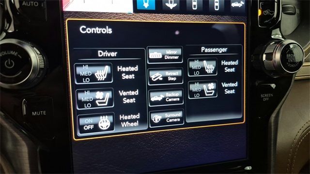 ** Adaptive Cruise Control, ** Alloy Wheels / Premium Wheels, ** Apple CarPlay / Android Auto, ** Automatic Emergency Braking, ** Backup Camera / Parking Sensors, ** Bluetooth, Hands-Free, ** Brake Assist, ** Cruise Control, ** Keyless Entry, ** Lane Departure Warning, ** Multi Zone Climate Control, ** Navigation System, ** Premium Sound System / Premium Audio, ** Rear Cross Traffic Alert, ** Satellite Radio Capable, ** Security System, ** Stability Control, ** Steering Wheel Controls, ** Trailer Hitch / Tow Hitch, ** USB Port, #1 Seat Foam Cushion, 1-Yr SiriusXM Guardian Trial, 10 Speakers, 12" Touchscreen Display, 3 Rear Seat Head Restraints, 3.21 Rear Axle Ratio, 33 Gallon Fuel Tank, 4 Way Front Headrests, 4-Wheel Disc Brakes, 48V Belt Starter Generator, 4G LTE Wi-Fi Hot Spot, 5-Year SiriusXM Travel Link Service, ABS brakes, Adaptive Cruise Control w/Stop & Go, Adjustable pedals, Advanced Safety Group, Air Conditioning, Alloy wheels, AM/FM radio: SiriusXM, Anti-Spin Differential Rear Axle, Apple CarPlay, Apple CarPlay/Android Auto, Audio memory, Auto High-beam Headlights, Auto-dimming door mirrors, Auto-dimming Rear-View mirror, Automatic temperature control, Bed Utility Group, Blind Spot & Cross Path Detection, Body Color Bumper Group, Body Color Front Bumper, Body Color Rear Bumper w/Step Pads, Brake assist, Bucket Seats, Bumpers: chrome, Compass, Delay-off headlights, Disassociated Touchscreen Display, Dome Dual LED Reading Lamp, Driver door bin, Driver Seat Memory, Driver vanity mirror, Dual front impact airbags, Dual front side impact airbags, Dual-Pane Panoramic Sunroof, Electronic Stability Control, Emergency communication system: SiriusXM Guardian, Foam Bottle Insert (Door Trim Panel), For Details, Visit DriveUconnect.com, Front anti-roll bar, Front Bucket Seats, Front Center Armrest w/Storage, Front dual zone A/C, Front fog lights, Front reading lights, Front Seat Back Map Pockets, Front wheel independent suspension, Full Speed Forward Collision Warning Plus, Fully automatic headlights, Garage door transmitter, Genuine wood console insert, Genuine wood dashboard insert, Genuine wood door panel insert, Google Android Auto, GPS Antenna Input, GPS Navigation, harman/kardon 19 Speaker Premium Sound, HD Radio, Heated door mirrors, Heated Front Seats, Heated front seats, Heated rear seats, Heated Second Row Seats, Heated Steering Wheel, Heated steering wheel, Illuminated entry, Integrated Center Stack Radio, Lane Keep Assist, Leather steering wheel, LED Dome/Reading Lamp, Longhorn Level 1 Equipment Group, Low tire pressure warning, Manufacturer's Statement of Origin, Memory seat, Multi-Function Tailgate, Navigation System, No Satellite Coverage w/HI/AK/PR/VI/GU, Occupant sensing airbag, Outside temperature display, Overhead airbag, Overhead console, Panic alarm, Parallel & Perp Park Assist w/Stop, ParkView Rear Back-Up Camera, Passenger door bin, Passenger vanity mirror, Pedal memory, Power 4-Way Driver Lumbar Adjust, Power 4-Way Passenger Lumbar Adjust, Power 8-Way Driver & Passenger Seats, Power door mirrors, Power driver seat, Power passenger seat, Power Running Boards, Power steering, Power windows, Premium Leather Seats w/Filigree, Protection Group, Quick Order Package 27K Longhorn, Radio data system, Radio: Uconnect 12 w/Navigation, Radio: Uconnect 4C Nav w/8.4" Display, Rain sensing wipers, Rear 60/40 Folding Split Recline Seat, Rear anti-roll bar, Rear seat center armrest, Rear step bumper, Rear window defroster, Remote keyless entry, Security system, SiriusXM Satellite Radio, SiriusXM Traffic Plus, SiriusXM Travel Link, SiriusXM w/360L, Speed control, Split folding rear seat, Steering wheel mounted audio controls, Tachometer, Telescoping steering wheel, Tilt steering wheel, Traction control, Trailer Brake Control, Trip computer, Turn signal indicator mirrors, USB Host Flip, Variably intermittent wipers, Ventilated Front Seats, Ventilated front seats, Ventilated Rear Seats, Voltmeter, Wheels: 20" x 9" Aluminum Pa