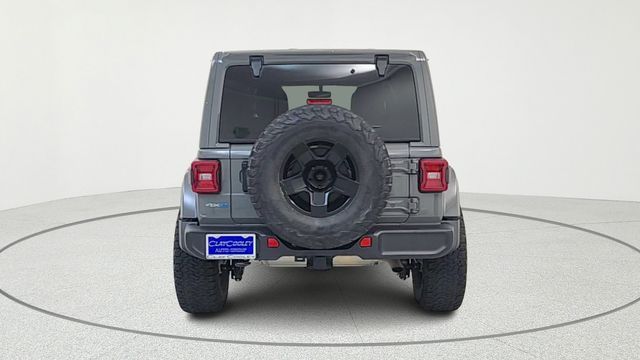 2021 Jeep Wrangler Unlimited Sahara High Altitude 4xe Sting-Gray Clearcoat 4WD 2.0L I4 DOHCRecent Arrival! CARFAX One Owner.• Cold Weather Group: heated front seats, heated steering wheel, remote engine start, smart device integration • Premium sound system • Navigation system • Convertible hardtop with rear defrost and targa roof • Running boards • Quick Order Package: Sting-Gray Clearcoat paint, power mirrors, automatic headlights, premium exterior accents • Locking/limited slip differential • Keyless entry and push-button start • Back-up camera • Bluetooth, Apple CarPlay, and Android Auto compatible • Multi-zone automatic climate control • Leather-wrapped steering wheel and adjustable steering • Rear pass-through seat and rear bench seat • Aluminum wheels, performance tires • Power windows and power door locks • 8-speed automatic transmission, 2.0L I4 plug-in hybrid • Part and full-time 4WD system • Trailer tow hooks • Front, side, and rear air bags • Blind spot monitoring (not explicitly shown in sticker; omitted) • WiFi hotspot • Sport suspension • Privacy glass and fog lamps