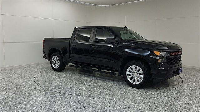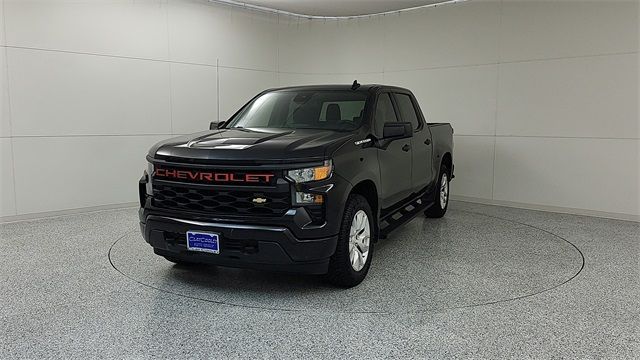 ** Adaptive Cruise Control, ** Alloy Wheels / Premium Wheels, ** Apple CarPlay / Android Auto, ** Automatic Emergency Braking, ** Backup Camera / Parking Sensors, ** Bluetooth, Hands-Free, ** Brake Assist, ** Cruise Control, ** Keyless Entry, ** Lane Departure Warning, ** Memory Seat, ** Multi Zone Climate Control, ** Navigation System, ** Premium Sound System / Premium Audio, ** Satellite Radio Capable, ** Security System, ** Stability Control, ** Steering Wheel Controls, ** Trailer Hitch / Tow Hitch, ** USB Port, 8-Speed Automatic, Black Cloth, 10-Way Power Driver Seat w/Lumbar, 120-Volt Bed Mounted Power Outlet, 120-Volt Instrument Panel Power Outlet, 3.42 Rear Axle Ratio, 3.5" Monochromatic Display Driver Info Center, 4-Wheel Disc Brakes, 40/20/40 Front Split-Bench Seat, 6 Speakers, 6-Speaker Audio System, ABS brakes, Air Conditioning, Alloy wheels, AM/FM radio: SiriusXM, Apple CarPlay/Android Auto, Auto High-beam Headlights, Automatic Emergency Braking, Bluetooth® For Phone, Brake assist, Bumpers: body-color, Chevrolet Connected Access Capable, Cloth Seat Trim, Color-Keyed Carpeting Floor Covering, Compass, Custom Convenience Package, Custom Value Package, Deep-Tinted Glass, Delay-off headlights, Driver door bin, Driver vanity mirror, Dual front impact airbags, Dual front side impact airbags, Dual Rear USB Ports (Charge Only), Electric Rear-Window Defogger, Electrical Steering Column Lock, Electronic Cruise Control, Electronic Stability Control, EZ Lift Power Lock & Release Tailgate, Following Distance Indicator, Forward Collision Alert, Front anti-roll bar, Front Center Armrest w/Storage, Front Frame-Mounted Black Recovery Hooks, Front License Plate Kit, Front Pedestrian Braking, Front reading lights, Front Rubberized Vinyl Floor Mats, Front wheel independent suspension, Fully automatic headlights, HD Rear Vision Camera, Heated door mirrors, High Capacity Suspension Package, Hitch Guidance, Illuminated entry, IntelliBeam Automatic High Beam On/Off, Lane Keep Assist w/Lane Departure Warning, LED Cargo Area Lighting, Low tire pressure warning, Manual Tilt Wheel Steering Column, Not Equipped w/Functional Cab & Bed Power Outlets, Not Equipped w/Rear USB Ports, Not Equipped w/Steering Column Lock, Occupant sensing airbag, OnStar & Chevrolet Connected Services Capable, Outside temperature display, Overhead airbag, Overhead console, Panic alarm, Passenger door bin, Passenger vanity mirror, Power door mirrors, Power driver seat, Power Front Windows w/Driver Express Up/Down, Power Front Windows w/Passenger Express Down, Power Rear Windows w/Express Down, Power steering, Power windows, Preferred Equipment Group 1CX, Premium audio system: Chevrolet Infotainment 3, Radio data system, Radio: Chevrolet Infotainment 3 System, Rear 60/40 Folding Bench Seat (Folds Up), Rear reading lights, Rear Rubberized-Vinyl Floor Mats, Rear step bumper, Rear window defroster, Remote Keyless Entry, Remote keyless entry, Remote Vehicle Starter System, Security system, SiriusXM Radio, Speed control, Speed-sensing steering, Split folding rear seat, Standard Tailgate, Tachometer, Theft Deterrent System (Unauthorized Entry), Tilt steering wheel, Traction control, Trailering Package, Trip computer, Variably intermittent wipers, Voltmeter, Wheels: 20" x 9" Bright Silver Painted Aluminum, Wi-Fi Hot Spot Capable, Wireless Phone Projection, ONE OWNER VEHICLE, CLEAN CARFAX, CUSTOM TRIM LEVEL, FRESH TRADE IN, 8-Speed Automatic, Black Cloth.CARFAX One-Owner. Clean CARFAX.2023 Chevrolet Silverado 1500 Custom Black 4D Crew Cab 2.7L Turbo RWD 8-Speed AutomaticClay Cooley Auto Group proudly serves pre-owned car and truck buyers from Dallas, Fort Worth, Arlington, Richardson, Mesquite, Lewisville, Plano, Irving, Park Cities, Rockwall, and all surrounding areas throughout the Metroplex! . Clay Cooley Auto Group is the home of the "Clay Cooley Family Guarantee" and offers a 3-DAY MONEY BACK GUARANTEE which means you can return the brand new vehicle to us within 3