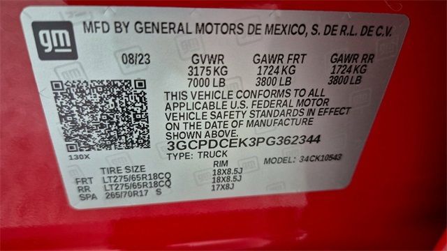 ** Adaptive Cruise Control, ** Alloy Wheels / Premium Wheels, ** Apple CarPlay / Android Auto, ** Automatic Emergency Braking, ** Backup Camera / Parking Sensors, ** Bluetooth, Hands-Free, ** Brake Assist, ** Cruise Control, ** HomeLink, ** Keyless Entry, ** Memory Seat, ** Multi Zone Climate Control, ** Navigation System, ** Premium Sound System / Premium Audio, ** Satellite Radio Capable, ** Security System, ** Stability Control, ** Steering Wheel Controls, ** Trailer Hitch / Tow Hitch, ** USB Port, 8-Speed Automatic, 4WD, Black Cloth, 10-Way Power Driver Seat w/Lumbar, 120-Volt Bed Mounted Power Outlet, 120-Volt Instrument Panel Power Outlet, 220 Amp Alternator, 3.42 Rear Axle Ratio, 3.5" Monochromatic Display Driver Info Center, 4-Wheel Disc Brakes, 40/20/40 Front Split-Bench Seat, 6 Speakers, 6-Speaker Audio System, ABS brakes, Air Conditioning, Alloy wheels, AM/FM radio: SiriusXM, Apple CarPlay/Android Auto, Auto High-beam Headlights, Auto-Locking Rear Differential, Automatic Emergency Braking, Bluetooth® For Phone, Brake assist, Chevrolet Connected Access Capable, Cloth Seat Trim, Color-Keyed Carpeting Floor Covering, Compass, Custom Convenience Package, Deep-Tinted Glass, Delay-off headlights, Driver door bin, Driver vanity mirror, Dual front impact airbags, Dual front side impact airbags, Dual Rear USB Ports (Charge Only), Electric Rear-Window Defogger, Electrical Steering Column Lock, Electronic Cruise Control, Electronic Stability Control, EZ Lift Power Lock & Release Tailgate, Following Distance Indicator, Forward Collision Alert, Front anti-roll bar, Front Center Armrest w/Storage, Front Pedestrian Braking, Front reading lights, Front Rubberized Vinyl Floor Mats, Front wheel independent suspension, Fully automatic headlights, HD Rear Vision Camera, Heated door mirrors, Heavy-Duty Air Filter, Hill Descent Control, Hitch Guidance, Illuminated entry, IntelliBeam Automatic High Beam On/Off, Lane Keep Assist w/Lane Departure Warning, LED Cargo Area Lighting, Low tire pressure warning, Manual Tilt Wheel Steering Column, Not Equipped w/Rear USB Ports, Not Equipped w/Steering Column Lock, Occupant sensing airbag, OnStar & Chevrolet Connected Services Capable, Outside temperature display, Overhead airbag, Overhead console, Panic alarm, Passenger door bin, Passenger vanity mirror, Performance Red Recovery Hooks, Power door mirrors, Power driver seat, Power Front Windows w/Driver Express Up/Down, Power Front Windows w/Passenger Express Down, Power Rear Windows w/Express Down, Power steering, Power windows, Preferred Equipment Group 2CX, Premium audio system: Chevrolet Infotainment 3, Radio data system, Radio: Chevrolet Infotainment 3 System, Rear 60/40 Folding Bench Seat (Folds Up), Rear reading lights, Rear Rubberized-Vinyl Floor Mats, Rear step bumper, Rear window defroster, Remote Keyless Entry, Remote keyless entry, Remote Vehicle Starter System, Security system, SiriusXM Radio, Speed control, Speed-sensing steering, Split folding rear seat, Standard Tailgate, Suspension Package, Tachometer, Theft Deterrent System (Unauthorized Entry), Tilt steering wheel, Traction control, Trailering Package, Trip computer, Variably intermittent wipers, Voltmeter, Wheels: 18" x 8.5" Black Painted Aluminum, Wi-Fi Hot Spot Capable, Wireless Phone Projection, CLEAN CARFAX, ONE OWNER VEHICLE, SUPER LOW MILES, CUSTOM TRAIL BOSS TRIM LEVEL, 8-Speed Automatic, 4WD, Black Cloth.Recent Arrival! CARFAX One-Owner. Clean CARFAX.2023 Chevrolet Silverado 1500 Custom Trail Boss Red Hot 4D Crew Cab 2.7L Turbo 4WD 8-Speed AutomaticClay Cooley Auto Group proudly serves pre-owned car and truck buyers from Dallas, Fort Worth, Arlington, Richardson, Mesquite, Lewisville, Plano, Irving, Park Cities, Rockwall, and all surrounding areas throughout the Metroplex! . Clay Cooley Auto Group is the home of the "Clay Cooley Family Guarantee" and offers a 3-DAY MONEY BACK GUARANTEE which means you can return the brand new vehicle to us within 3-DAYS or up to
