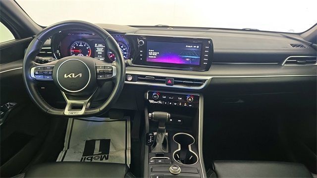 ** Adaptive Cruise Control, ** Alloy Wheels / Premium Wheels, ** Apple CarPlay / Android Auto, ** Automatic Emergency Braking, ** Backup Camera / Parking Sensors, ** Bluetooth, Hands-Free, ** Brake Assist, ** Cruise Control, ** Keyless Entry, ** Lane Departure Warning, ** Leather Seats, ** Memory Seat, ** Multi Zone Climate Control, ** Navigation System, ** Premium Sound System / Premium Audio, ** Satellite Radio Capable, ** Security System, ** Stability Control, ** Steering Wheel Controls, ** USB Port, 4-Wheel Disc Brakes, 6 Speakers, ABS brakes, Air Conditioning, Alloy wheels, AM/FM radio: SiriusXM, Apple CarPlay & Android Auto, Auto High-beam Headlights, Automatic temperature control, Brake assist, Bumpers: body-color, Carpeted Floor Mats, Cloth/SynTex Seat Trim, Delay-off headlights, Driver door bin, Driver vanity mirror, Dual front impact airbags, Dual front side impact airbags, Electronic Stability Control, Four wheel independent suspension, Front anti-roll bar, Front Bucket Seats, Front Center Armrest, Front dual zone A/C, Front fog lights, Front reading lights, Fully automatic headlights, Heated door mirrors, Illuminated entry, Knee airbag, Low tire pressure warning, Navigation System, Occupant sensing airbag, Outside temperature display, Overhead airbag, Overhead console, Panic alarm, Passenger door bin, Passenger vanity mirror, Power door mirrors, Power driver seat, Power steering, Power windows, Radio data system, Radio: AM/FM/MP3 Audio System, Rear anti-roll bar, Rear seat center armrest, Rear side impact airbag, Rear window defroster, Remote keyless entry, Security system, Speed control, Speed-sensing steering, Split folding rear seat, Spoiler, Sport steering wheel, Steering wheel mounted audio controls, Tachometer, Telescoping steering wheel, Tilt steering wheel, Traction control, Trip computer, Turn signal indicator mirrors, Variably intermittent wipers, Wheels: 18" Gloss Black Machined Finish Alloy, GT-LINE TRIM LEVEL, CLEAN CARFAX, FRESH TRADE IN.CARFAX One-Owner.2023 Kia K5 GT-Line Wolf Gray 4D Sedan 1.6L I4 DGI Turbocharged DOHC 16V LEV3-ULEV70 180hp FWD 8-Speed AutomaticClay Cooley Auto Group proudly serves pre-owned car and truck buyers from Dallas, Fort Worth, Arlington, Richardson, Mesquite, Lewisville, Plano, Irving, Park Cities, Rockwall, and all surrounding areas throughout the Metroplex! . Clay Cooley Auto Group is the home of the "Clay Cooley Family Guarantee" and offers a 3-DAY MONEY BACK GUARANTEE which means you can return the brand new vehicle to us within 3-DAYS or up to 150 miles and Clay Cooley gives you all your money back, guaranteed. "Clay Cooley Family Guarantee Program" also offers a 7-DAY VEHICLE EXCHANGE, where you can exchange the vehicle for up to 7-DAYS or up to 250 miles.
