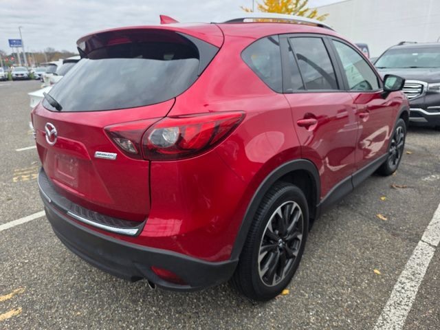 Stock Number: L896347, VIN Number: JM3KE4DY7G0896347, Style Name: AWD Grand Touring 4Dr SUV (Midyear Release), Make: Mazda, Model: CX-5, Model Year: 2016, Type: SUV, Vehicle Trim: Grand Touring, Interior Color: Black, Exterior Color: Soul Red Metallic, Body Type: SUV, MPG Automatic City: 24, MPG Automatic Highway: 30, Engine Description: SKYACTIV? 2.5L 4-Cylinder DOHC 16V, Fuel Type: Gasoline, Fuel Induction: DI, Valves Per Cylinder: 4, Aspiration: Naturally Aspirated, 4WD Type: On Demand, Transmission: 6-Speed Automatic, Wheels Rims: Aluminum Alloy, Wheels Spare Rim Type: Steel, Drive Train Type: AWD, Independent Suspension: Four-Wheel, Stabilizer Bar: Front And Rear, Clock, External Temp, Low Fuel Level, Tachometer, Front Wipers: Variable Intermittent, Rain Sensing, Privacy Glass, Rear Defogger, Rear Wiper: Intermittent, Sunroof: One-Touch Open/Close, Sliding Sunshade, Power Glass, Antenna Type: Diversity, Mast, Audio System: AM/FM, HD Radio, Voice Operated, Touch Screen Display, Premium Brand: Bose, Speakers: 9, Drivers: Heated, Drivers Height: Power, Drivers Lumbar: Power, Drivers Power: 8, Passenger: Heated, Passenger Height: Manual, Seating Capacity: 5, Front Seat Type: Bucket, Upholstery: Leather, Center Armrest, Folding: Split, One-Touch Fold Flat, Center Console: Front Console With Armrest And Storage, Cruise Control, Cupholders: Front, Rear, Overhead Console: Front, Power Outlets: Front, Cargo Area, Seatback Storage, Steering Adjustment: Tilt And Telescopic, Steering Power: Variable/Speed-Proportional, Steering Wheel Control: Audio, Cruise Control, Phone, Power Mirrors, Power Door Locks: Anti-Lockout, Auto-Locking, Windows: Power Windows, Navigation System, Air Conditioning: Automatic Climate Control, Sun Sensor Climate Control, Air Filtration, Trunk Lights, Door Trim: Leatherette, Mats: Rear, Front, Reading Lights: Front, Rear, Shift Knob: Leather, Steering Wheel Trim: Leather, Vanity Mirrors: Dual Illuminating, Bumpers: Body-Color, NHTSA Passenger Grade: Average, NHTSA Driver Grade: Excellent, NHTSA Side Impact Front Grade: Excellent, NHTSA Side Impact Back Grade: Excellent, NHTSA Roll Over Resistance Rating: Good, ABS: 4-Wheel, Anti Theft System: Alarm, Vehicle Immobilizer, Brake Assist, Safety Locks, Daytime Running Light, Fog Lights, Front Headrests: 2, Adjustable, Rear Headrests: 3, Adjustable, Safety Signal Mirrors, Safety Stability Control, Driver and Passenger Airbag, Side Airbag, Stability Control, Front Head Room: 39.0 Inches, Front Hip Room: 55.2 Inches, Front Shoulder Room: 57.5 Inches, Front Leg Room: 41.0 Inches, Rear Head Room: 39.0 Inches, Rear Hip Room: 53.7 Inches, Rear Leg Room: 39.3 Inches, Rear Shoulder Room: 55.5 Inches, Luggage Capacity: 34.1 Cu.Ft., Maximum Seating: 5, Length: 179.3 Inches, Width: 72.4 Inches, Height: 67.3 Inches, Wheelbase: 106.3 Inches, Ground Clearance: 8.5 Inches, Max Gross Vehicle Weight: 4566 Lbs., Curb Weight: 3589 Lbs.