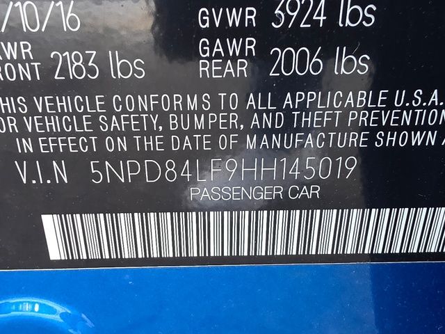 Stock Number: L145019, VIN Number: 5NPD84LF9HH145019, Style Name: SE 4Dr Sedan (US Midyear Release), Make: Hyundai, Model: ELANTRA, Model Year: 2017, Type: Sedan, Vehicle Trim: SE, Interior Color: Gray, Exterior Color: Electric Blue, Body Type: Sedan, MPG Automatic City: 28, MPG Automatic Highway: 37, Engine Description: 2.0L 4-Cylinder DOHC 16V, Fuel Type: Gasoline, Fuel Induction: SMPI, Valves Per Cylinder: 4, Aspiration: Naturally Aspirated, Transmission: 6-Speed Automatic, Wheels Rims: Steel, Wheels Spare Rim Type: Steel, Drive Train Type: FWD, Independent Suspension: Four-Wheel, Stabilizer Bar: Front, Clock, External Temp, Low Fuel Level, Tachometer, Front Wipers: Variable Intermittent, Rear Defogger, Antenna Type: Diversity, Element, Audio System: AM/FM, Speakers: 6, Drivers Height: Manual, Passenger Height: Manual, Seating Capacity: 5, Front Seat Type: Bucket, Upholstery: Premium Cloth, Folding: Split, Center Console: Front Console With Armrest And Storage, Cruise Control, Cupholders: Front, Rear, Overhead Console: Front, Power Outlets: Two 12V Front, Steering Adjustment: Tilt And Telescopic, Steering Power, Steering Wheel Control: Audio, Cruise Control, Phone, Power Mirrors, Power Door Locks: Auto-Locking, Windows: Power Windows, Air Conditioning, Air Filtration, Trunk Lights, Reading Lights: Front, Shift Knob: Urethane, Steering Wheel Trim: Urethane, Vanity Mirrors: Dual, Bumpers: Body-Color, NHTSA Passenger Grade: Good, NHTSA Driver Grade: Good, NHTSA Side Impact Front Grade: Excellent, NHTSA Side Impact Back Grade: Good, NHTSA Roll Over Resistance Rating: Good, ABS: 4-Wheel, Anti Theft System: Alarm, Brake Assist, Safety Locks, Daytime Running Light, Front Headrests: 2, Adjustable, Rear Headrests: 3, Fixed, Safety Stability Control, Trunk Release, Driver and Passenger Airbag, Side Airbag, Stability Control, Front Head Room: 38.8 Inches, Front Hip Room: 53.4 Inches, Front Shoulder Room: 56.2 Inches, Front Leg Room: 42.2 Inches, Rear Head Room: 37.3 Inches, Rear Hip Room: 51.9 Inches, Rear Leg Room: 35.7 Inches, Rear Shoulder Room: 55.3 Inches, Luggage Capacity: 14.4 Cu.Ft., Maximum Seating: 5, Length: 179.9 Inches, Width: 70.9 Inches, Height: 56.5 Inches, Wheelbase: 106.3 Inches, Ground Clearance: 5.3 Inches, Max Gross Vehicle Weight: 3924 Lbs., Curb Weight: 2811 Lbs.